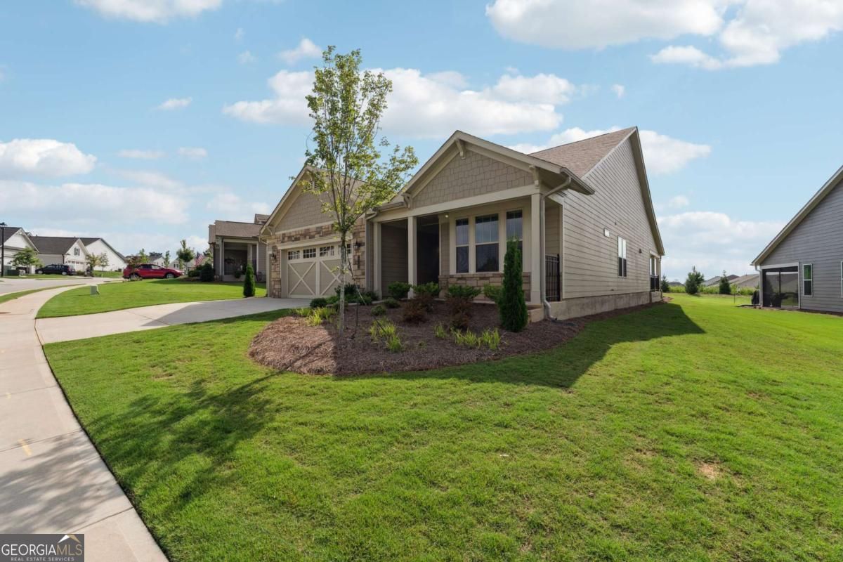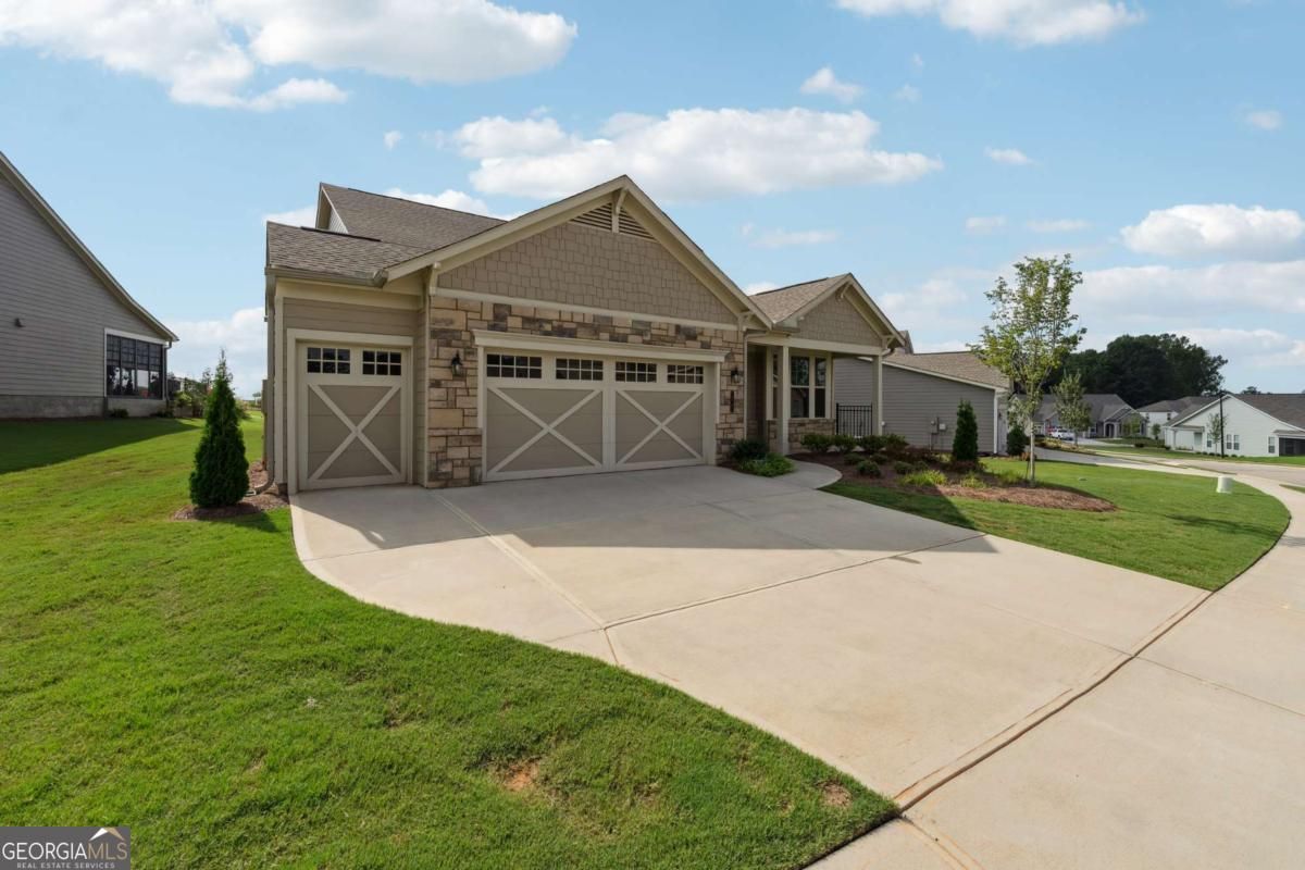 Discover luxury living in one of Georgia's top 55+ active adult communities, just minutes from downtown Hoschton and Buford and only 8 minutes from Chateau Elan. This stunning 2023 ranch-style home blends elegance and comfort, showcasing a stone-accented exterior, master on main, and an airy floor plan with raised ceilings. Inside, enjoy new flooring, modern light fixtures, and a beautifully upgraded kitchen with fresh features throughout. Even the restrooms shine with new appliances and stylish finishes. Step outside your door to a vibrant lifestyle. This gated community offers it all - pickleball courts, two sparkling pools, a community garden, and endless social activities designed to keep you active and connected. With top-tier amenities, modern upgrades, and a prime location near everything you love, this move-in ready home is the perfect blend of comfort and convenience.