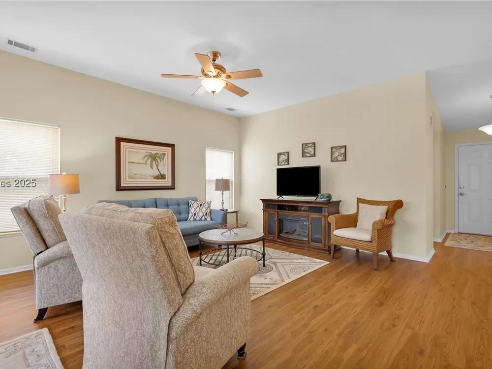 Discover effortless living in this charming Clayton model patio home, nestled in the desirable Live Oak Village of Sun City! This 2BD/2BA home offers a spacious layout with an inviting eat-in kitchen with 2yr old appliances, a versatile office space & convenient 2-car garage. Complete with new LP flooring. Enjoy peaceful lagoon views from your screened porch, perfect for outdoor relaxation. Designed for comfort & ease, this home provides the ideal blend of style & functionality. Sun City offers world-class amenities, including golf, pools, fitness centers, pickleball, & more. Don't miss this opportunity to enjoy the best of Lowcountry living!