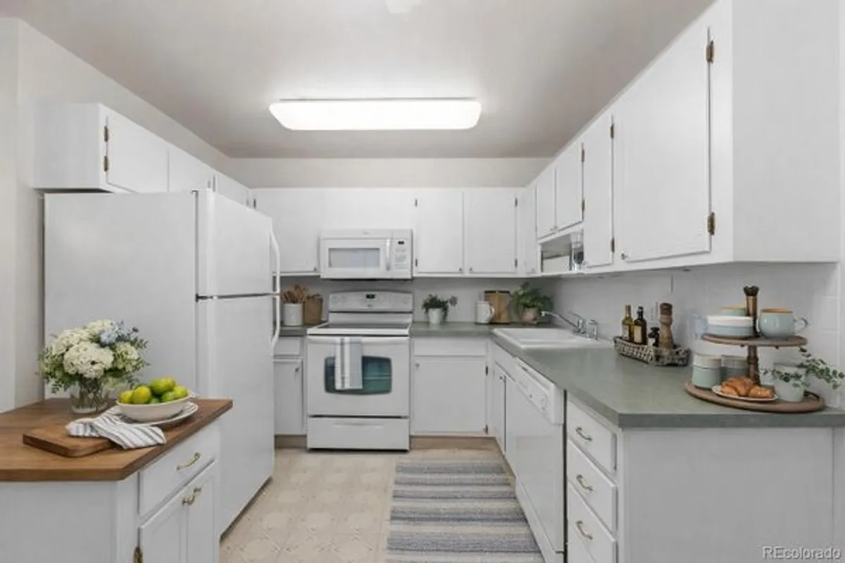 This 2-bedroom, 1-bath condo offers a rare combination of open space, storage, ADA accessibility, and convenience within the heart of Windsor Gardens. Unique to this home, the kitchen has been extended with additional cabinetry and countertop space, creating a more functional layout that truly supports everyday living. Brand-new carpet runs throughout the entire home, giving the unit a clean, refreshed feel. The bathroom has a walk-in shower, and ADA features to make it highly functional. A dedicated garage, #122, is a valuable and limited feature in the community; adding both security and practicality, making Colorado winters and daily errands a little easier. This home also offers the indoor storage until on the same floor, just a few doors down. Let's not forget that this building boasts one of the prettiest landscaped entrances, full of beautiful and bright flowers in the Spring and Summer. Windsor Gardens is known not only for its amenities, but for its lifestyle. Residents enjoy access to a golf course, clubhouse, fitness center, indoor and outdoor pools, walking paths, and a wide variety of clubs and activities, all set within beautifully maintained grounds. With close proximity to the Highline Canal, shopping, dining, medical services, and quick access to I-225, this location balances peaceful living with everyday convenience. Note- Some photos have been staged virtually.