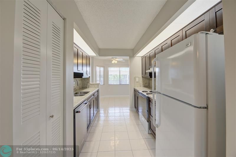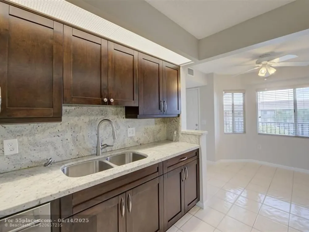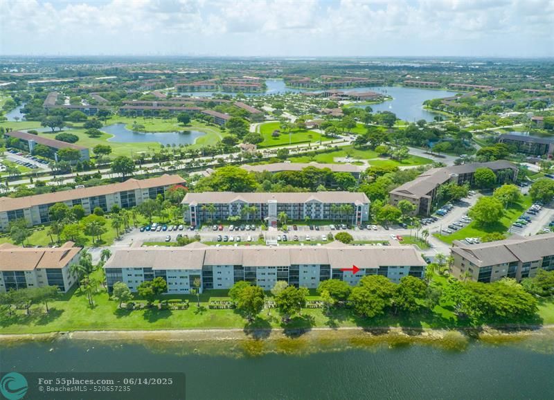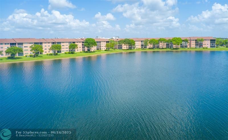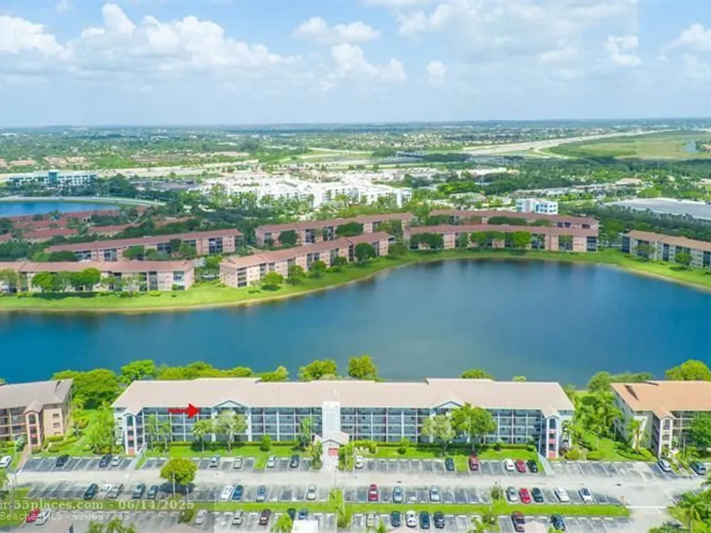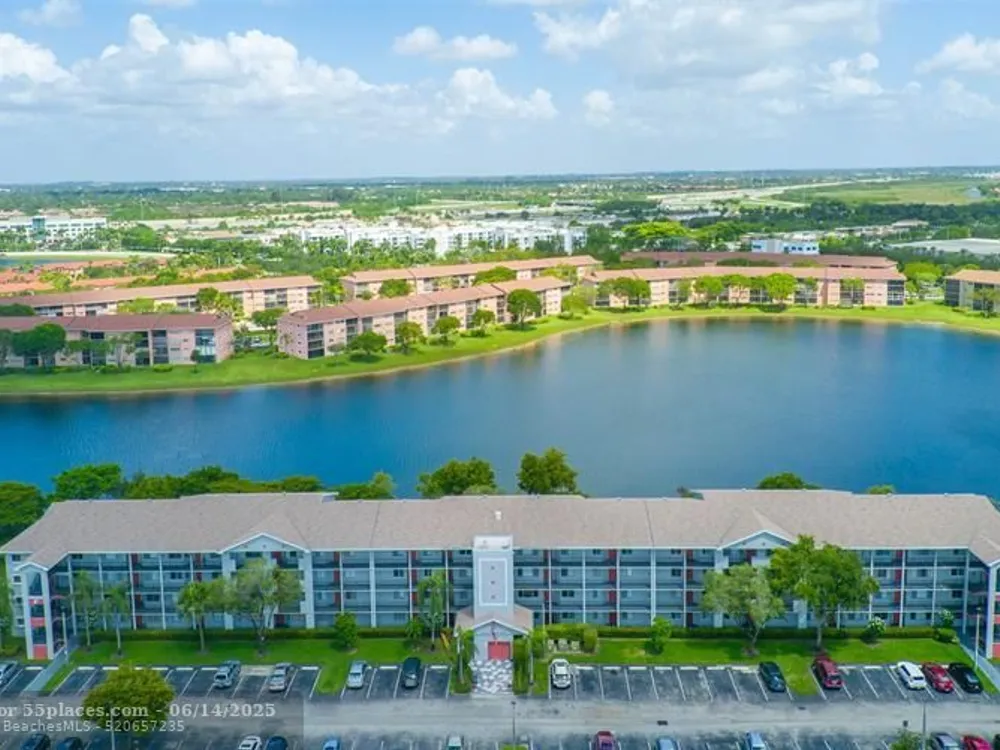 A beautiful lake view 2/2 unit on the top 4th floor located in the newest section of Century Village, a 55+ gated community with 24 hour security. The unit is spacious with ample sunlight, Upgraded kitchen with granite countertops, and the latest model dishwasher. Both room with big walk-in closet and an updated bath with granite countertop. A/C is two years old. New Fresh Paint Entire Unit. New cleaning carpet. Patio with all new hurricane impact window. New Elevator and Newer Roof. Century Village is a well-maintained community with a clubhouse, theater, tennis court, Golf, pharmacy, 8 swimming pool and indoor pool, and gym. Offers for social interaction and activities, shuttle bus service for your convenience. The community offers plenty of dining and shopping options. MUST SEE