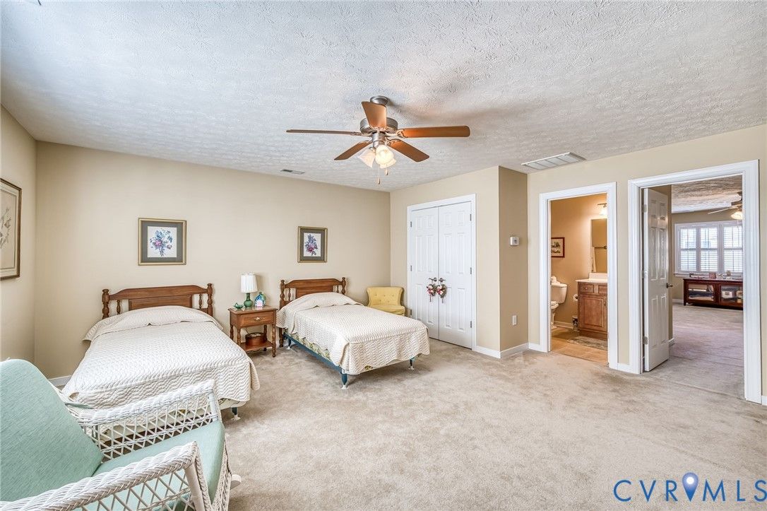 Welcome to 7500 Settlers Ridge Ct, a 2,570 SF 4BR/3BA Craftsman style home located in the sought after 55+ Settlers Ridge Community. You won't have to worry about downsizing or not having enough space for all of your cherished belongings and family/friends when they visit; there is plenty of room. This is a one owner custom built home, maintained in immaculate condition with heating & cooling serviced 2 X per year and has many luxurious upgrades, including plantation shutters, beautiful hardwood floors, a gourmet kitchen, a 2-sided gas fireplace, sun-room, large 2 car garage with workshop area, screened in porch, crown molding, trey ceilings, 2 primary bedrooms with En-Suite bathrooms and a 2nd floor flex room/4th bedroom large enough for your extended family visits. Settlers Ridge Community offers a maintenance free lifestyle allowing you to enjoy the amazing amenities, including the heated indoor pool, walking trails, a remodeled community center, exercise room, library, kitchen and a party room for the festive gatherings. Located in Varina, just minutes from downtown Richmond, the James River, Virginia Capital Trail, Rocketts Landing, Museums, Shopping, Publics, Kroger, Food Lion, Lowes & many Restaurant options; easy access to I-295 & I-64 & Williamsburg. Come see this wonderful home for yourself, you won't be disappointed!