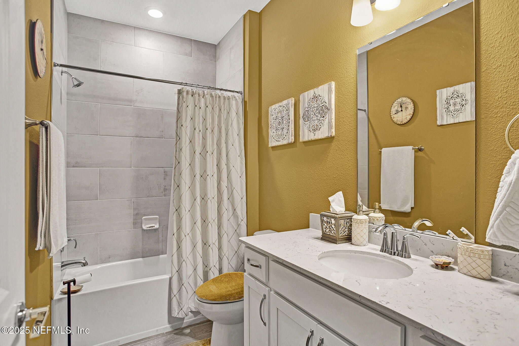 Welcome to this beautifully maintained 2023 Lennar home in the sought-after 55+ Tributary community in Yulee. This 4-bedroom, 3-bath home features 9-foot ceilings, ceramic tile flooring, and an open-concept layout ideal for comfortable living and entertaining. The upgraded island kitchen offers slide-out shelving, a gas cooktop, and double convection ovens, opening to the café dining area and living room with serene pond views. Enjoy the covered lanai, fenced backyard, and paver driveway. The owner's suite includes a walk-in closet, dual vanities, and a spacious shower with dual shower heads. Additional upgrades include a whole-house water filtration system, tankless on-demand water heater, and ceiling fans throughout. Tributary amenities include a heated pool, pickleball and tennis courts, fitness center, clubhouse, trails, dog park, and social activities, offering an active, low-maintenance lifestyle.