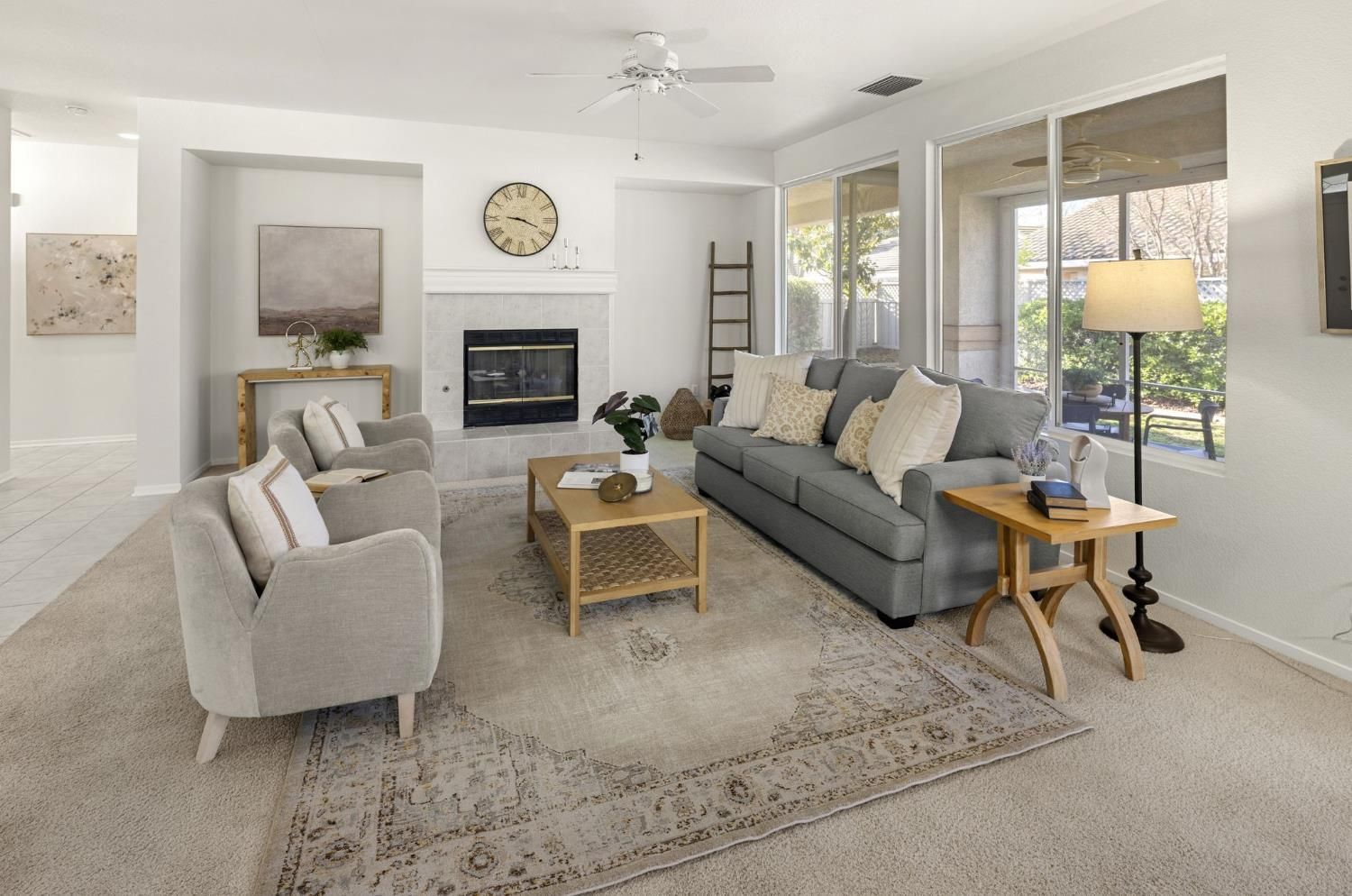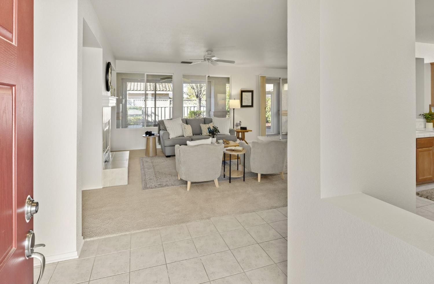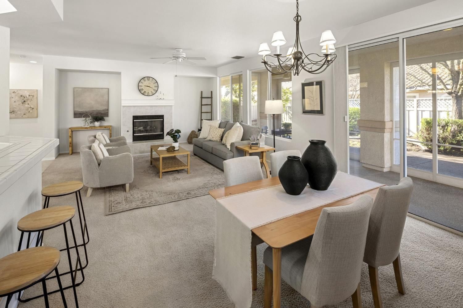 Rare Pinery model in Sun City Roseville 55+ active adult community! This two bedroom two bath open floor plan offers a large eat-in kitchen nook, cozy family room with fireplace, and formal dining room area. Stained glass and leaded glass windows add an elegant flair. The kitchen has a new oven, newer microwave, an island with cabinets for extra storage, and a walk in pantry in the adjoining laundry room. The large primary suite has a sitting area, a large walk in closet, and plantation shutters looking out to the private backyard. A large screened-in back porch with ceiling fan and light extends your indoor/outdoor area. HVAC was replaced in 2018 and a new thermostat just installed. The hot water heater is dated 2020 according to a plumber. The garage contains shelves and cabinets for lots of storage. This is a great location with a short walk to the Sierra Pines Golf Course and Clubhouse and close to the Timber Creek Golf Course and Lodge where you can enjoy the Timbers Restaurant, fitness center with pool, and the many activities and clubs that Sun City has to offer. No Mello Roos and City of Roseville utilities make it a don't miss!