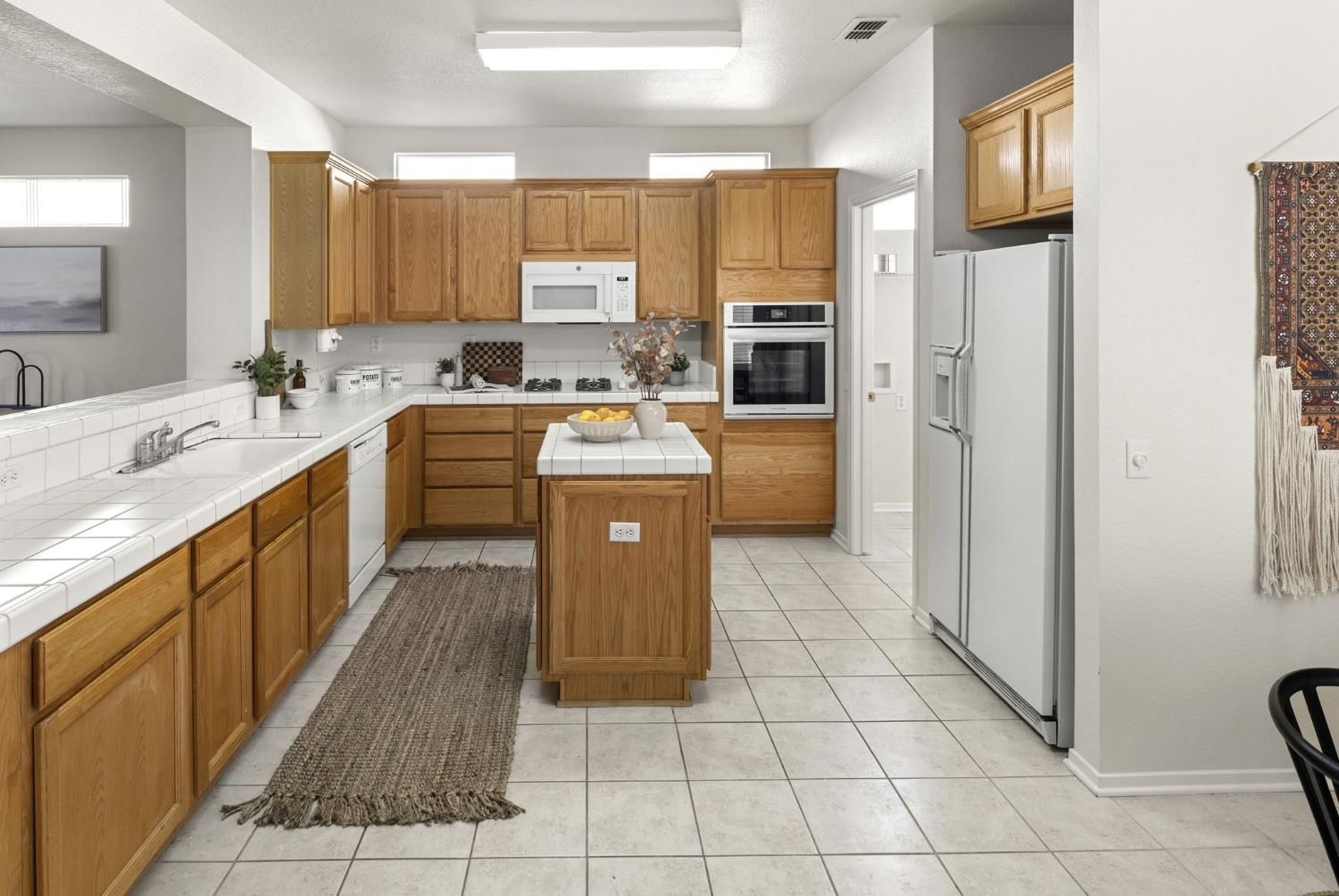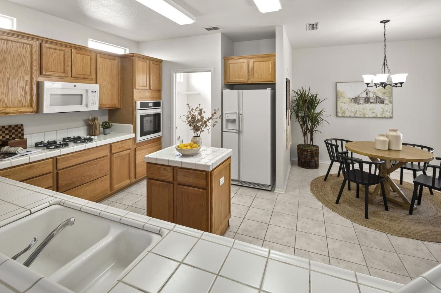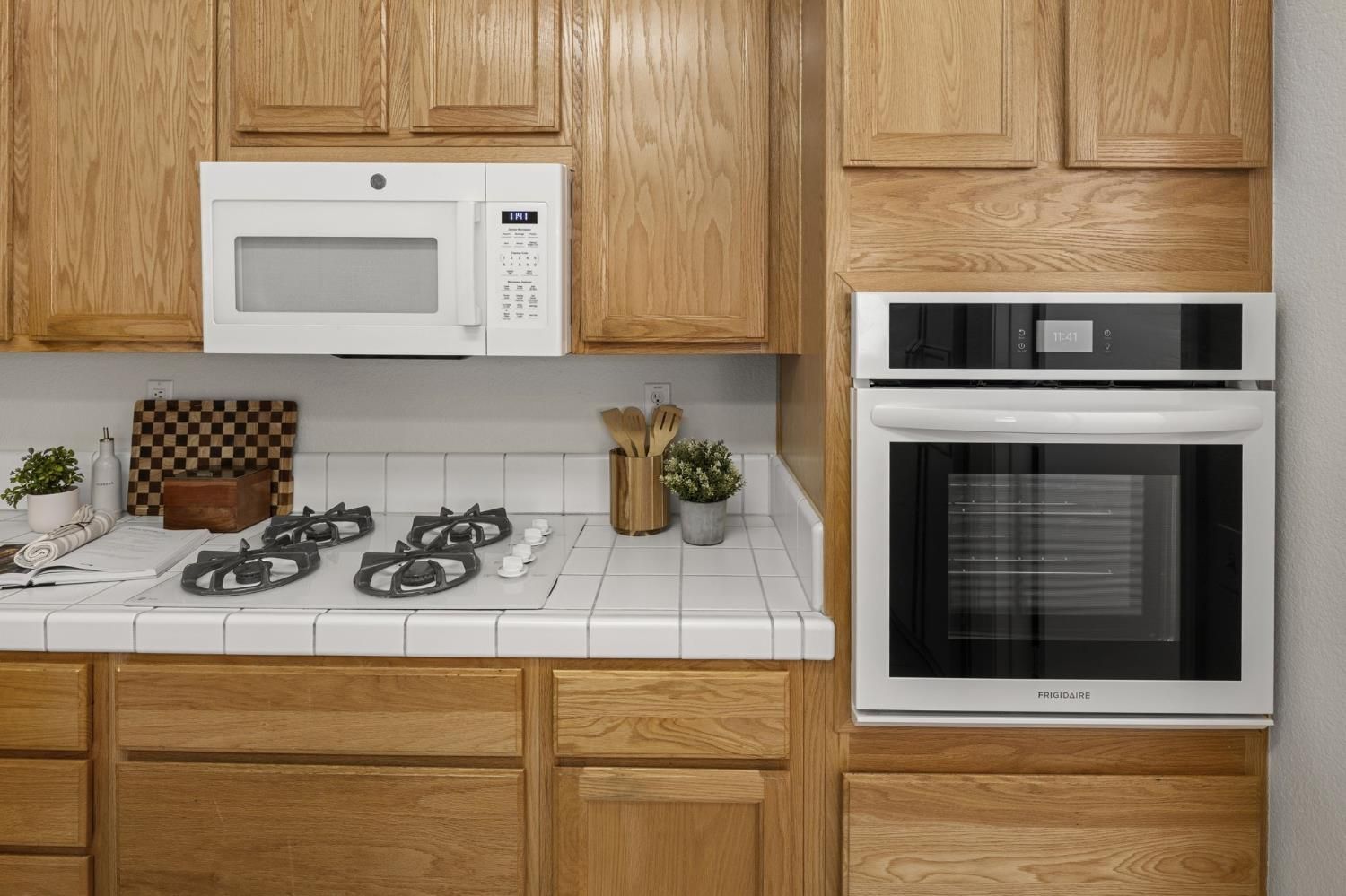 - Built-In Electric Oven, Free-Standing Refrigerator, Gas Cooktop, Gas Water Heater, Ice Maker, Dishwasher, Disposal, Microwave
