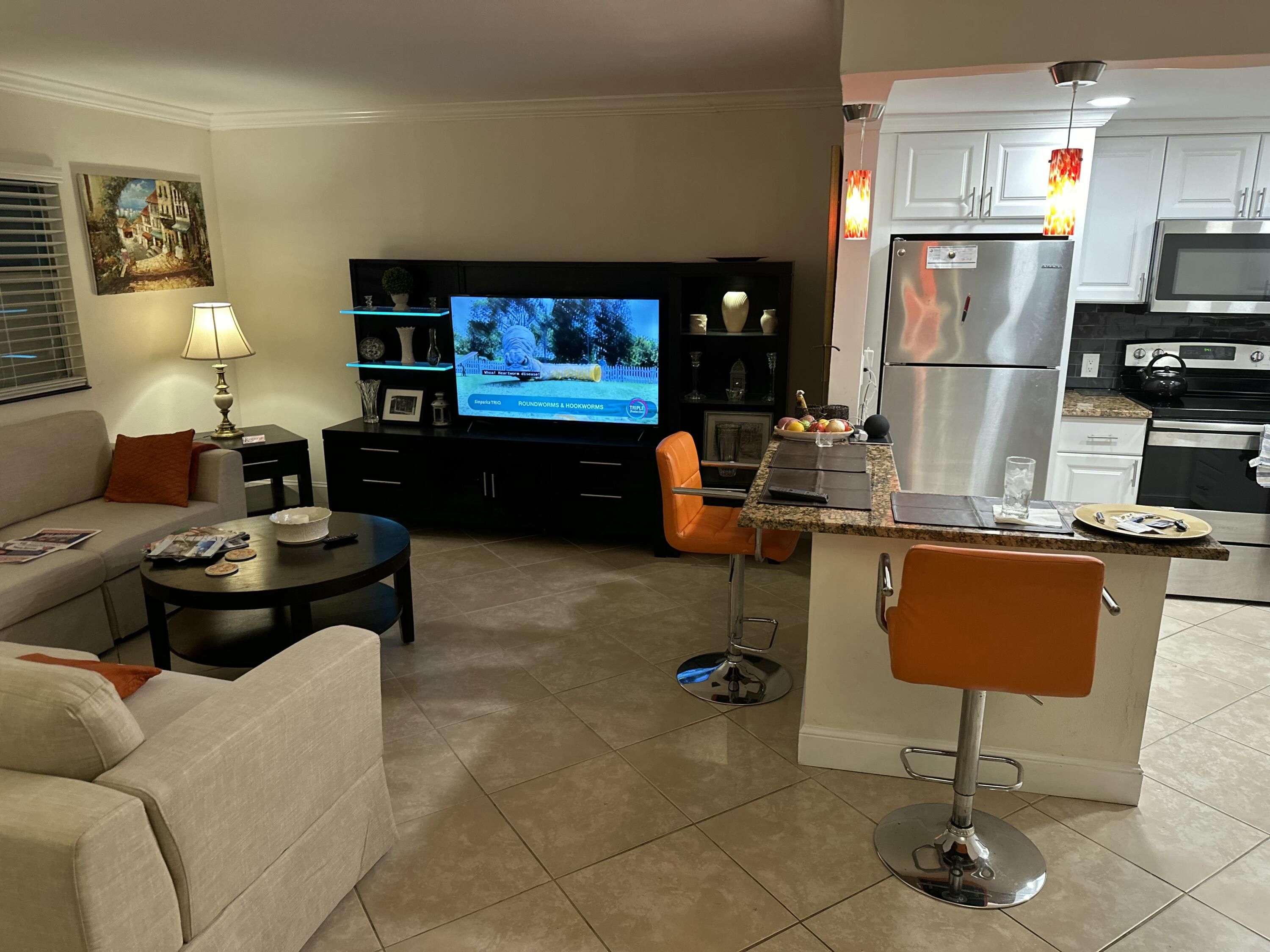 Discover this beautifully updated ground-floor unit, offering 1 bed and 1.5 baths. The unit boasts a spacious screened-in patio perfect for relaxing, complemented by an open kitchen design with elegant granite countertops and high-end stainless steel fixtures. Located on a small, quiet dead end street. Enjoy the sophistication of tiled flooring throughout and the efficiency of modern LED lighting. Located just steps from the Monaco clubhouse and pool, you'll have access to a wide array of state-of-the-art amenities. Community highlights include golf, tennis, and pickleball courts, both indoor and outdoor swimming pools, a theater, a fitness center & cafeteria.