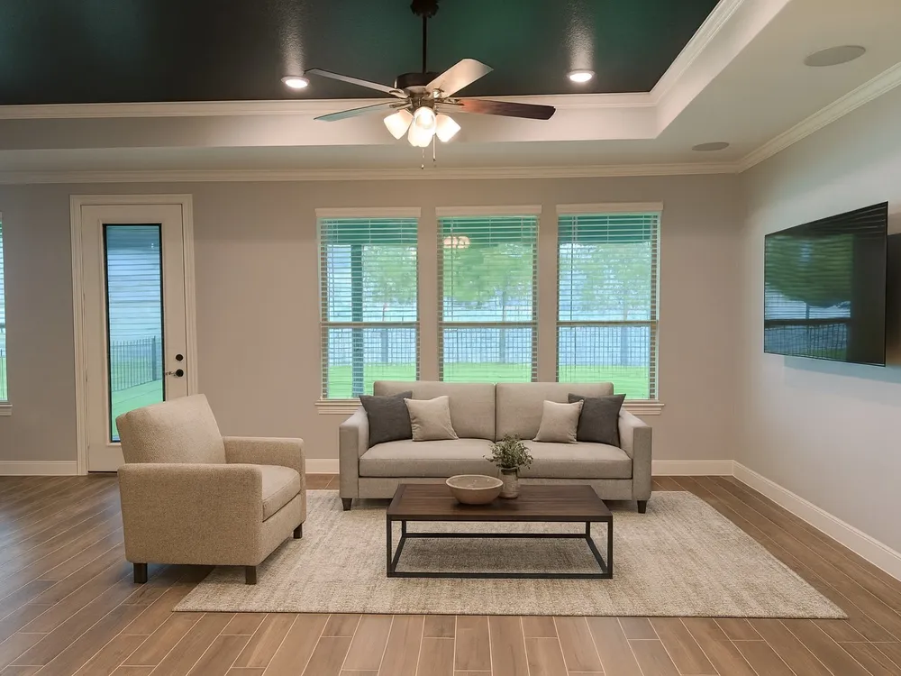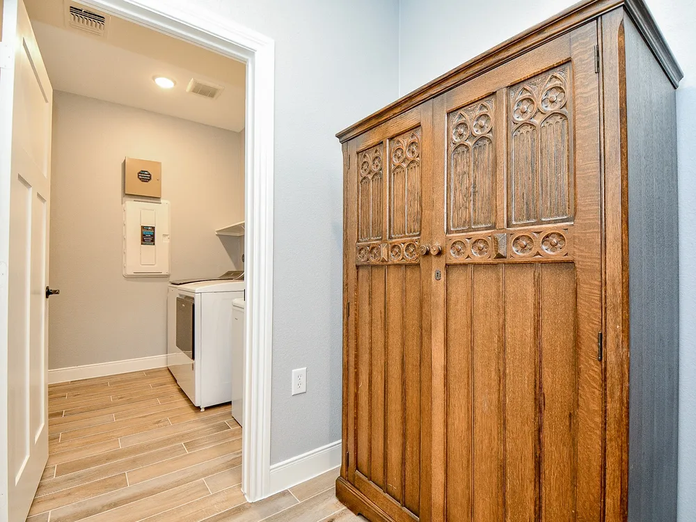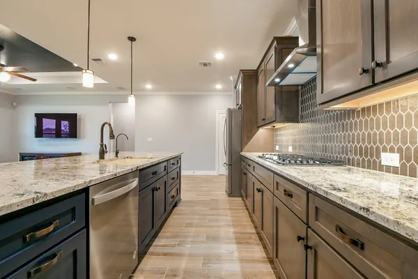 - Crown Molding, Double Vanity, Entrance Foyer, Granite Counters, Kitchen Island, Kitchen/Family Room Combo, Pantry, Self-closing Cabinet Doors, Self-closing Drawers, Walk-In Pantry, Window Treatments, Ceiling Fan(s), Programmable Thermostat