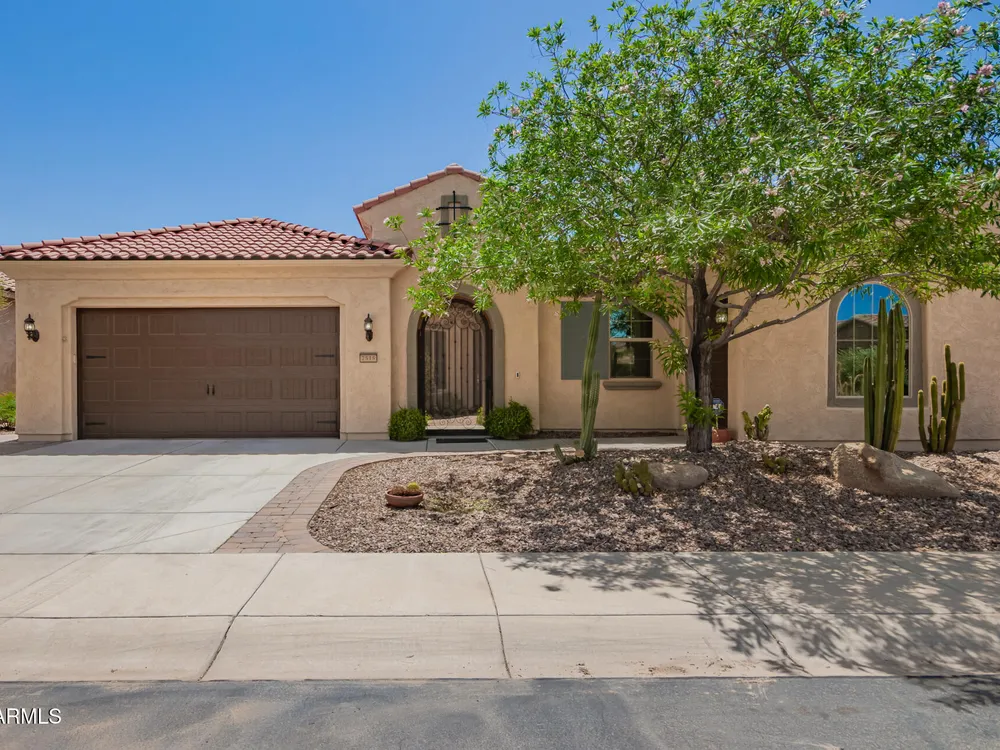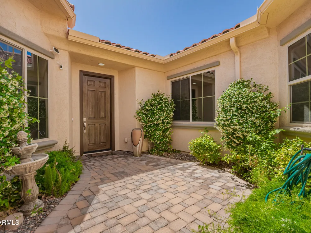 Welcome to luxury living in the heart of Florence, AZ. As you step through the custom iron gate into the courtyard you will fall in love with the tranquility of the courtyard. The highly sought Journey floor plan offers an expansive living space of 2537 sq ft with two large sized bedrooms. The guest sutie features its own on -suite with a private bathroom and sitting area. The primary offers a large bedroom, bathroom with soaker tub and shower, lots of storage. The heart of the home, the kitchen is a Chefs delight, featuring a gourmet kitchen with a gas cooktop, wall ovens, very large granite island, stainless steel appliances, butlers pantry and large walk in pantry. The living area extends seamlessly to outside to a secluded sanctuary private backyard, including a private hot tub...mo perfect for relaxing under the stars at night. Not to be overlooked the spacious two car garage plus a golf cart garage, catering to both your practical needs and leisure pursuits. This home is not just a home but embodies a lifestyle that feels like a luxury retreat. **All new exterior and interior paint, all new carpet just installed, newer pergola, all newly updated light fixtures and recessed lighting installed, water filteration system, all irrigation replaced. ***