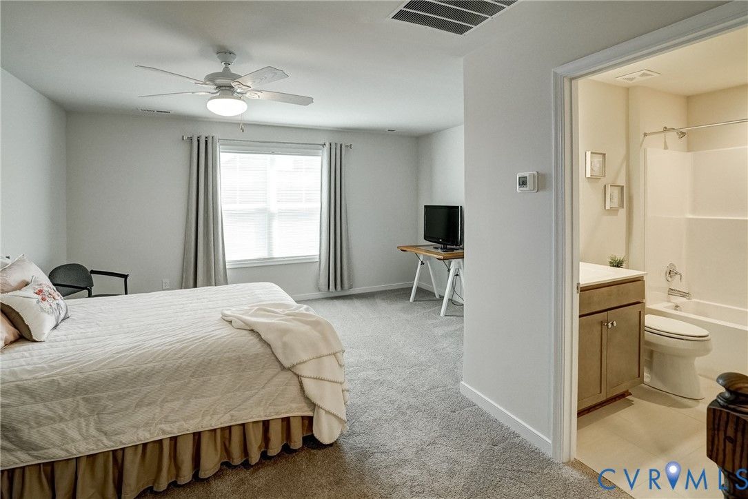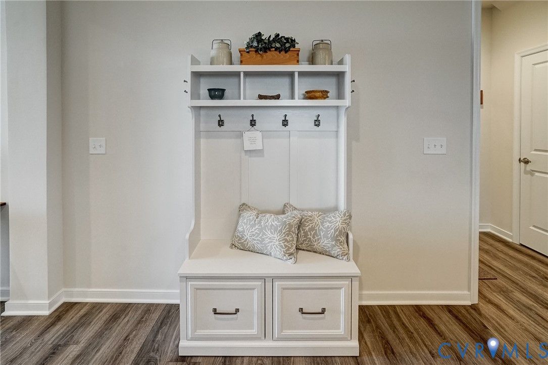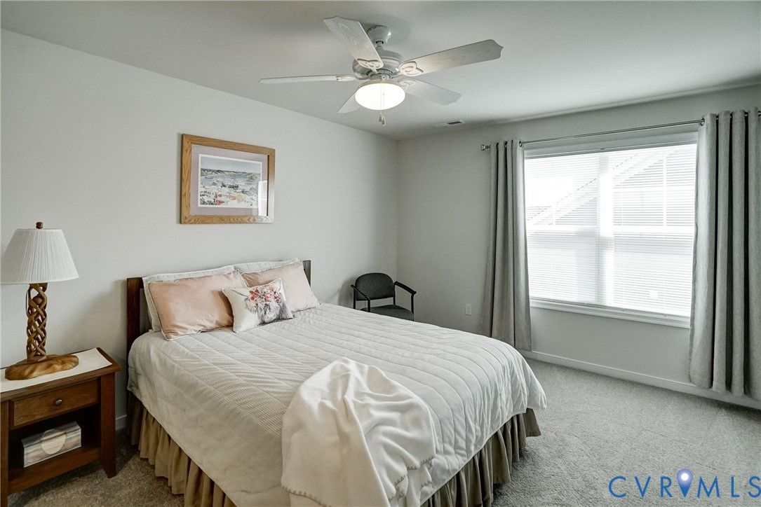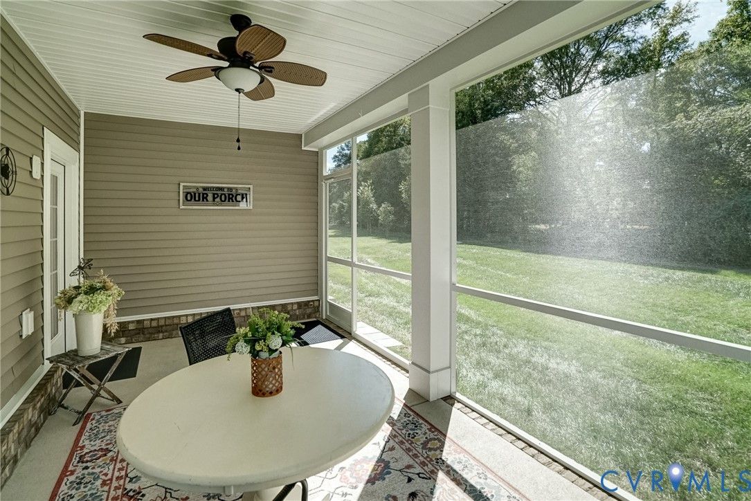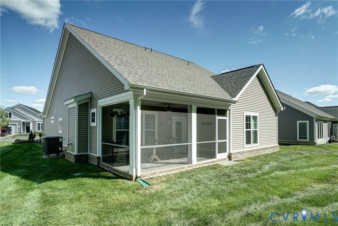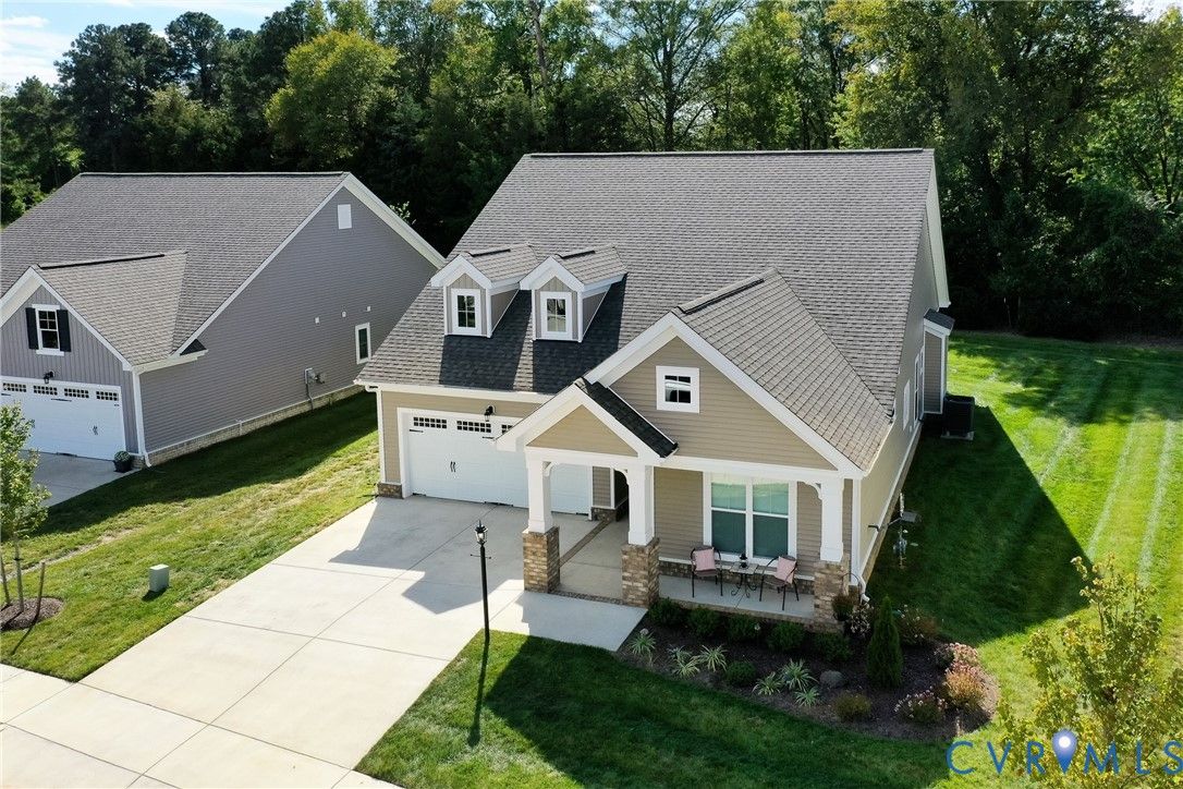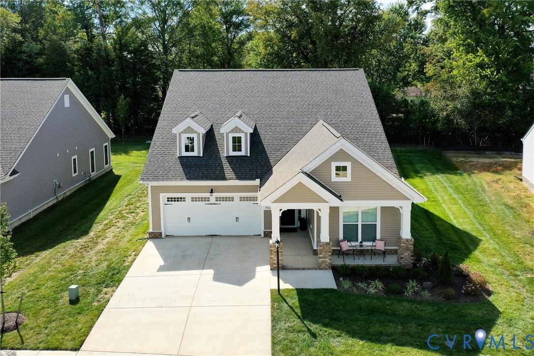 Flawless design, thoughtful details and a view that soothes the soul. This home is better than NEW! Stunning 3 bedroom, 3 bath patio home showcases tremendous attention to detail throughout more than 2000 sq ft thoughtfully designed living space.. Quality built by Eagle Construction in the sought after neighborhood of Settlers Ridge. This is an unheard of opportunity to purchase a home less than a year old. This gem was built for entertaining, the open-concept layout features LVP flooring, abundant recess lighting as well as upgraded fixtures that flow throughout the home. The elegant crown moulding gives a finished feel to the open concept living area. The chef’s kitchen is a showstopper with leathered white granite counters, herringbone tile backsplash, appealing Irish Cream cabinetry, stainless steel appliances, gas cooking and a center island perfect for large gatherings or the ultimate charcuterie spread! The first floor offers versatility with bedroom Two, ideal for a home office or additional main level bedroom. Rear-load stairs provide access to bedroom Three with its own en-suite bath - perfect for multigenerational living, grandkids or just a get-away space. As you travel this custom home don’t miss the thoughtfulness given to ensure there is ample storage. An additional bonus room upstairs is perfect for temperature controlled storage, art studio, office, craft room and more. Let’s talk about the stunning primary suite! It will take your breath away with its spa-inspired en-suite featuring upgraded tile flooring, frameless glass shower, custom cabinetry and more. Enjoy your morning coffee or evening cocktails on the screened rear porch overlooking an oh, so private rear yard. Need a working garage? You will find it here! A true fully finished two-car garage that can handle the largest of vehicles! 55+ community located near everything RVA to incldue James River, Virginia Cap Trai, Rocketts Landing, shopping, interstates and more. Low HOA dues. It really does not get better than this!