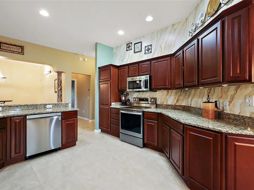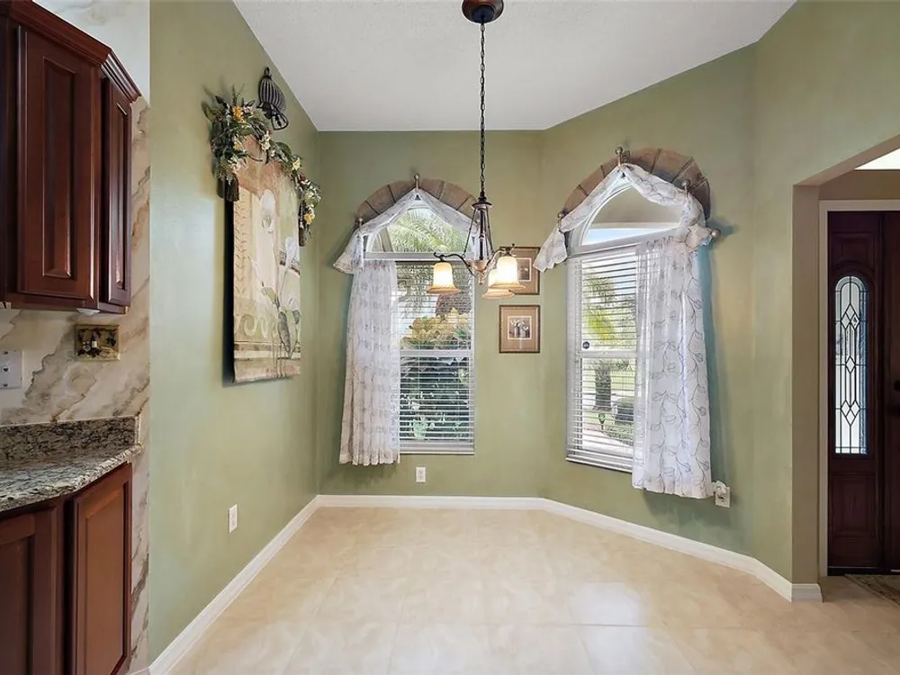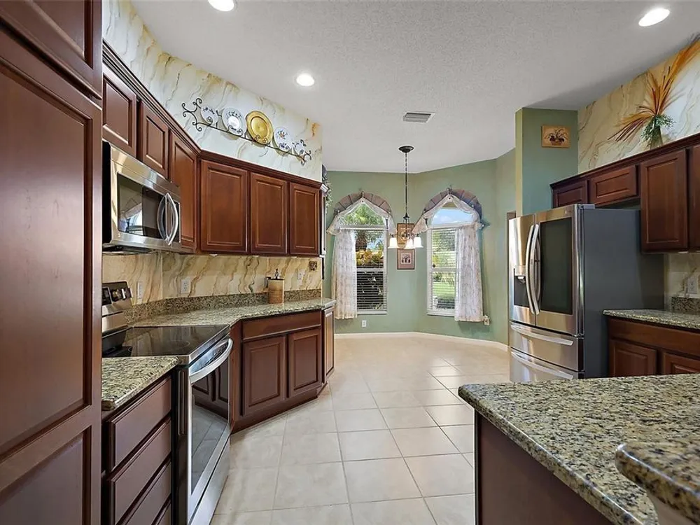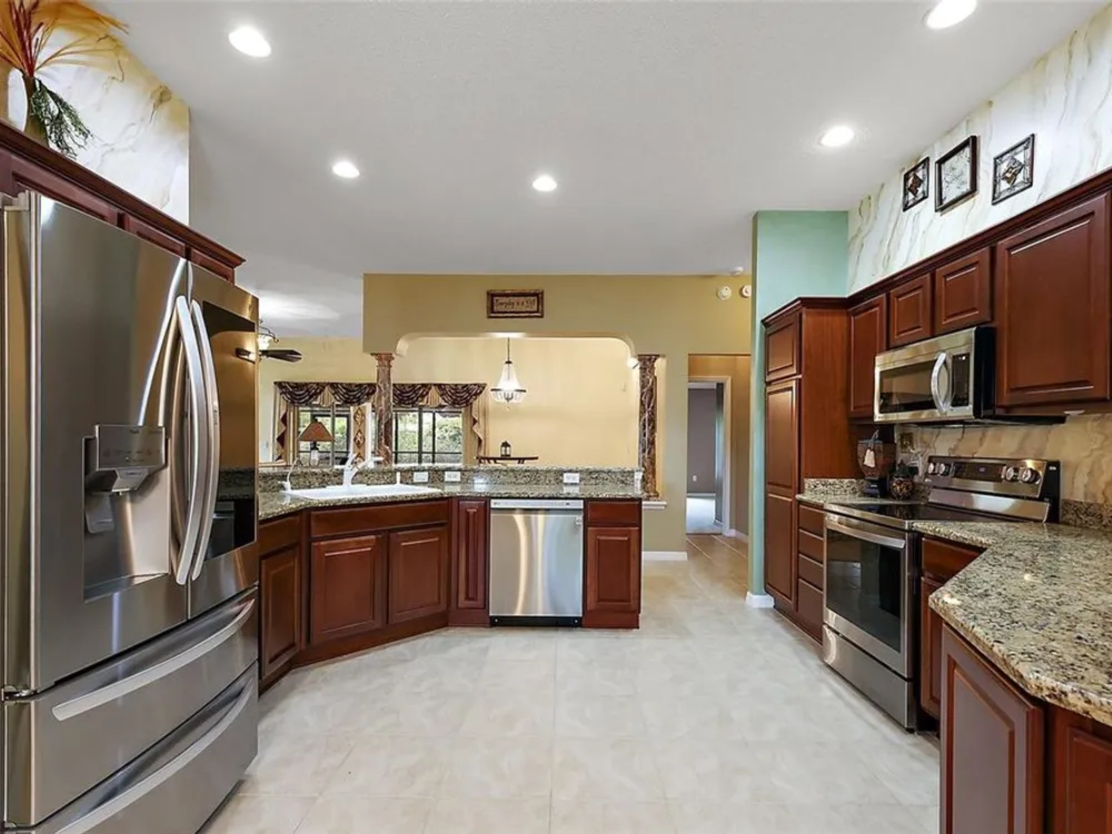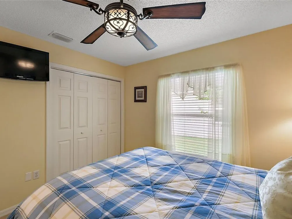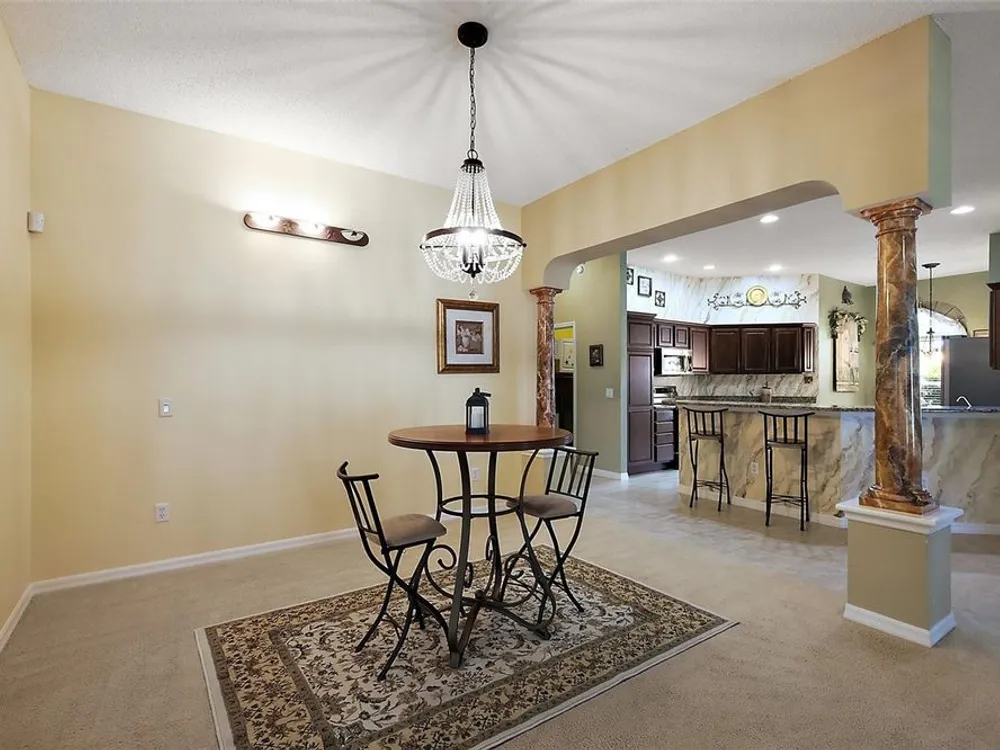 GORGEOUS, 3/2 BLOCK and STUCCO Gardenia featuring a FABULOUS ENCLOSED LANAI with MINI SPLIT, EXTENDED BIRDCAGE, and PRIVACY LANDSCAPING in the highly sought after village of Caroline! JUST MINUTES to Lake Sumter Landing! As you approach, the EXQUISITE exterior boasts PAVER drive and walk ways, MATURE TROPICAL landscaping with CURBED beds, and FRESH external PAINT(2024). Step through the ELEGANT WOOD front door with LEADED GLASS and an arched transom window, into the GENEROUS foyer featuring HIGH ceilings and TILE flooring. The MAGNIFICENT kitchen is truly a chef’s delight, boasting RICH CHERRY cabinetry, GRANITE countertops, STAINLESS STEEL appliances, built-in PANTRY, EAT-IN breakfast bar, and TILE flooring. The adjacent dinette offers ample NATURAL LIGHT with double windows and large arched transoms. The OPEN CONCEPT floor plan and HIGH VAULTED CEILINGS of the living and dining rooms creates a SPACIOUS and VOLUMINOUS main living area. OPULENT columns grace the dining room. A DOUBLE set of sliding glass doors, from the living room, lead you into the FABULOUS ENCLOSED LANAI with MINI SPLIT, EXTENDED BIRDCAGE, and PRIVACY LANDSCAPING! This FANTASTIC room offers a PLETHORA of FULL PANEL SLIDING DOORS that can easily be opened on cooler days to enjoy the fresh Florida air or remain closed to provide an ADDITIONAL 252sf of LIVING AREA! This SPACIOUS RETREAT is perfect for everything from RELAXING with your morning coffee to ENTERTAINING friends and family - truly an entertainer’s dream and a PRIVATE sanctuary all in one! Back inside, retreat to your luxurious primary suite, boasting HIGH VAULTED ceilings, TWO WALK-IN closets, and sliding glass doors that open to the ENCLOSED LANAI. It’s ensuite bathroom features CHERRY cabinetry, DOUBLE sinks, MAKE-UP vanity, GLASS-ENCLOSED WALK-IN shower with TILE finishes, and a LARGE LINEN closet. A SPLIT FLOOR PLAN, places two additional bedrooms and second bathroom near the front of the house, creating a PRIVATE GUEST WING or QUIET home office area. Bedroom two offers a built-in closet. The second bathroom features TILE floors, CHERRY vanity, TILED tub and shower combination, and a hallway LINEN closet. The third bedroom (no closet) would make a wonderful home office or additional sleeping area. The CENTRALLY LOCATED INTERIOR LAUNDRY ROOM offers WHITE cabinets for additional STORAGE needs, a utility sink, and TILE floors. It leads you into the two-car garage with INTER-LOCKING TILE floors, attic access with stairs, and TRIPLE layered wall shelving for an ABUNDANCE of extra STORAGE! DON’T MISS YOUR OPPORTUNITY to make this GORGEOUS HOME YOUR OWN! The Village of Caroline offers an UNBEATABLE LOCATION - ONLY MINUTES from Lake Sumter Landing - where you’ll find an array of shopping, dining, and nightly entertainment! You’ll also be close to Mallory Hill and Arnold Palmer Country Clubs and Championship Golf Courses. Health enthusiasts will love the proximity to the Lake Miona Regional Recreation Center and Fitness Trail. Also nearby to Coconut Cove Recreation Center; Caroline Neighborhood Pool; additional recreation centers, golf, pickle ball, swimming pools, and more! This home truly is a gem, located in one of the most desirable neighborhoods in The Villages! PLEASE WATCH OUR WALKTHROUGH VIDEO of this AMAZING HOME in a FABULOUS LOCATION and call today to schedule your Private Showing or Virtual Tour!