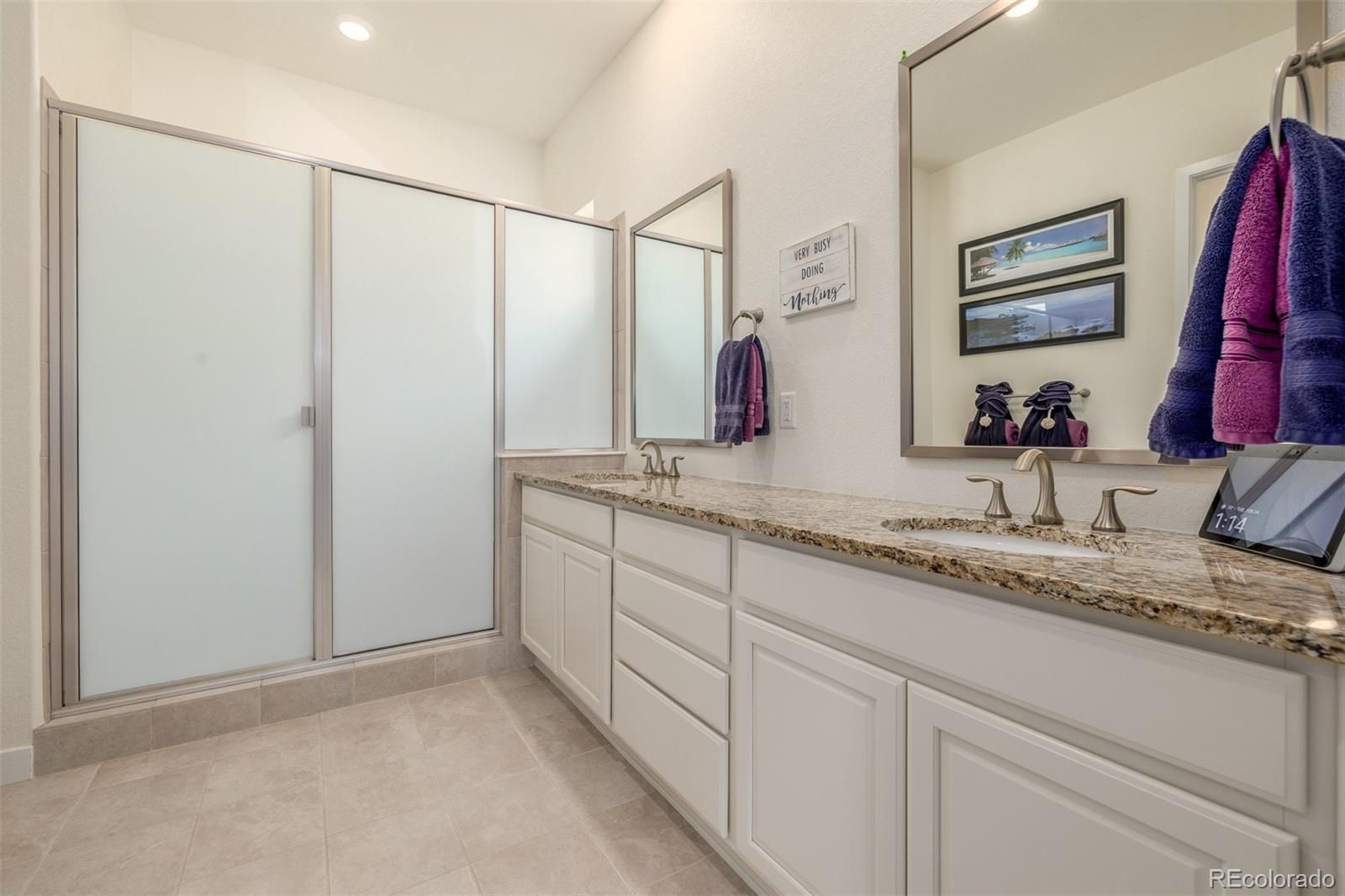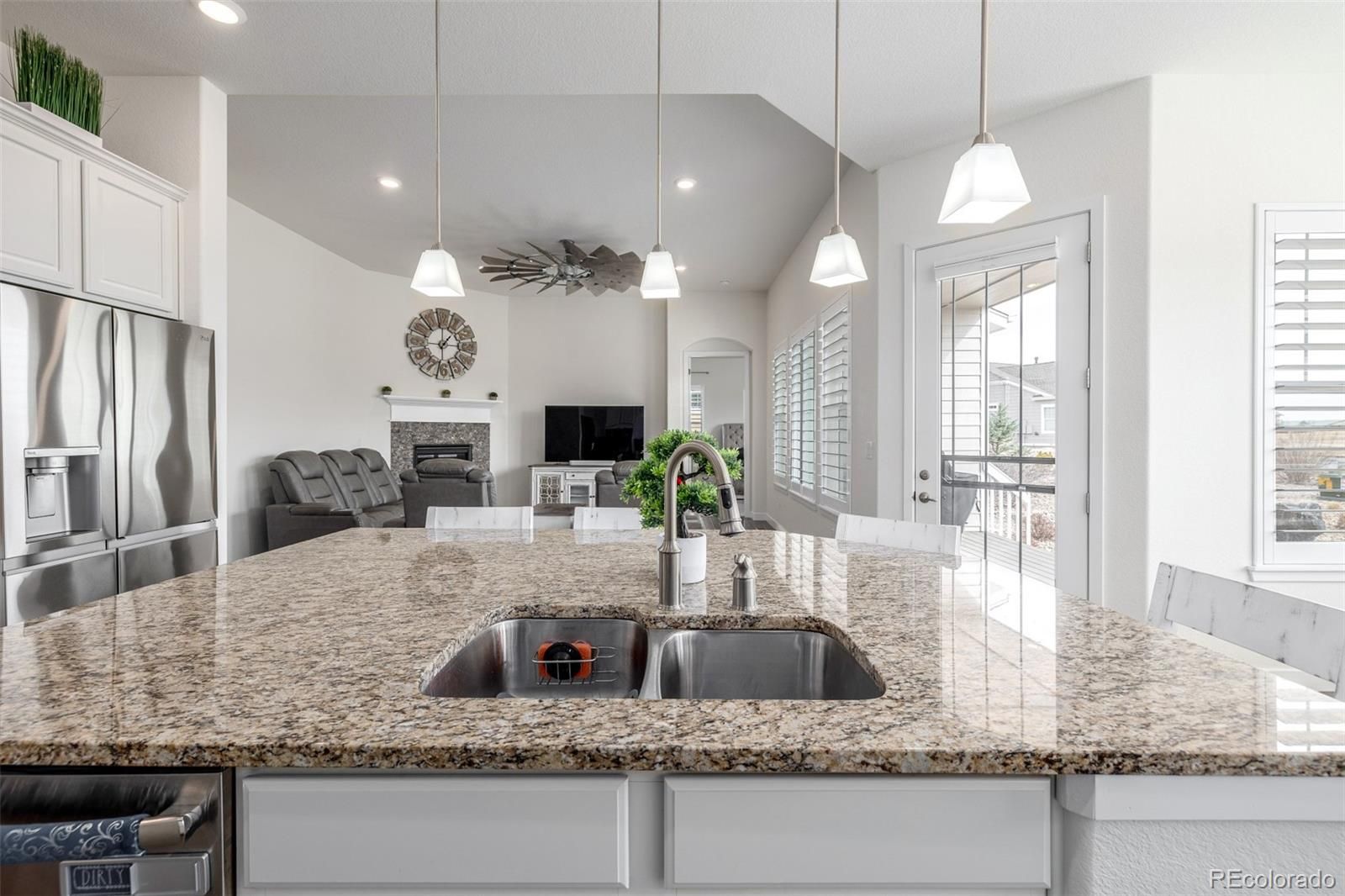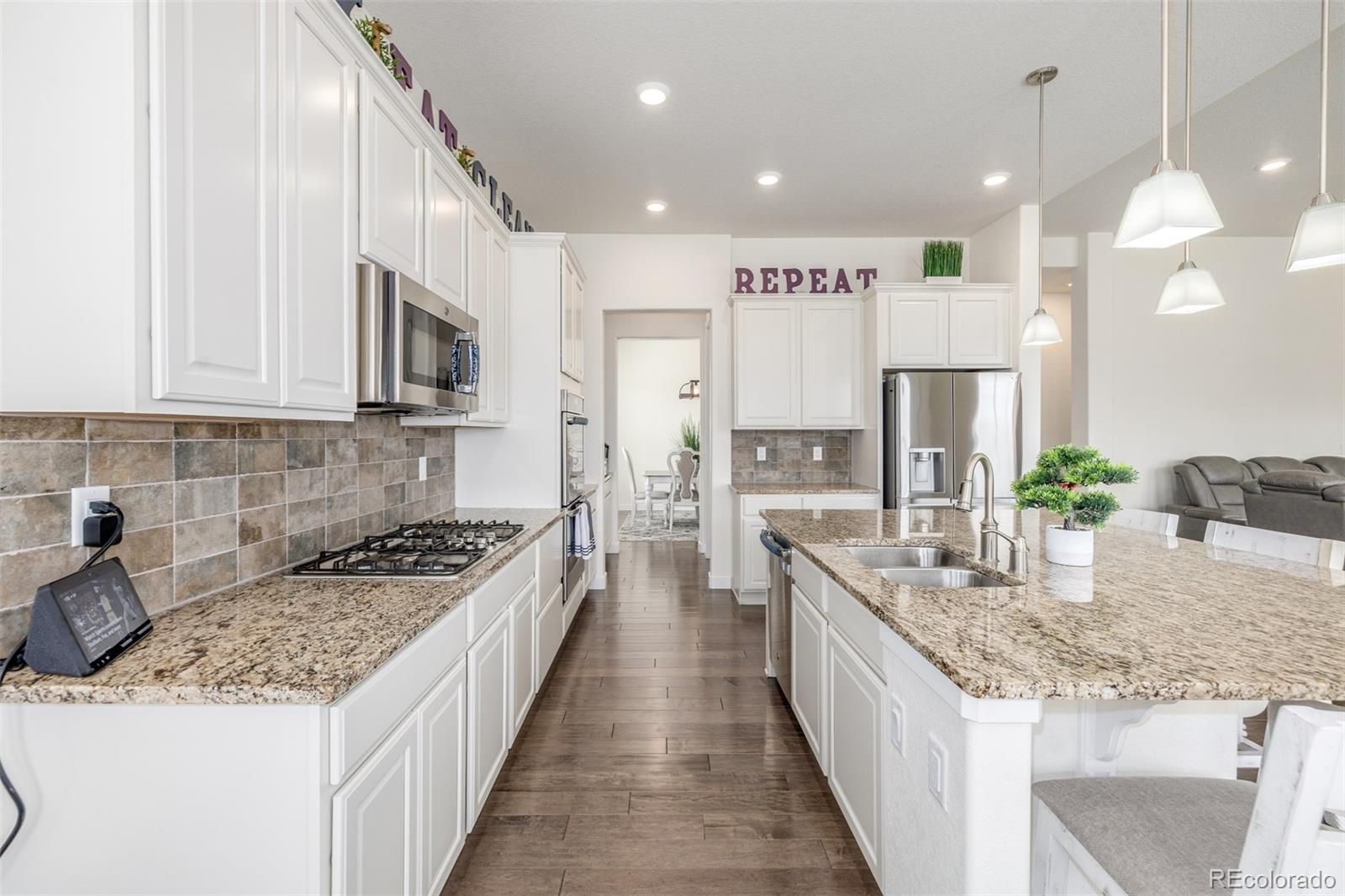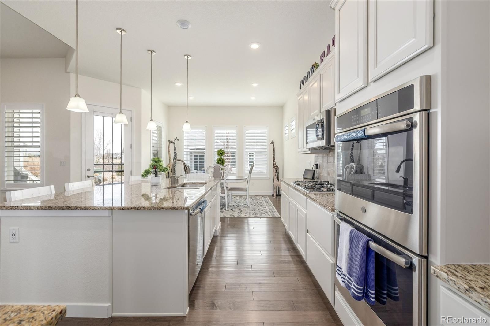 RARE CORNER LOT WITH THE REDFORD 4BD 4BATH HOME w a FINISHED BASEMENT!! Welcome to this exquisite residence located in the highly sought-after 55+ community of Heritage Todd Creek! The 3-car garage immediately sets the tone. Inside, you’ll be greeted by an inviting living room featuring a cozy fireplace that creates the perfect gathering spot. Wood-look floors add warmth and elegance, while the open concept design and high ceilings makes entertaining effortless. Host holiday dinners in the dining area, perfectly situated for both intimate evenings and lively celebrations. Kitchen is a true showstopper boasting sleek solid surface counters, stainless steel appliances, convenient wall ovens, and a striking mosaic tile backsplash that adds a touch of artistry. The center island with breakfast bar provides additional space for meal prep or morning coffee. Whether you love to cook or just enjoy a beautiful kitchen, this one delivers on both function and style. At the end of the day, retreat to the main bedroom, your personal sanctuary. Featuring wood-look floors, a charming bay window, and a private spa-like bathroom, this space offers the ultimate in relaxation. The bathroom is thoughtfully designed with double sinks, a glass-enclosed shower, and tile floors, complemented by a generous walk-in closet to keep everything organized leading directly into your laundry room complete with a sink and plenty of cabinets for storage. For those who work from home, need a reading nook, or want a quiet creative corner, the bedroom provides the flexibility to make it your own. Outdoors, enjoy Colorado’s stunning sunsets from the covered patio backing to one of the amazing water spots, the perfect setting for your favorite beverage or quiet reflection. This community enhances your lifestyle with amenities including a resort-style pool, fitness center, clubhouse, and more, all designed to encourage relaxation and connection.