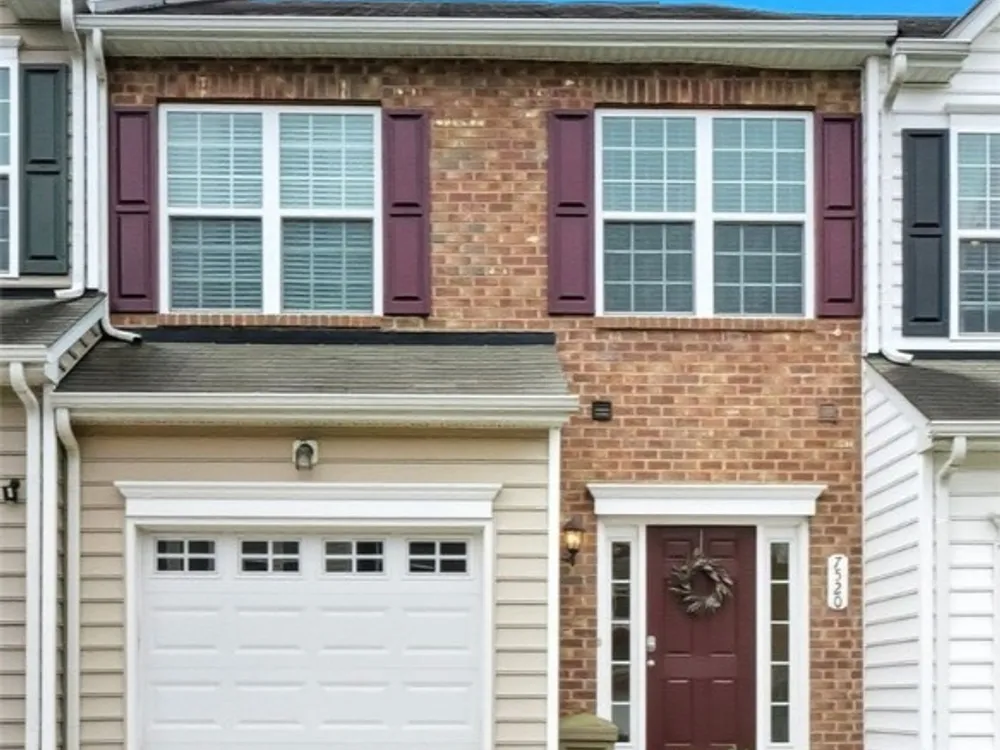 Welcome to 7520 Washington Arch Dr. in the desirable Liberty Trace community! This 1848 square foot Townhouse features 3 bedrooms, 2.5 baths, a 1 car attached garage, and an open concept floorplan. On the exterior, you will find a concrete driveway, rear patio, low maintenance exterior, and this home backs to the common area, walking paths, and tennis courts in the community. On the interior, you are greeted by the large foyer featuring tile flooring. Down the hallway, you will find a half bath and a spacious laundry room with tile flooring, cabinets, and shelving. The spacious kitchen features tile flooring, GRANITE countertops, STAINLESS appliances, a raised breakfast bar, and is open to the dining area and the living room. The dining area features tile flooring and is open to the kitchen and living room. The living room features carpet and a ceiling fan and is open to the kitchen/dining area. Upstairs you will find the spacious primary bedroom featuring carpet, a ceiling fan, and a HUGE walk-in closet with a built in closet kit. The primary bathroom features a separate tub and shower(both with tile surround), a raised height double vanity, and vinyl flooring. Rounding out the upstairs are two spacious bedrooms with ceiling fans and large closets, along with a nice hall bathroom. This home is conveniently located just minutes away from restaurants, shopping, and other amenities. It is also very convenient to get on Route 360/295 for an easy commute to anywhere that you need to go. Come see all that this home has to offer today!