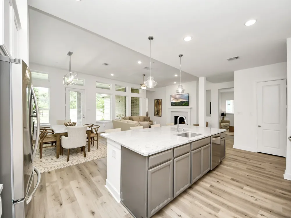 Welcome to this beautiful one-story home in The Highlands Fairway Pines, a 55+ active adult community that combines comfort, style, and resort-style living. Located on the golf course, this home offers stunning views and a peaceful covered patio, perfect for relaxing or entertaining. Inside, you’ll find 3 bedrooms, 2.5 baths, a modern spacious kitchen, living and dining areas, and a den—plus extra storage above the garage. The home is impeccably kept and the layout is open and easy to live in, with a clean, modern feel throughout. Living in Fairway Pines means access to incredible amenities: pools, lazy river, waterslides, state of the art fitness center, tennis and pickleball courts, hiking/biking trails, kayaking, fishing dock, and a top-notch golf course and club and more. It’s a fun, active lifestyle with a touch of luxury, all near shopping and dining. Don't miss out on this home, come experience the Highlands—where life feels like a getaway, every day!