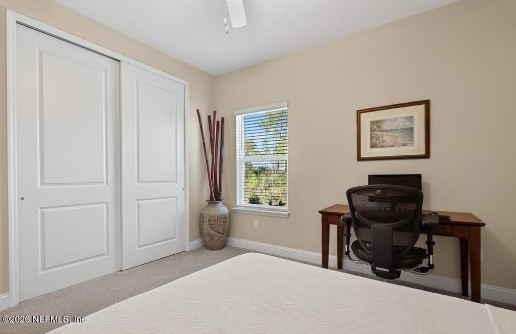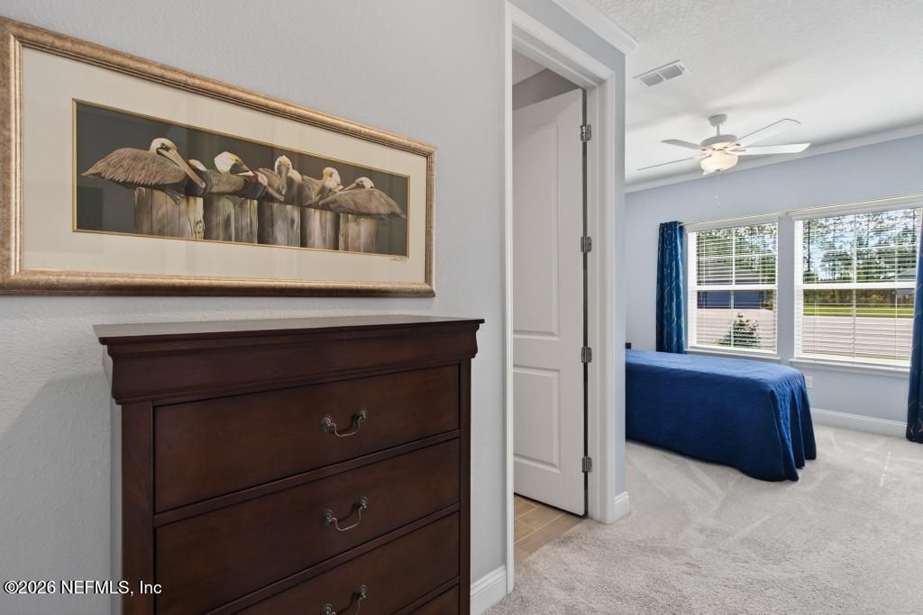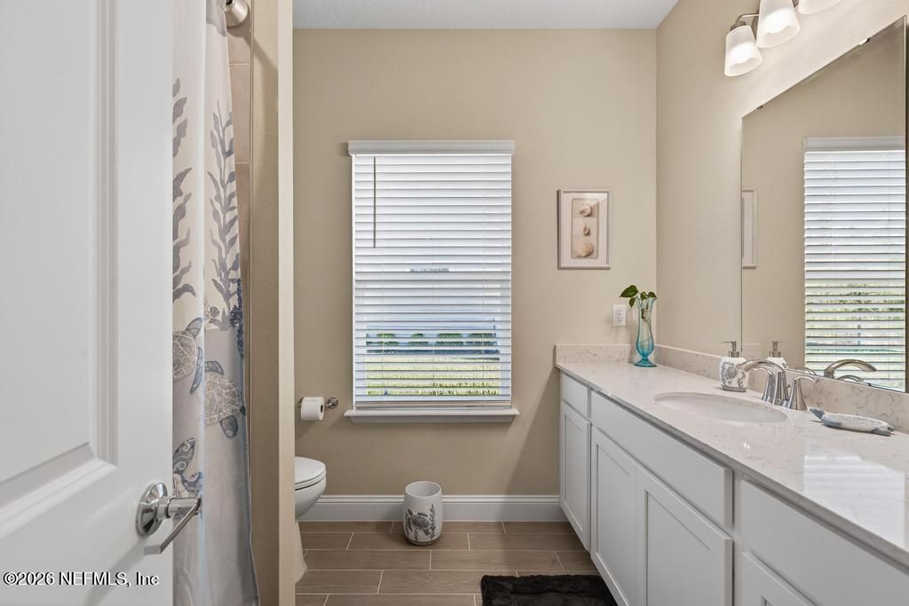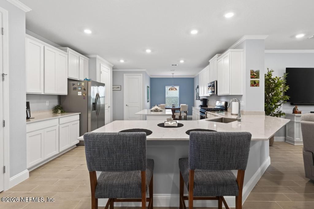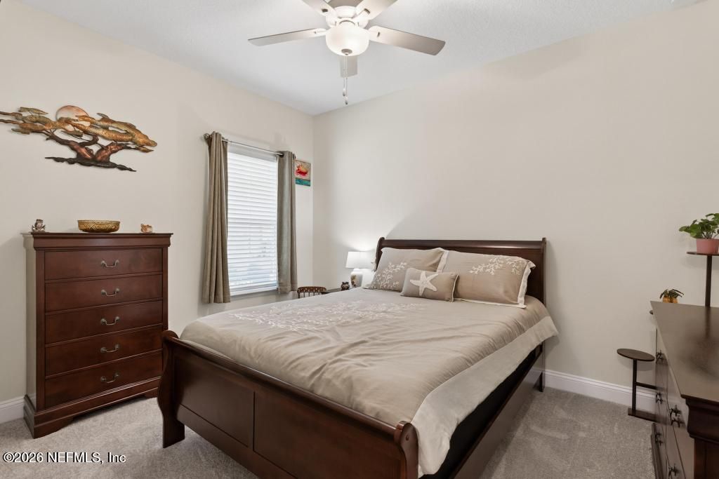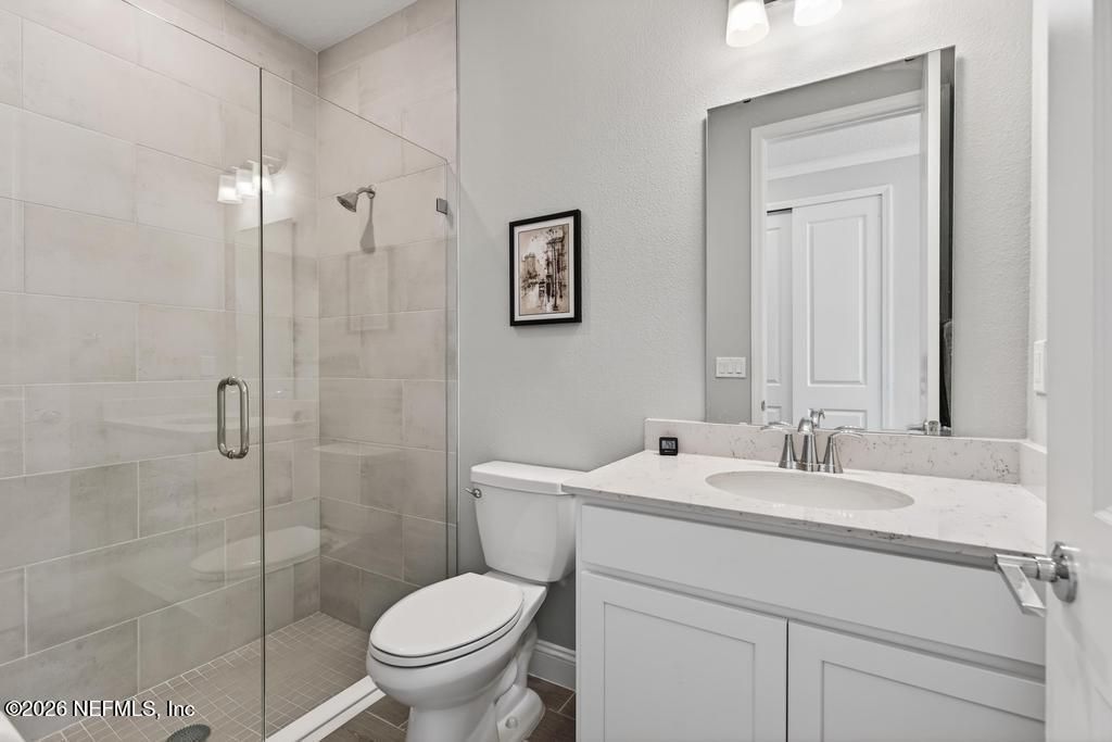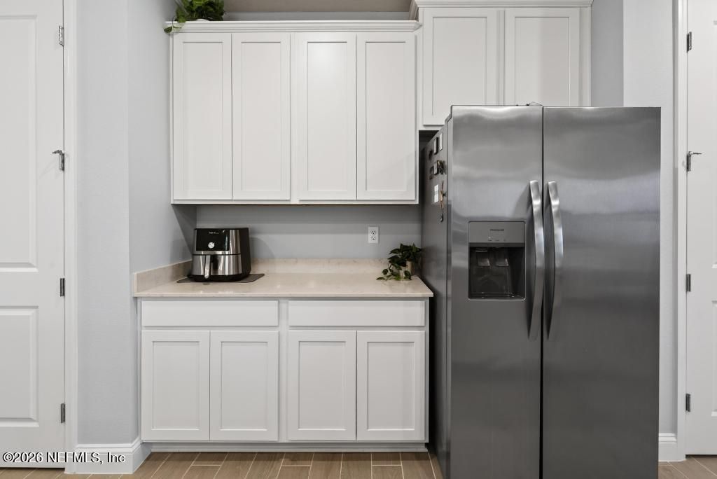 Beautifully maintained, like-new home in the Tributary Lakeside 55+ community featuring the popular Tivoli floor plan. This home offers 4 bedrooms, 3 full bathrooms, and an oversized 3-car garage with approximately 2,288 sq ft of living space. Spacious kitchen includes a large center island with bar seating, stainless steel appliances, single-basin sink, gas range, white cabinetry, quartz countertops, and breakfast nook. Open-concept layout with family room located just off the kitchen, ideal for entertaining. Split floor plan with three bedrooms and two full bathrooms on one side of the home. Primary suite features a large walk-in closet and en-suite bath with walk-in (California-style) shower, dual vanities, and ample storage. Oversized 3-car garage includes durable shark-coated floors. Located on a cul-de-sac with wooded views and shrubbery on both sides for added privacy. Screened lanai provides comfortable outdoor living space. Tributary Lakeside is a gated 55+ community offering a private clubhouse, heated pool, fitness center, pickleball courts, and billiards room. Residents also have access to Tributary's main amenities, including recreational areas, dog park, and playground. Conveniently located near Fernandina Beach, Jacksonville, and Jacksonville International Airport.