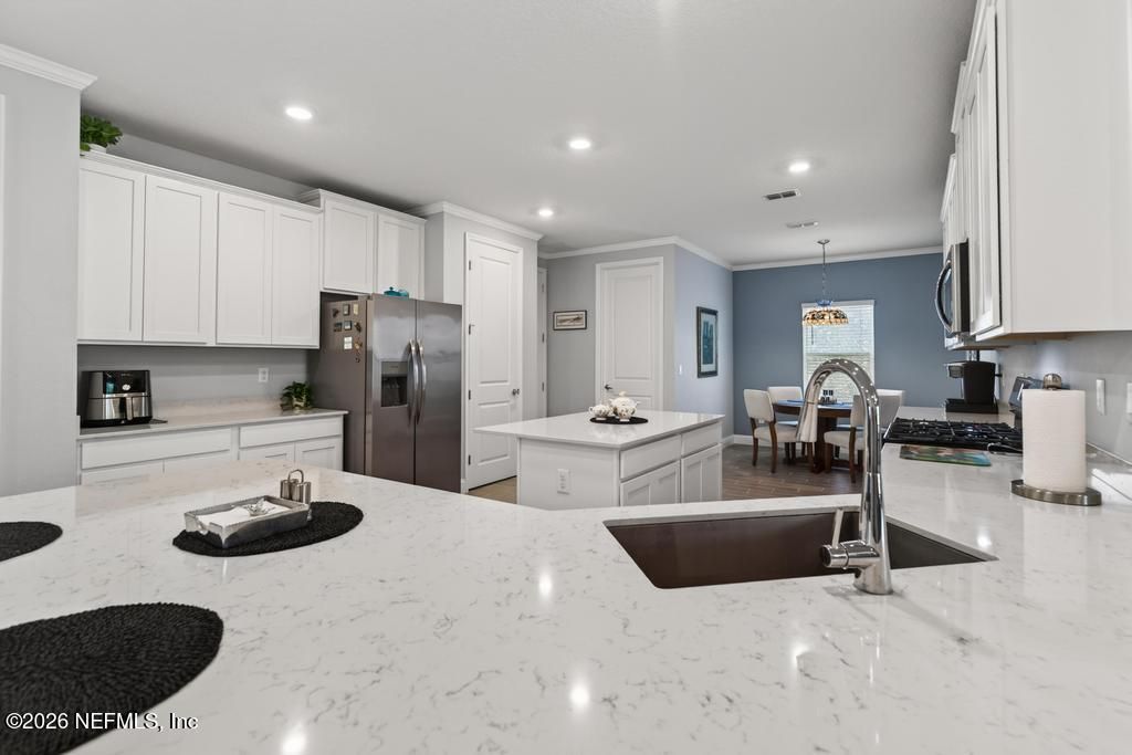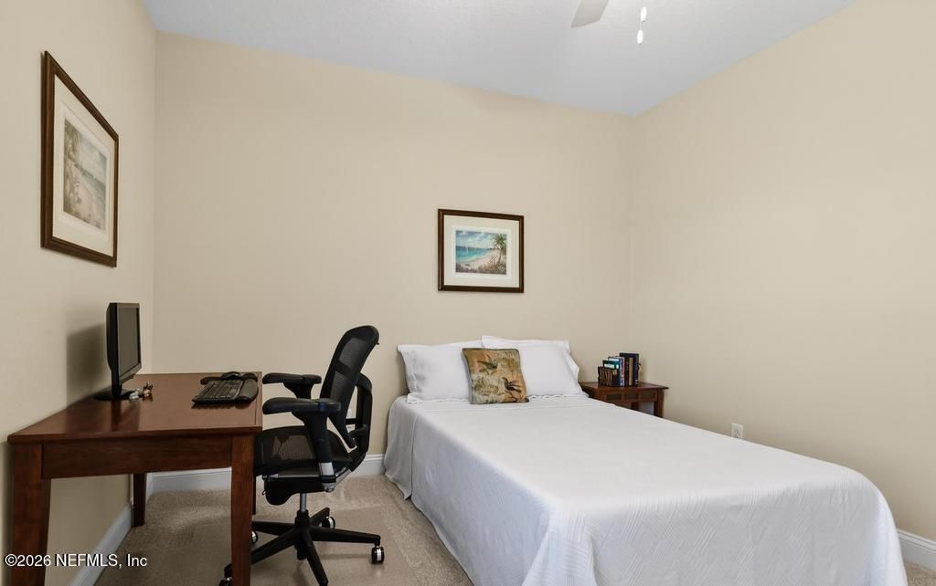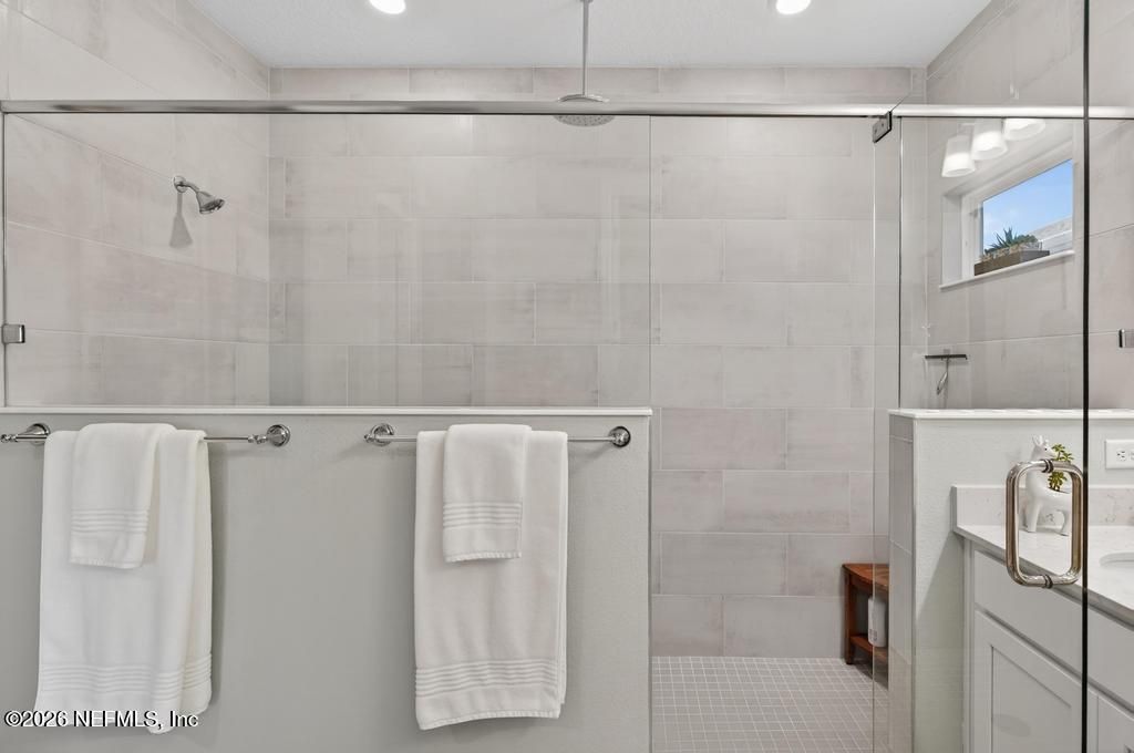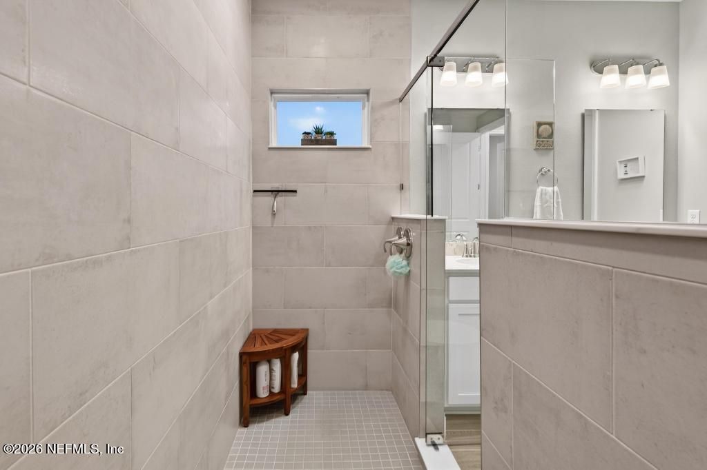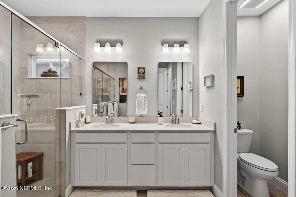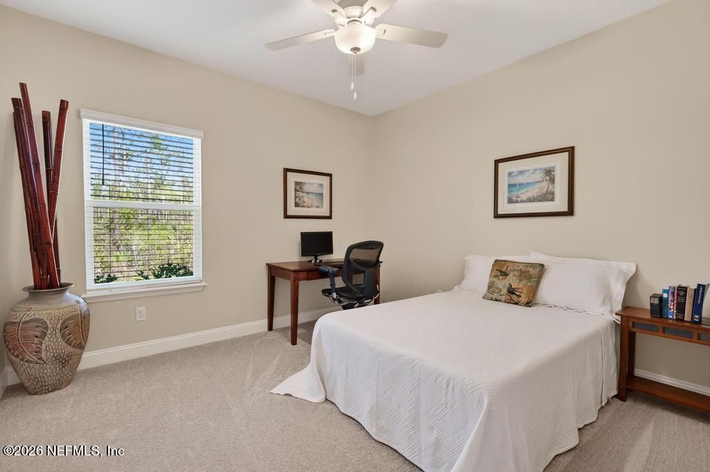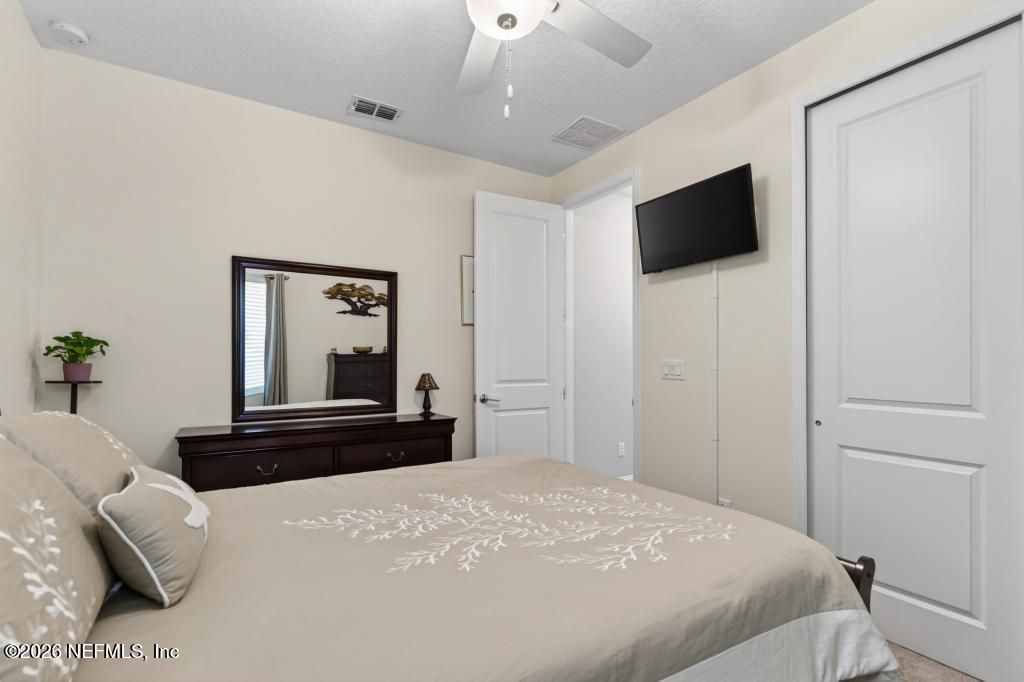 Beautifully maintained, like-new home in the Tributary Lakeside 55+ community featuring the popular Tivoli floor plan. This home offers 4 bedrooms, 3 full bathrooms, and an oversized 3-car garage with approximately 2,288 sq ft of living space. Spacious kitchen includes a large center island with bar seating, stainless steel appliances, single-basin sink, gas range, white cabinetry, quartz countertops, and breakfast nook. Open-concept layout with family room located just off the kitchen, ideal for entertaining. Split floor plan with three bedrooms and two full bathrooms on one side of the home. Primary suite features a large walk-in closet and en-suite bath with walk-in (California-style) shower, dual vanities, and ample storage. Oversized 3-car garage includes durable shark-coated floors. Located on a cul-de-sac with wooded views and shrubbery on both sides for added privacy. Screened lanai provides comfortable outdoor living space. Tributary Lakeside is a gated 55+ community offering a private clubhouse, heated pool, fitness center, pickleball courts, and billiards room. Residents also have access to Tributary's main amenities, including recreational areas, dog park, and playground. Conveniently located near Fernandina Beach, Jacksonville, and Jacksonville International Airport.