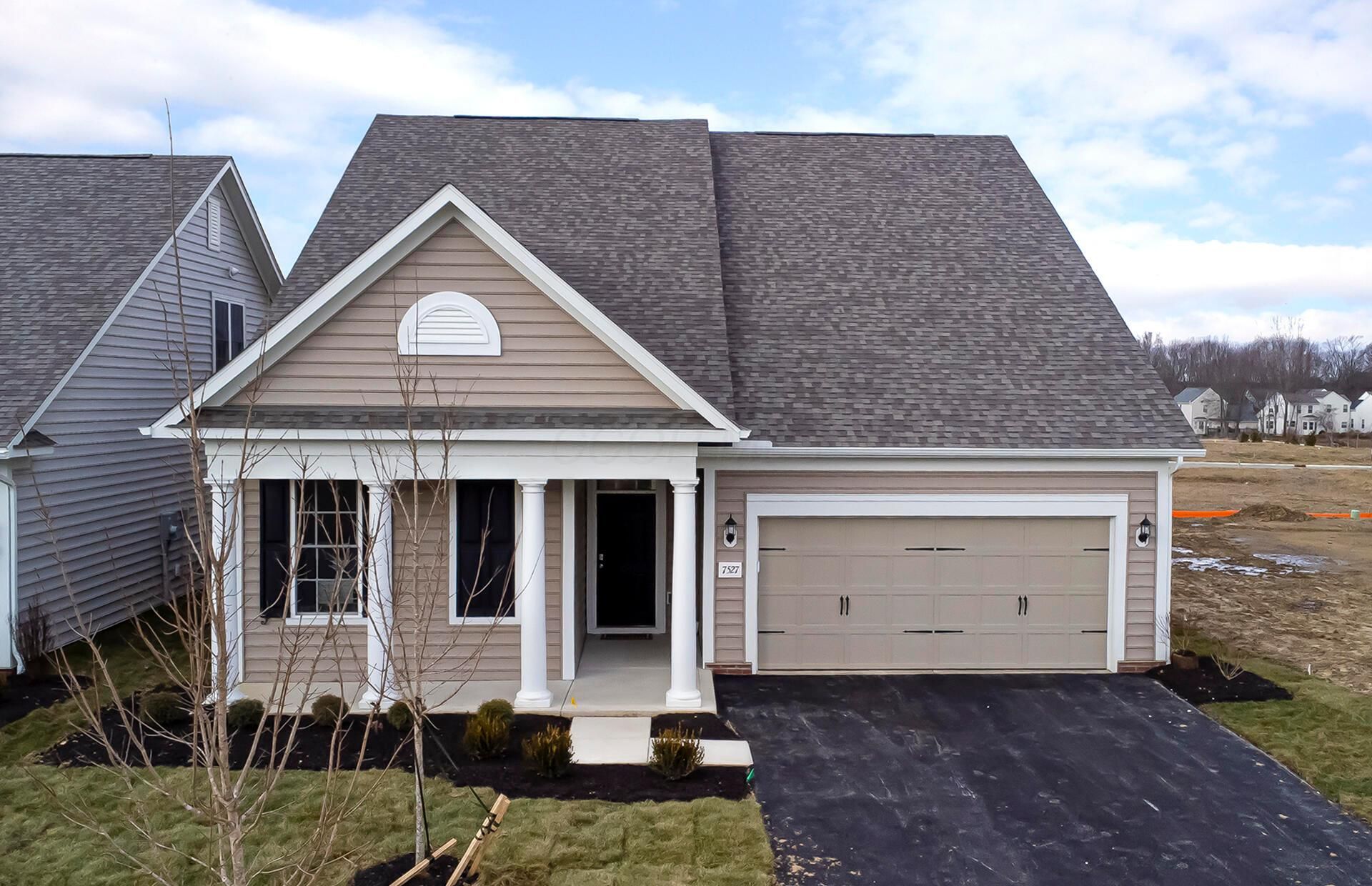 **OPEN HOUSE TUE 2/3 11AM-2PM, SAT 2/7 & SUN 2/8 1PM-4PM** This is a wonderful new 2 bed 2 bath ranch home in Nottingham Trace. The kitchen has built in stainless gas appliances, dana white pure style cabinets with 42'' uppers, miami vena quartz counters, catch fawn gloss tile backsplash, an upgraded stainless legend single bowl sink with a sleek moen faucet, a spacious island with room for seating, a winslow pendant light package and a walk in corner pantry for storage. The owners suite has a large walk-in closet and a private bath with a comfort height double bowl vanity, white zeus quartz counter, a beautiful white tile walk-in shower with seat and an enclosed toilet area. An add'l bed, full bath, eating space, great room, den with doors for privacy, a gorgeous sunroom, laundry, boot bench at entryway and a 2 car garage with extra space for storage. Smart home package included. Upgraded flooring throughout including beautiful luxury vinyl tile flooring. Brushed nickel finishes and fixtures. Front porch...a great spot to relax on. Enjoy the clubhouse with fitness facility, outdoor bocci ball and pickle ball, stocked fishing pond, scenic bike/walking paths and much more. Low maintenance living with the lawn care and snow removal included. This beautiful home is ready for your visit today.