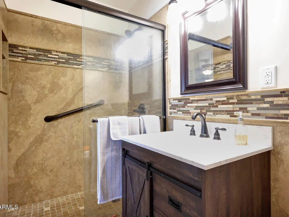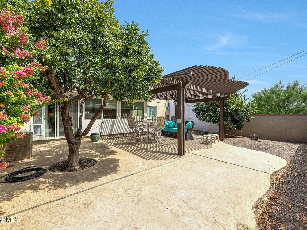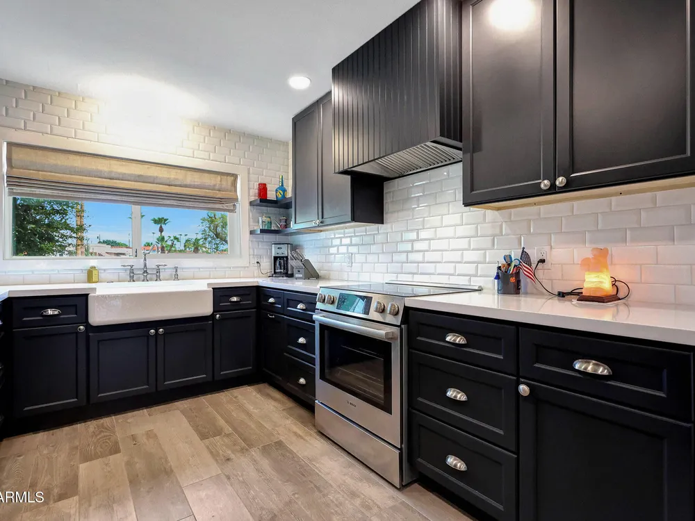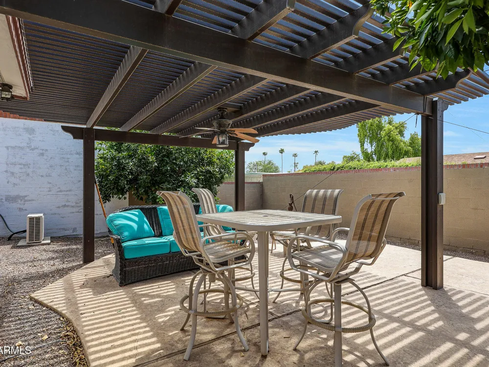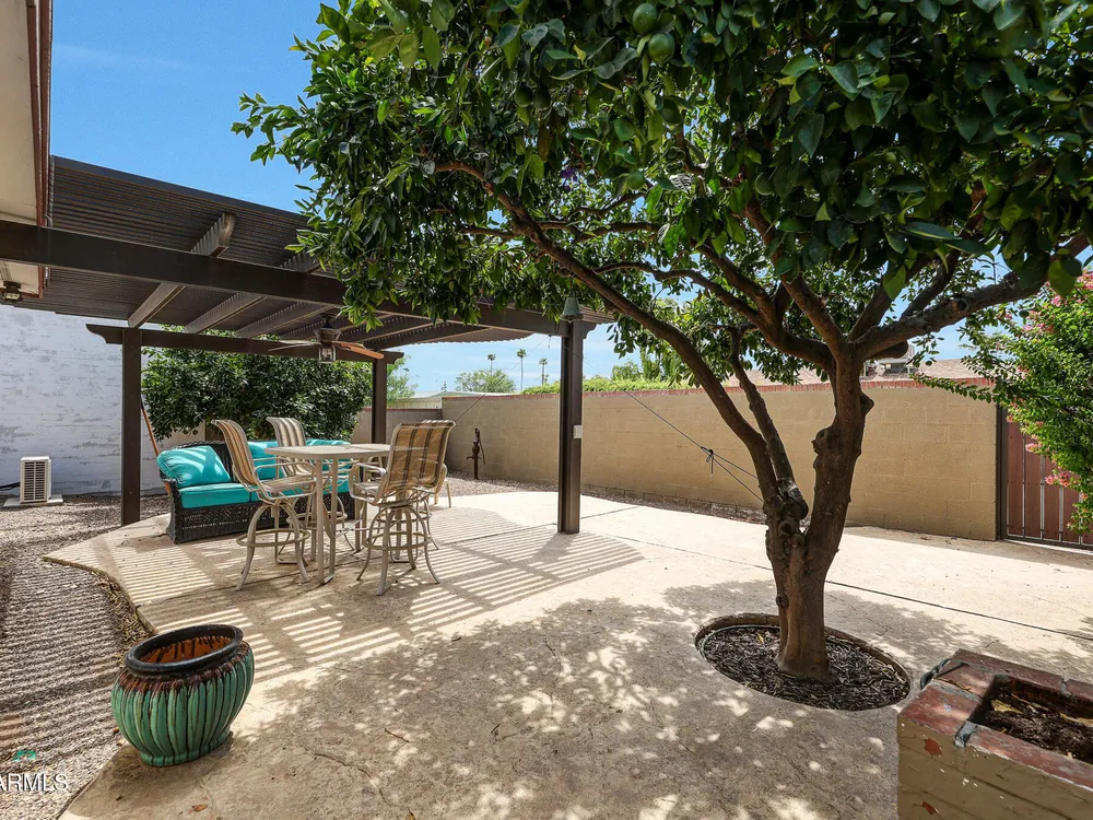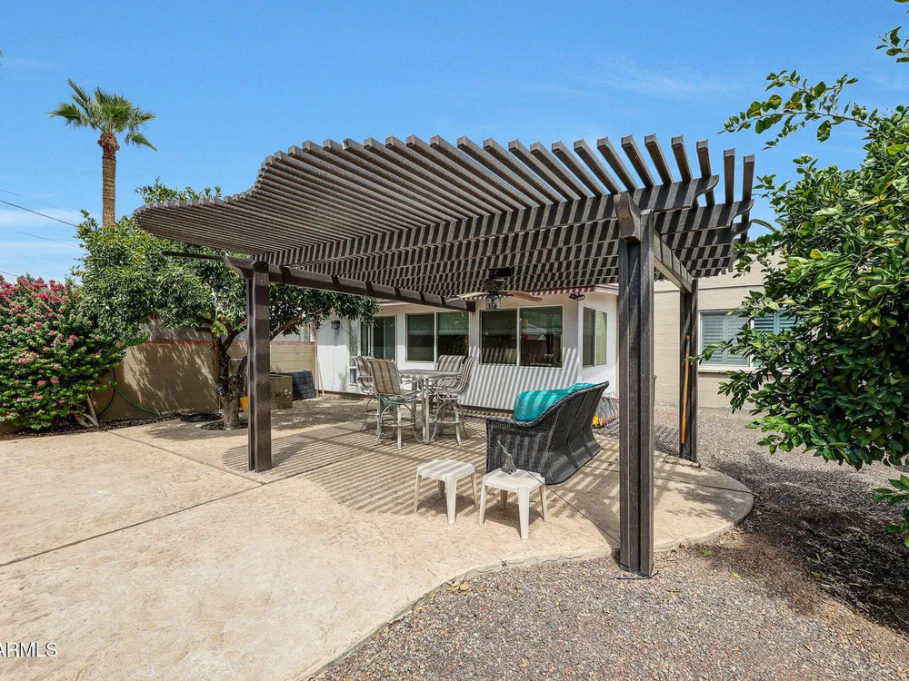 This extensively remodeled home in Villa Monterey is now offered for sale! Completely redone from the ground up by the current residents. The gorgeous kitchen features professionally designed cabinets with quartz counters, Farmhouse sink, backsplash and Bosch appliances! Great Room floor plan with attractive beams. You really need to see this house to appreciate it! Wait there is more! Newer dual pane windows, custom window treatments and sliding door to the spacious backyard complete with Ramada. Roof and AC new in 2022. Wood-look tile throughout with no carpet to be seen! All this in a wonderful 55+ community with low HOA fees of $920 PER YEAR. Close to everything like Scottsdale Fashion Square, Old Town Scottsdale and Chaparral Lake and Park. Close to the free trolly that takes you all around Scottsdale.