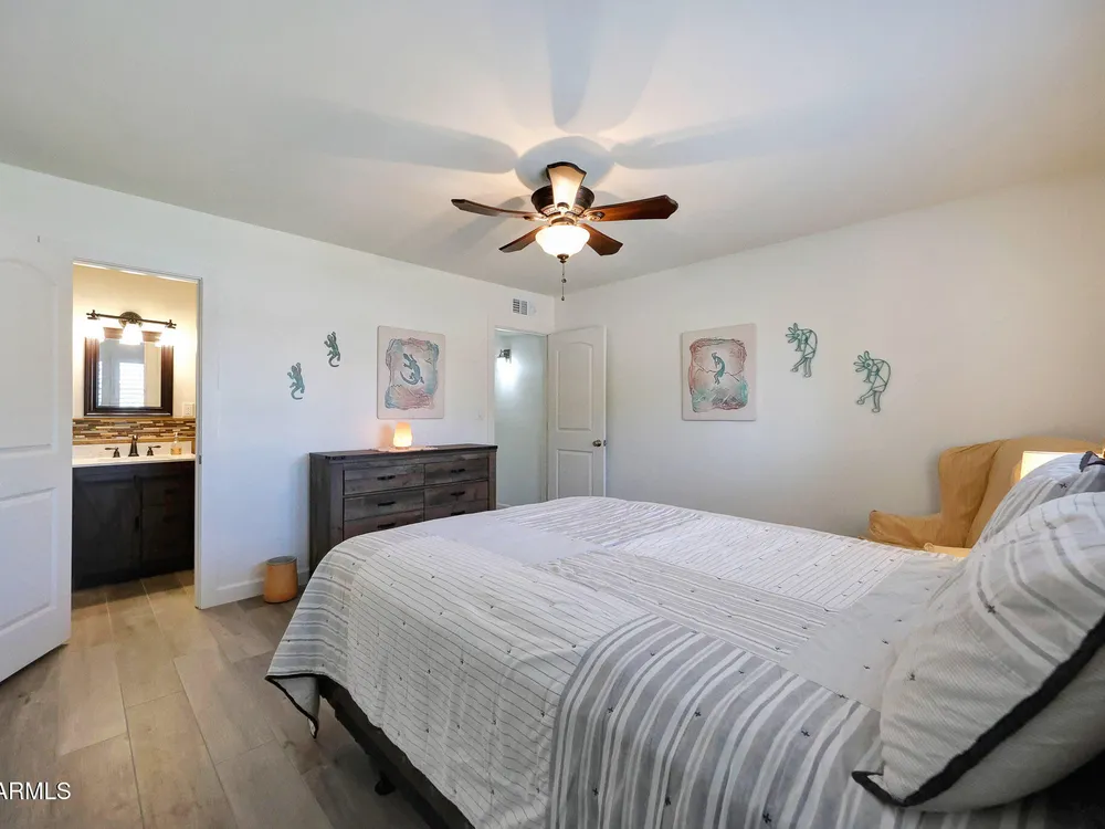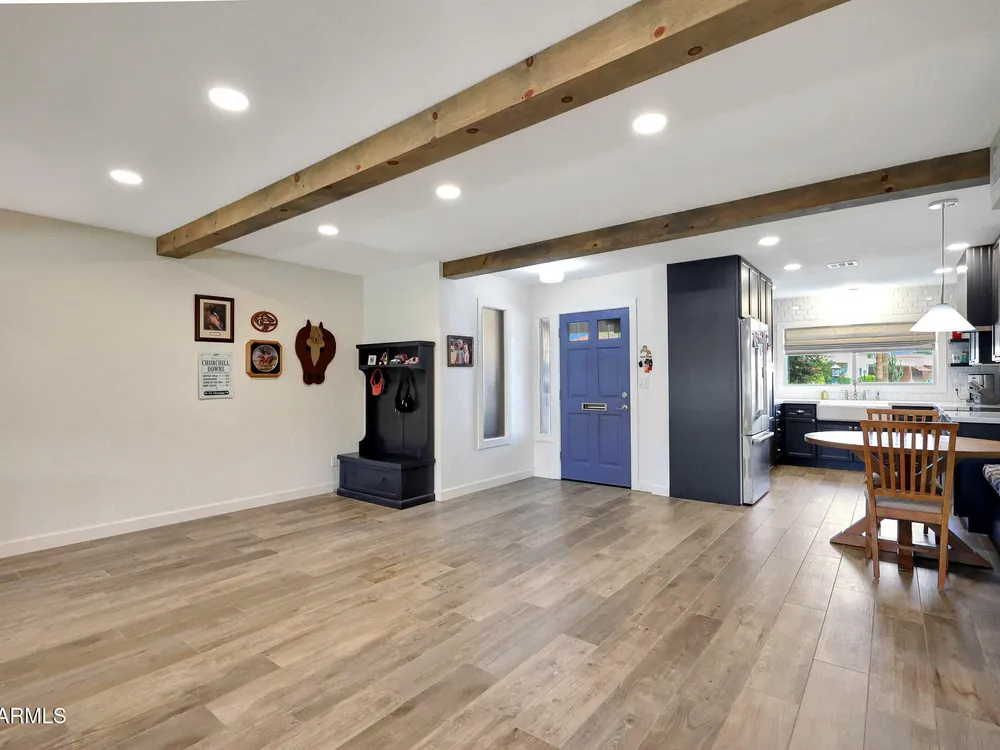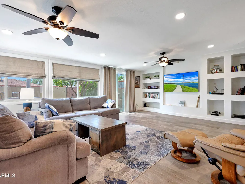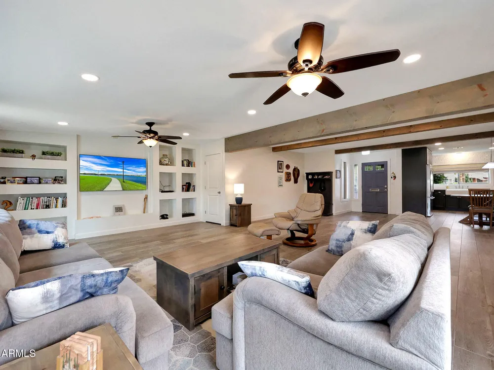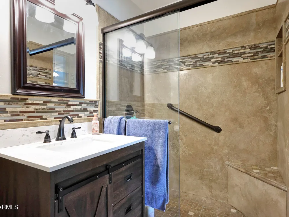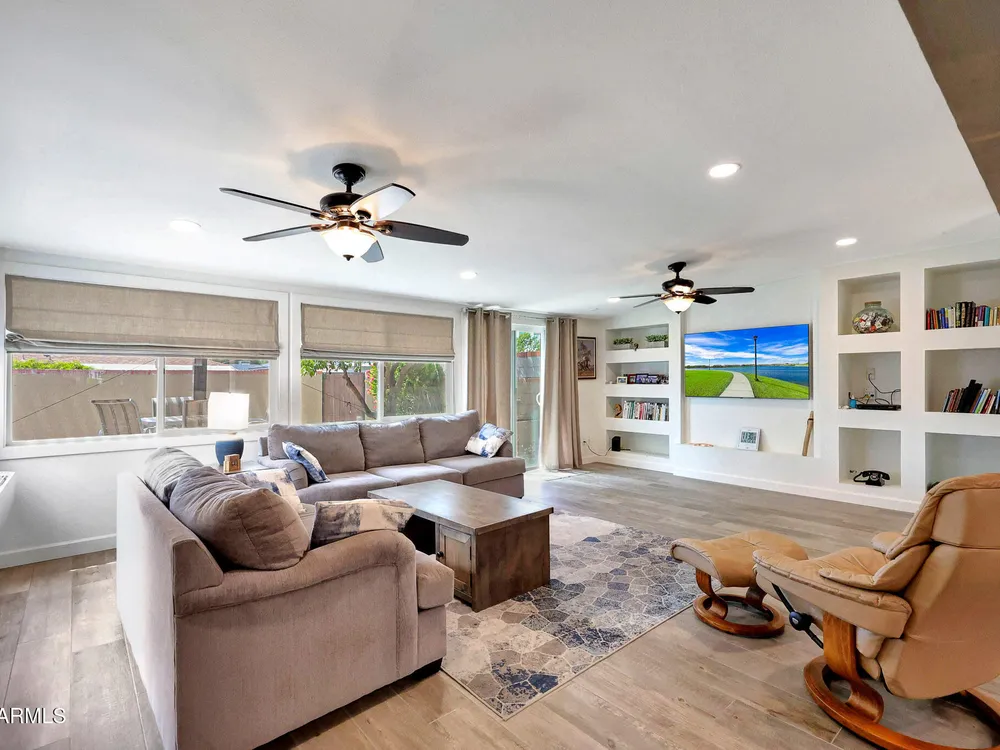 This extensively remodeled home in Villa Monterey is now offered for sale! Completely redone from the ground up by the current residents. The gorgeous kitchen features professionally designed cabinets with quartz counters, Farmhouse sink, backsplash and Bosch appliances! Great Room floor plan with attractive beams. You really need to see this house to appreciate it! Wait there is more! Newer dual pane windows, custom window treatments and sliding door to the spacious backyard complete with Ramada. Roof and AC new in 2022. Wood-look tile throughout with no carpet to be seen! All this in a wonderful 55+ community with low HOA fees of $920 PER YEAR. Close to everything like Scottsdale Fashion Square, Old Town Scottsdale and Chaparral Lake and Park. Close to the free trolly that takes you all around Scottsdale.
