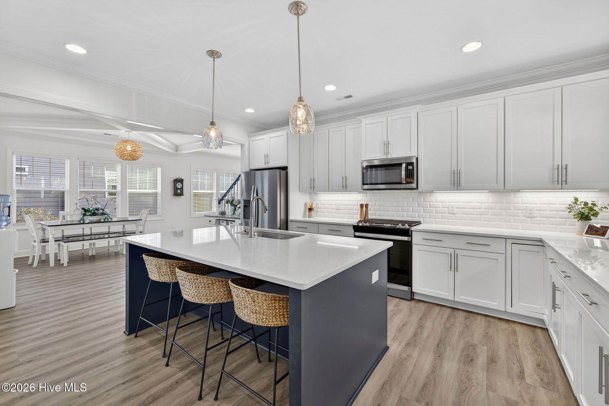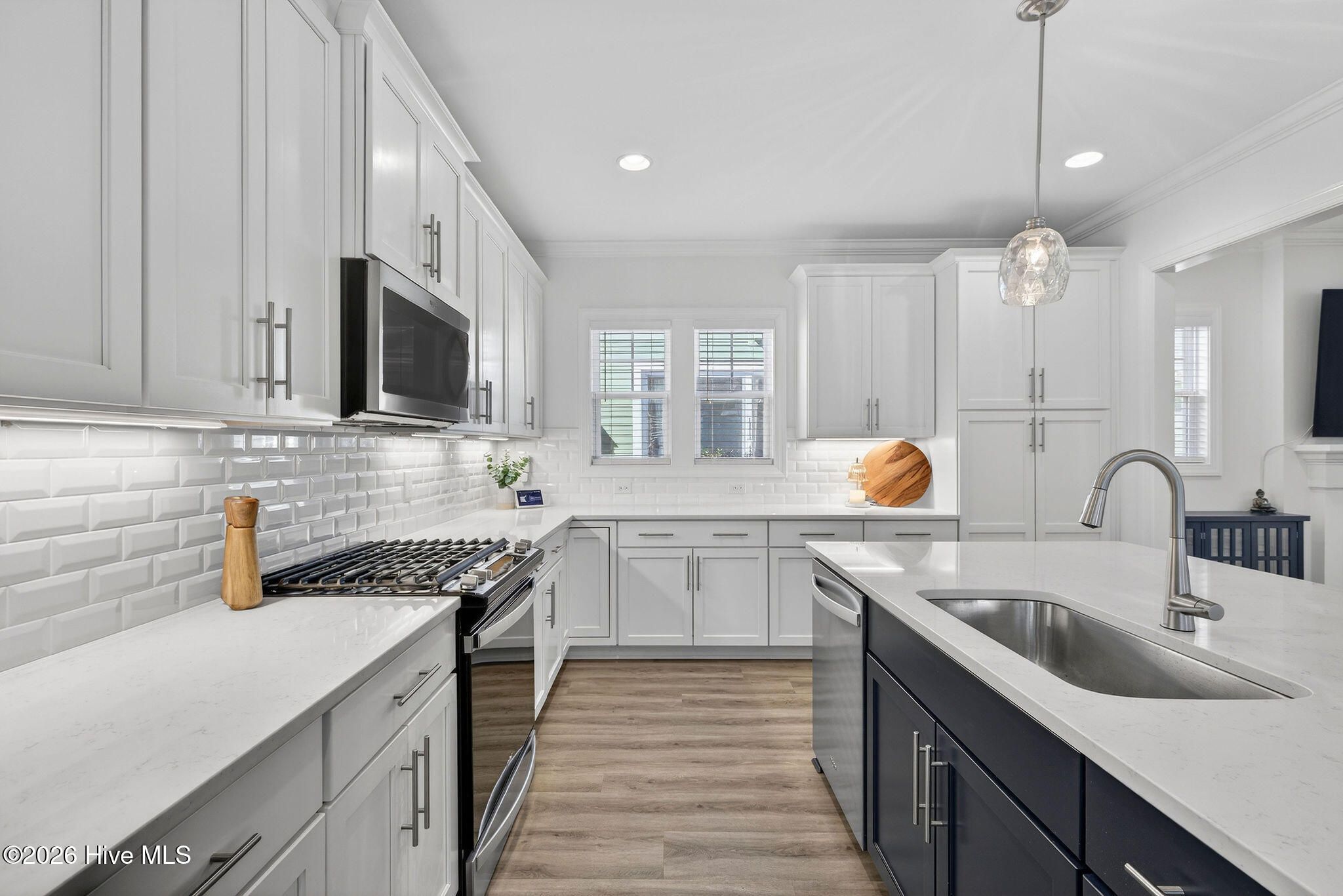 Welcome to 753 Edgerton Drive, where everyday living feels like a vacation. Tucked inside Wilmington's ever-popular Riverlights community, this 2022 beauty blends modern comfort with just the right amount of resort-style fun. With 3 bedrooms, 2.5 baths & a flexible loft, there's space for everything: home office, movie nights, homework hub, or your workout gear. The covered front porch sets the tone, leading into an expanded foyer & open layout with 9' ceilings, upgraded LVP flooring & a coffered dining room ceiling. The first-floor primary suite is your private retreat. A sunny bay window, cozy sitting area, spa-inspired bath with double vanity, garden tub & walk-in closet make it easy to start & end the day in style. The kitchen is ready for real life & entertaining alike, with an oversized island, quartz countertops, stainless appliances, gas cooktop & soft-close cabinets. The open living area flows seamlessly onto the screened porch, perfect for coffee at sunrise or cocktails at sunset. Upgrades you'll love: red oak stair treads, gas fireplace, ceiling fans throughout, whole-house water filtration & walk-in closets in every bedroom. A detached two-car garage with alley access. And then there's Riverlights, where lifestyle is the real luxury. Think scenic lake views, miles of trails, two resort-style pools, two fitness centers, pickle ball courts, playgrounds, a dog park, & Marina Village along the Cape Fear River, ideal for waterfront dining, live music & spectacular sunsets that take your breath away. Best of all? You're just 10-15 minutes from Carolina Beach or downtown Wilmington. Beach morning. River sunset. Dinner downtown. Home to comfort. 753 Edgerton Drive makes it all easy. Come see for yourself and schedule a showing today!