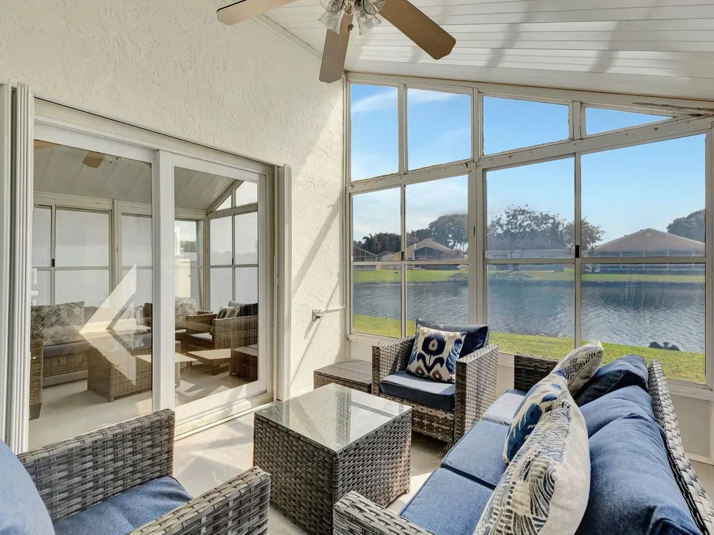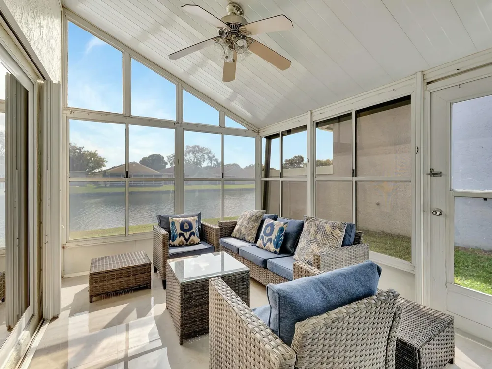Discover the perfect blend of charm and tranquility in this beautifully maintained lakefront home nestled in a desirable 55+ community with a low HOA! Wake up to breathtaking waterfront views and enjoy peaceful mornings from your screened-in patio overlooking the serene lake. Lovingly cared for by its owner, this home is a true gem, offering comfort, style, and an unbeatable location. Community amenities include a fitness center, shuffleboard, 2 pools, hot tubs, tennis court, pickleball courts, and more. Basic cable, high speed 300 megabyte internet, alarm monitoring, power washing and exterior painting, garbage collection, pest control, and lawn maintenance are included in the HOA fee.