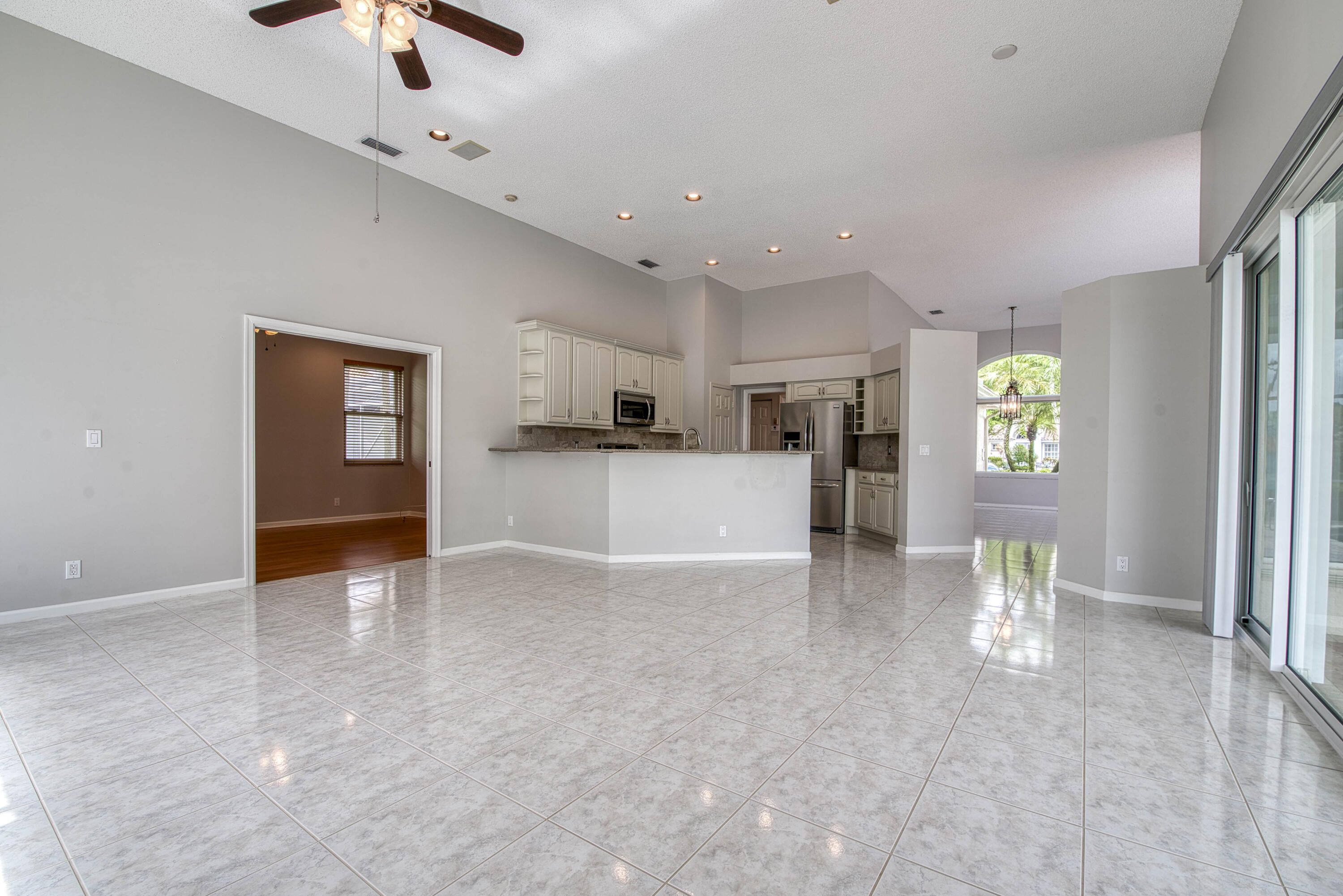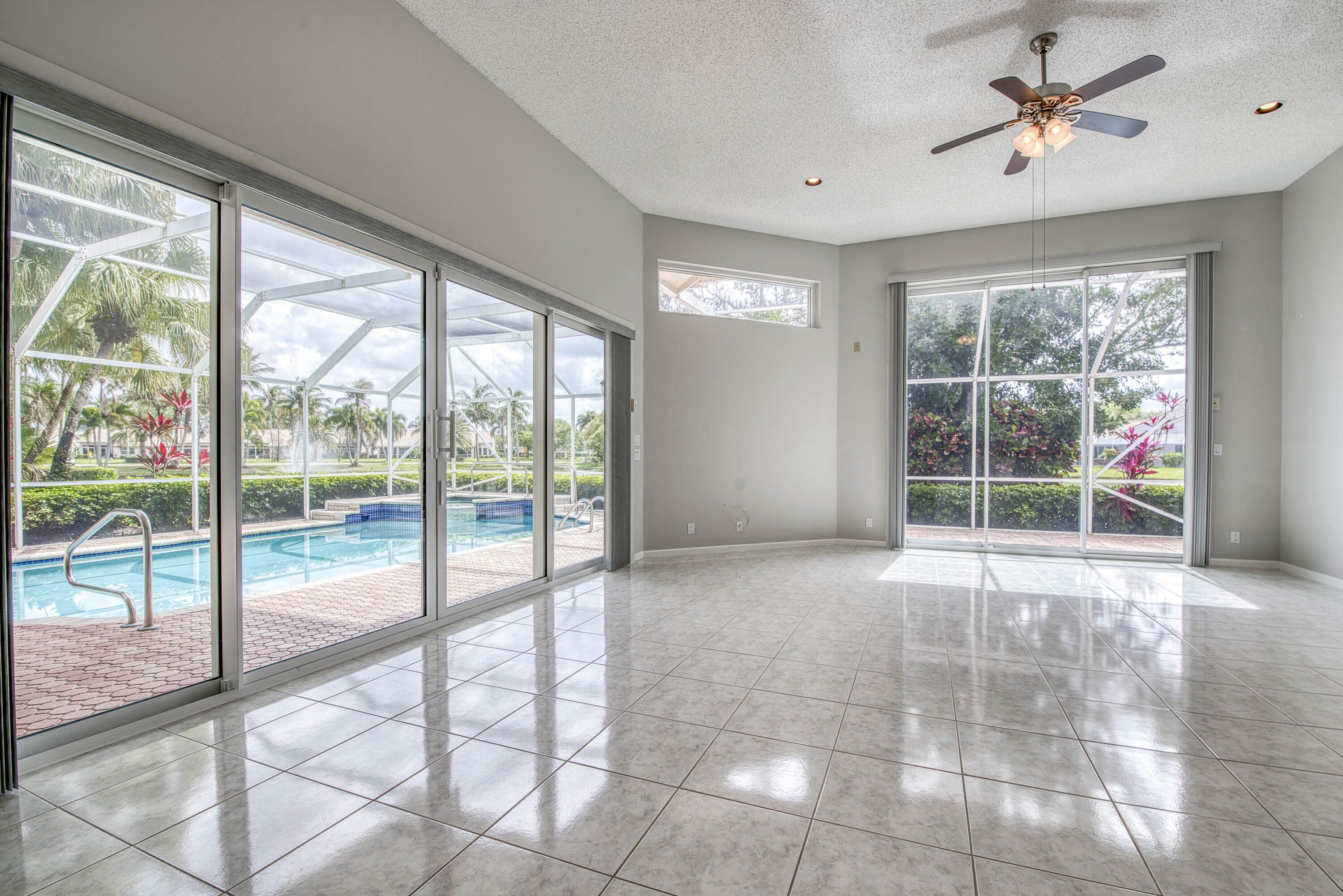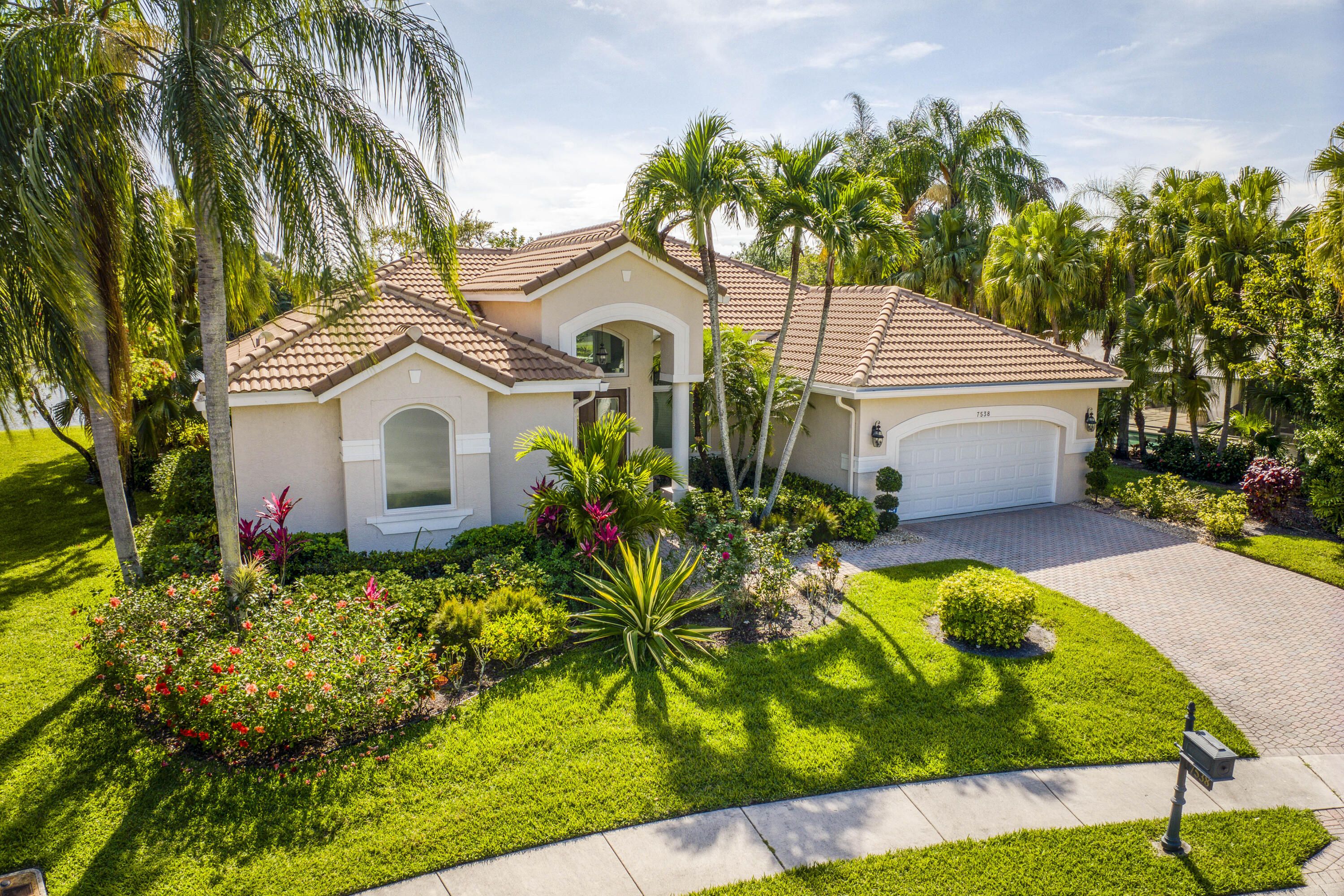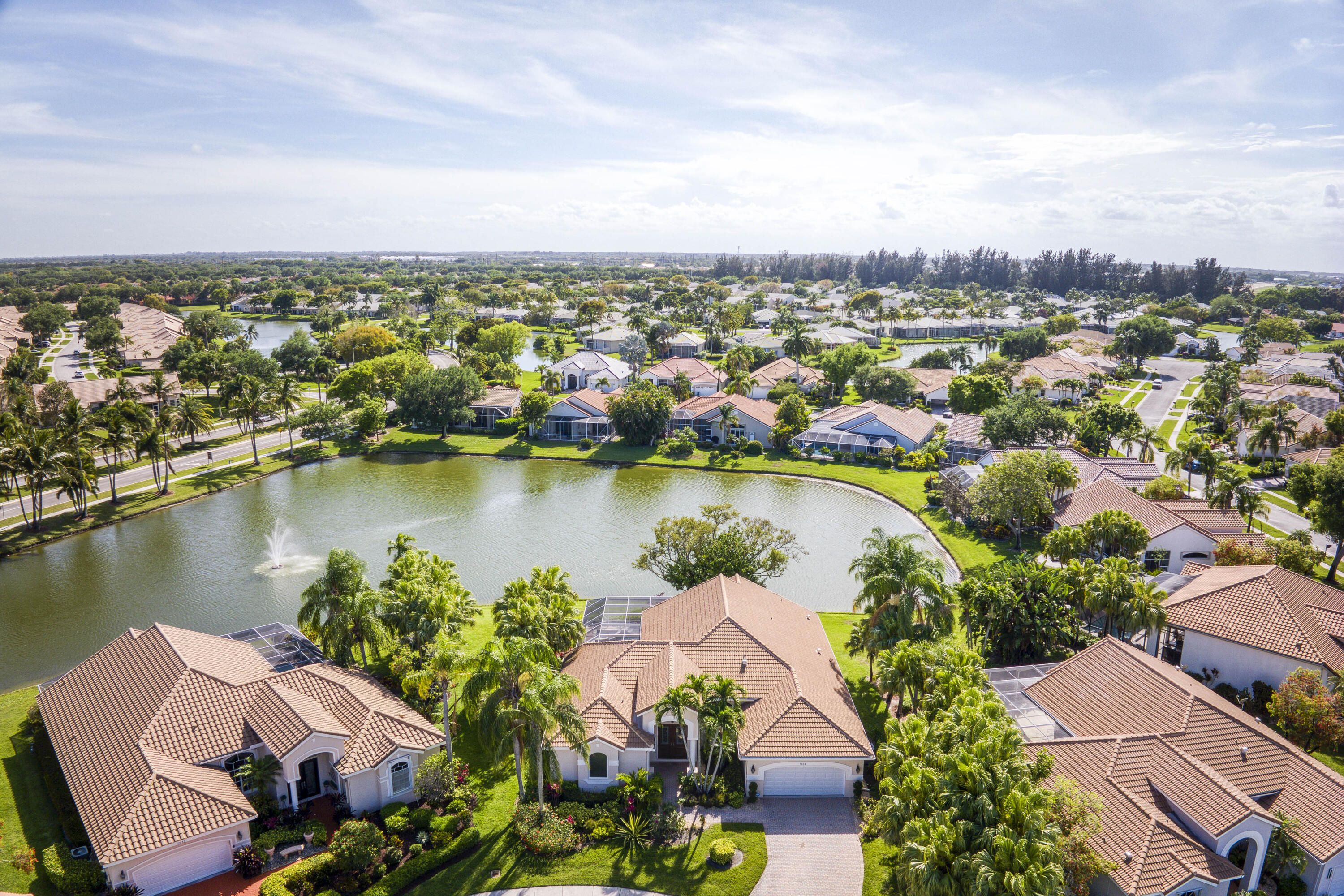 Serene lakefront living with a heated pool, spa, and tranquil fountain views from nearly every main living area define this beautifully updated home in gated Aberdeen Country Club. With the big-ticket items already completed — new impact windows and doors (2025), new roof (2021), and dual A/C systems (2022) — enjoy peace of mind and effortless living. The open floor plan is filled with natural light, featuring polished tile flooring, vaulted ceilings, and walls of impact glass that showcase the stunning water views. The spacious primary suite offers two custom walk-in closets and direct access to the pool & patio. The private backyard oasis features a heated pool and spa with paver deck overlook the peaceful lake and fountain. Plus a full laundry room, 2-car garage, and zoning for three A-rated schools. Located in Aberdeen Country Club, residents enjoy access to golf, tennis, fitness, and resort-style amenities, with HOA covering cable, lawn care, and security.