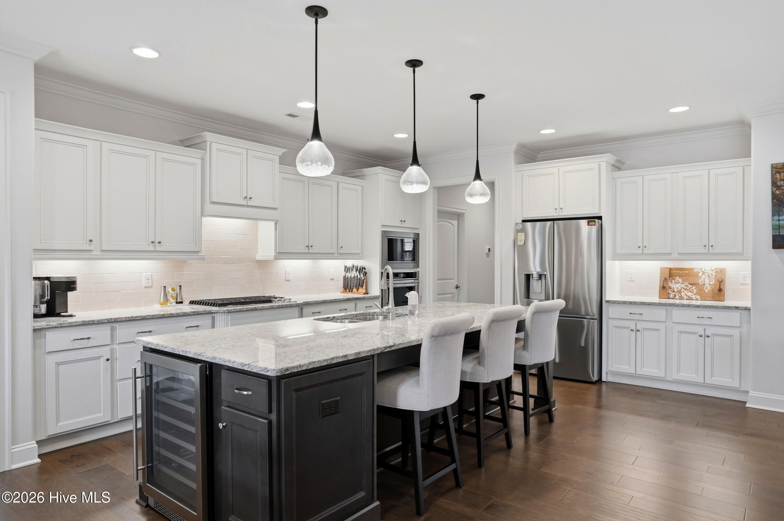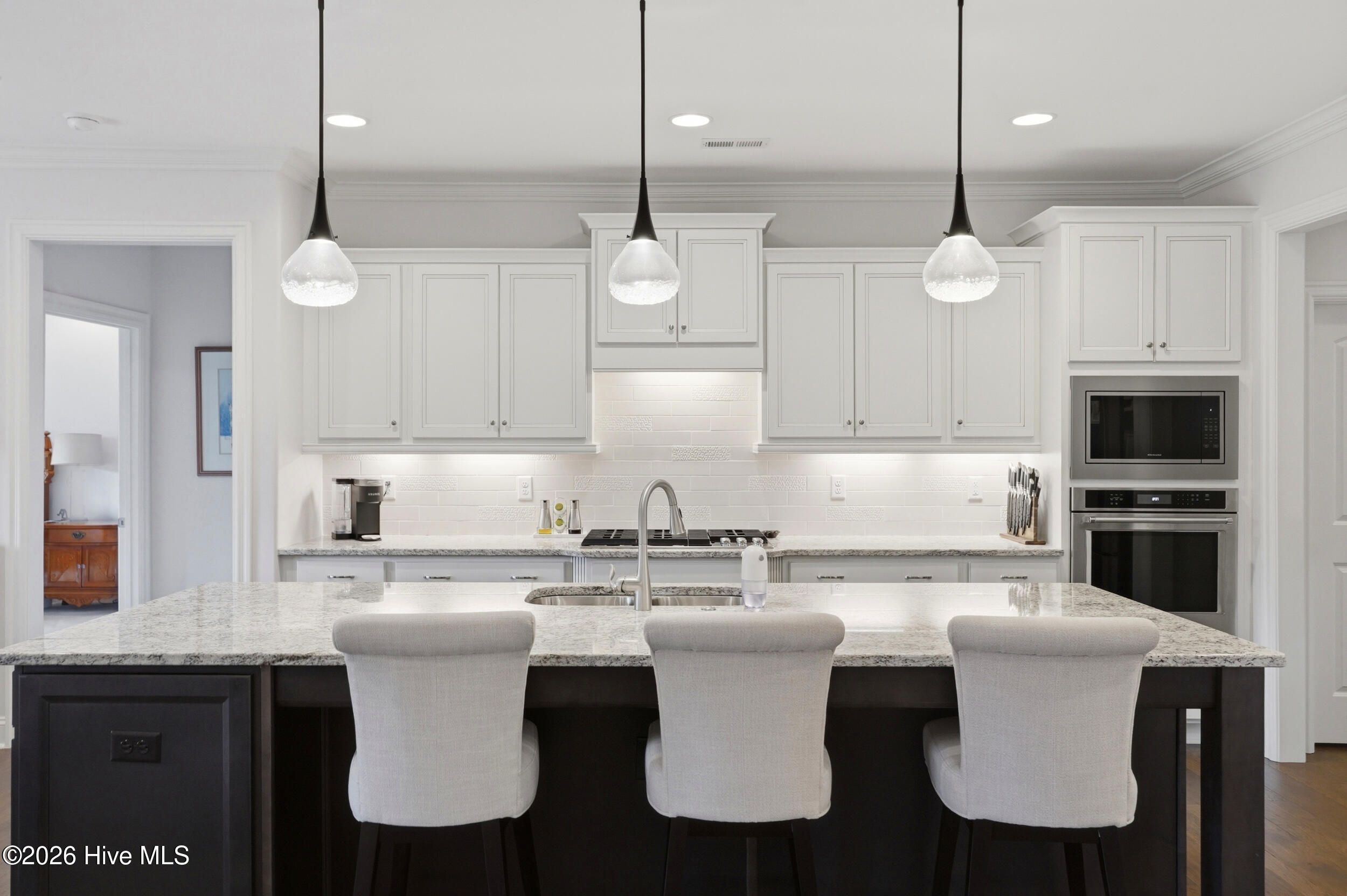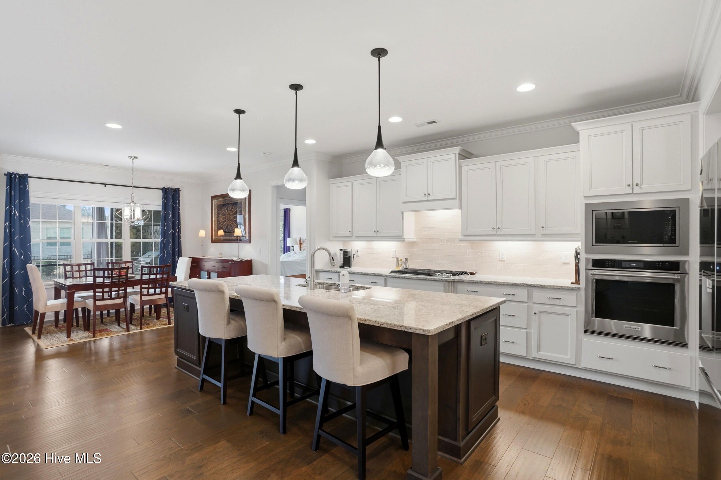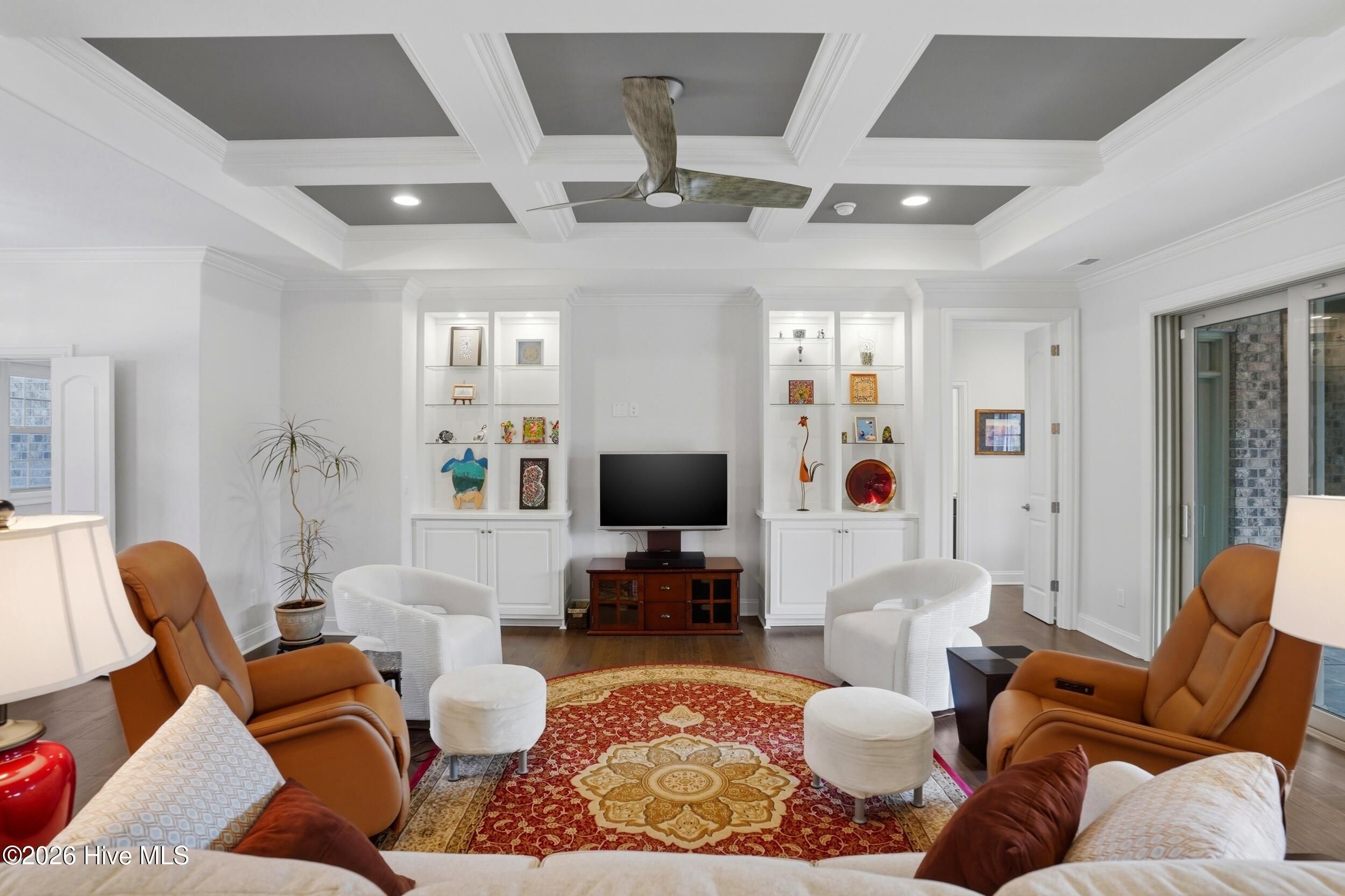 Welcome to this beautiful 2,483 sq ft home in the gated waterfront community of River Bluffs. Featuring the highly sought-after Pine Island floor plan, this thoughtfully designed home offers an open-concept layout ideal for both everyday living and entertaining. The spacious living area is highlighted by elegant coffered ceilings, abundant natural light, and seamless flow into the well-appointed kitchen complete with ample cabinetry and a large center island. Step outside to relax on the screened porch overlooking the beautifully landscaped yard--perfect for enjoying peaceful coastal evenings. This home also features a rare 3-car garage, offering plenty of space for vehicles, storage, or hobbies. Residents of River Bluffs enjoy exceptional resort-style and water-oriented amenities, including a marina, boat dock, and access to a scenic waterfront community. Additional neighborhood amenities include a clubhouse, community pool, community garden, dog park, fitness center, and miles of scenic walking and jogging trails. Ideally located just minutes from Wilmington's shopping, dining, and coastal attractions, this home offers the perfect blend of luxury, comfort, and coastal lifestyle living.