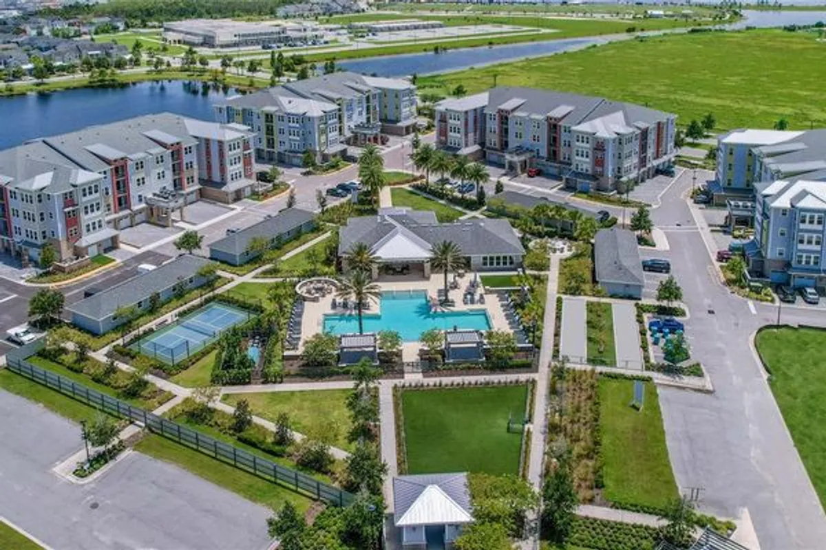 Welcome to the Dogwood, a charming condo located in the vibrant 55+ community Gatherings of Lake Nona in Orlando built by Beazer Homes. This beautifully maintained residence features 3 bedrooms and 2 baths, offering a perfect blend of comfort and convenience. With 1,805 sq ft of living space, the open-concept layout includes a bright and airy living room, a modern kitchen with white quartz, and a dining area ideal for both casual meals and entertaining. The primary suite is a serene retreat, complete with tray ceilings and a luxurious en-suite bathroom. Additional bedrooms are spacious and versatile, perfect for guests or a home office. Step outside to enjoy the resort style amenities, providing a wonderful space for relaxation and outdoor activities. Additional highlights include balcony and a 1-car Garage. Residents of the Gatherings community enjoy access to a range of amenities designed for active adults, including Pickleball, fitness center and resident lounge area. The home is conveniently located near Boxi Park, making it an excellent choice for those seeking a vibrant and engaging lifestyle. Beazer Homes is proud to be America’s #1 Energy-Efficient homebuilder. In 2024, our homes achieved an average net HERS® score of 37 (including solar) and a gross HERS® score of 42—the lowest publicly reported scores among the top 30 U.S. homebuilders identified by Builder Magazine’s Top 100 list (ranked by 2024 closings).Take advantage of our special buyer incentives which may include closing costs, design studio upgrades, FLEX dollars, and more.