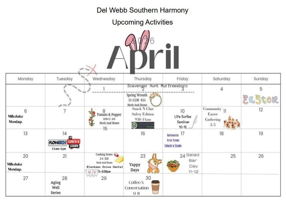 - See Del Webb Southern Harmony clubs, activities, and classes