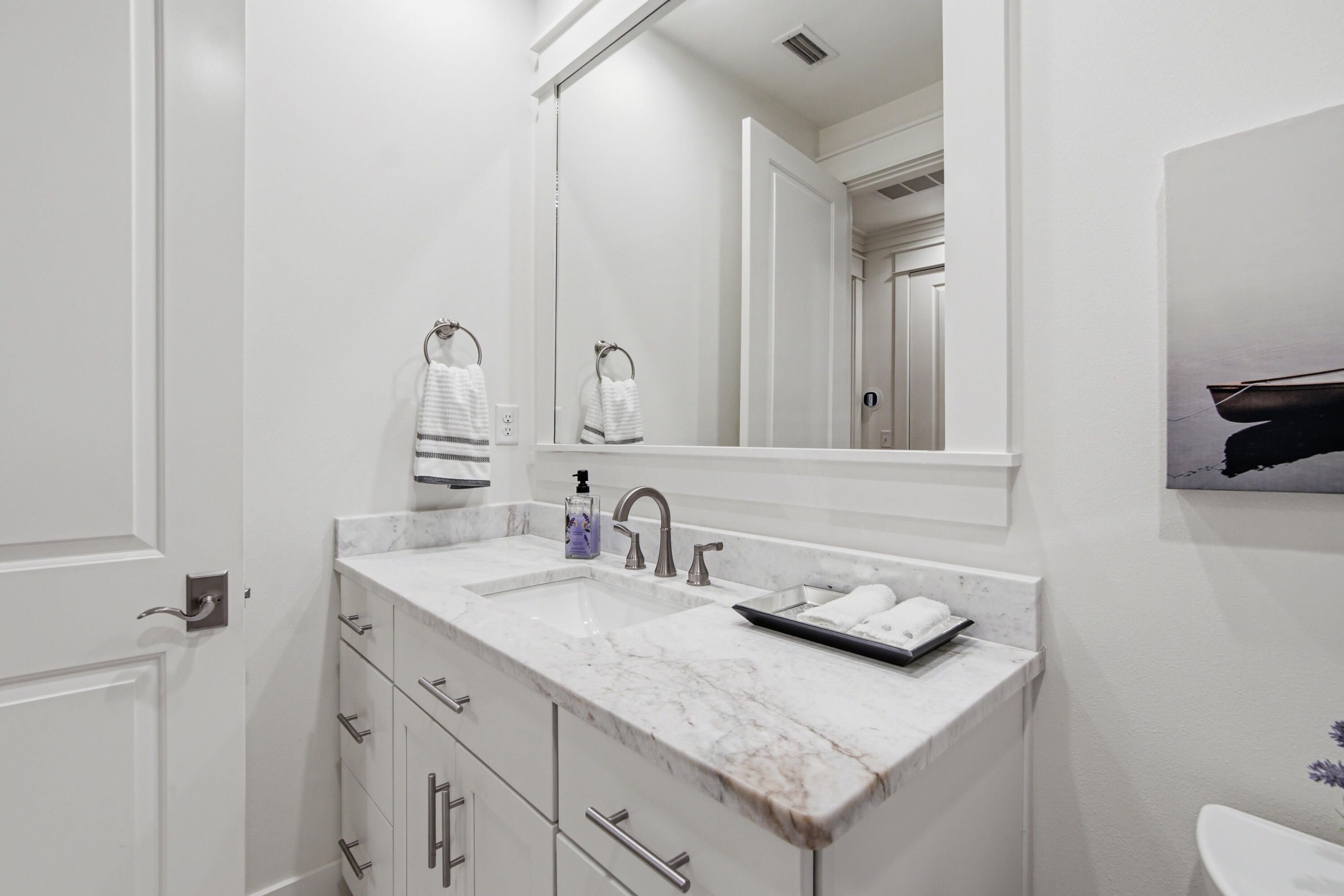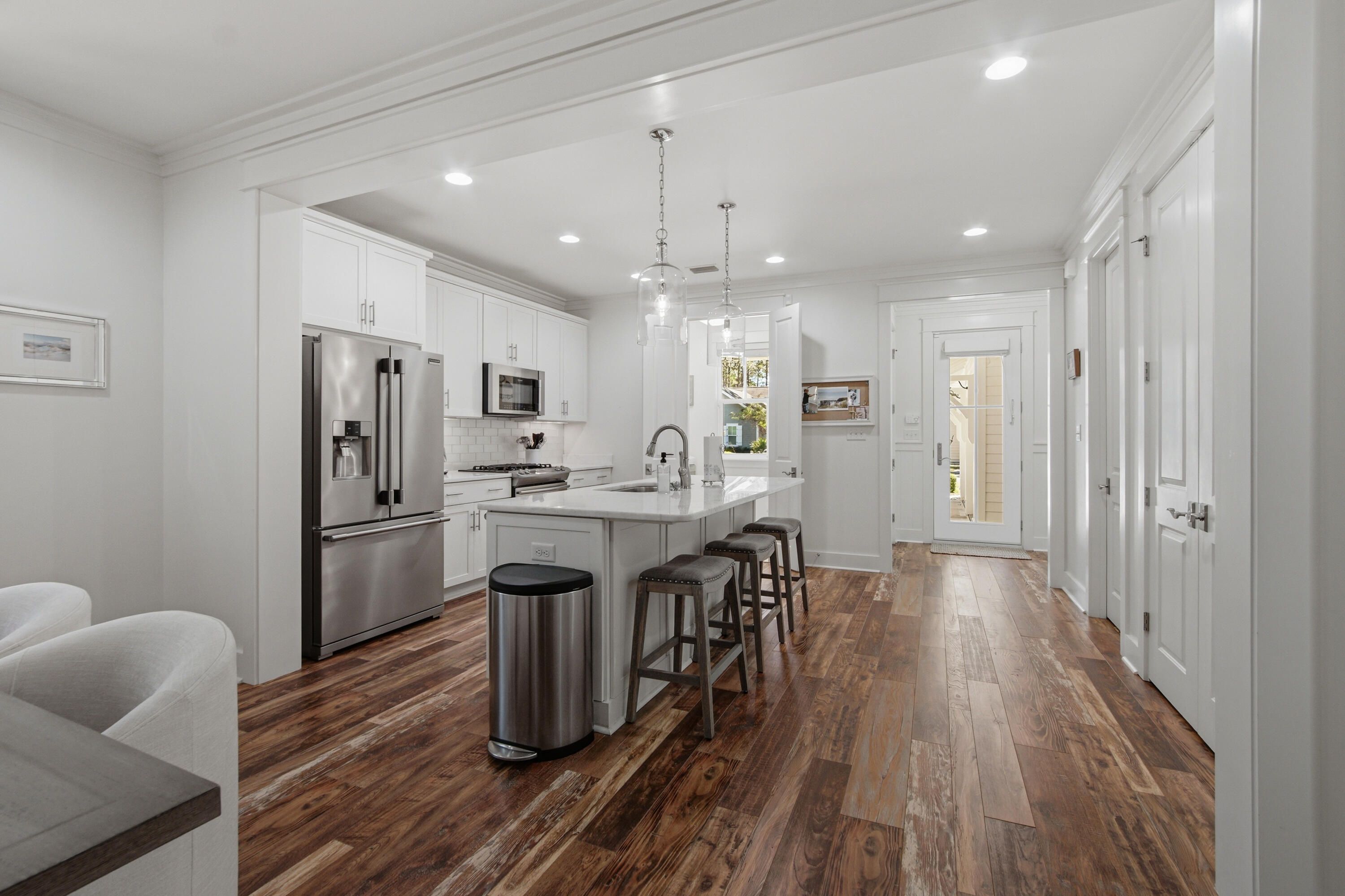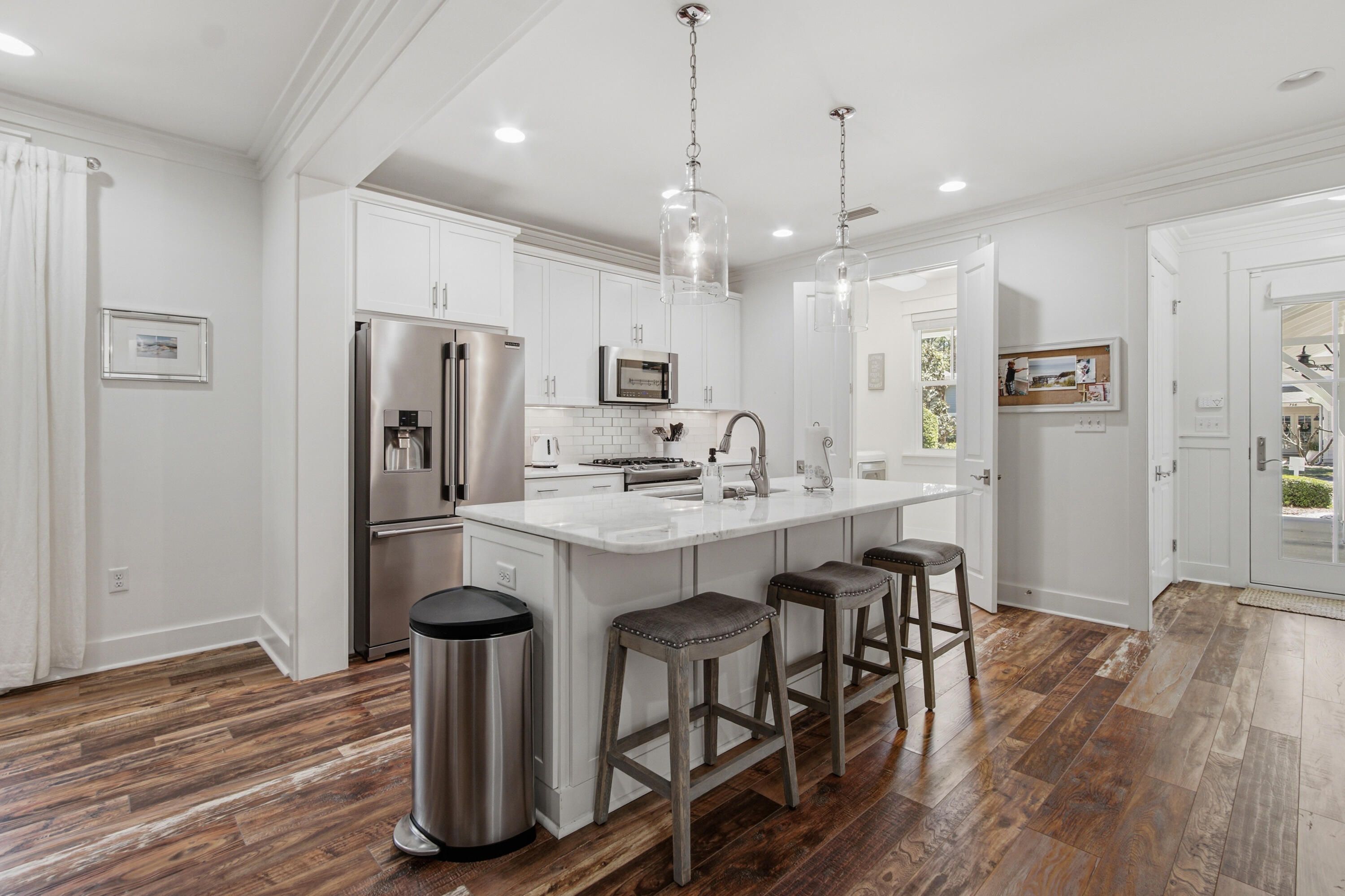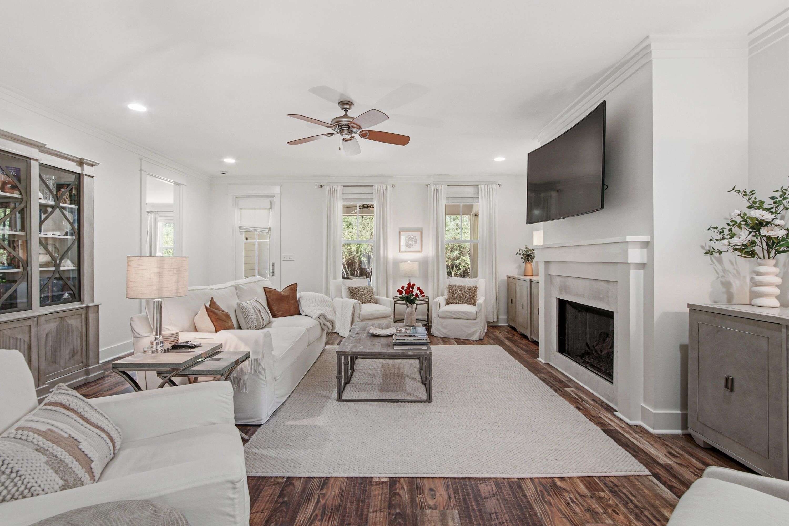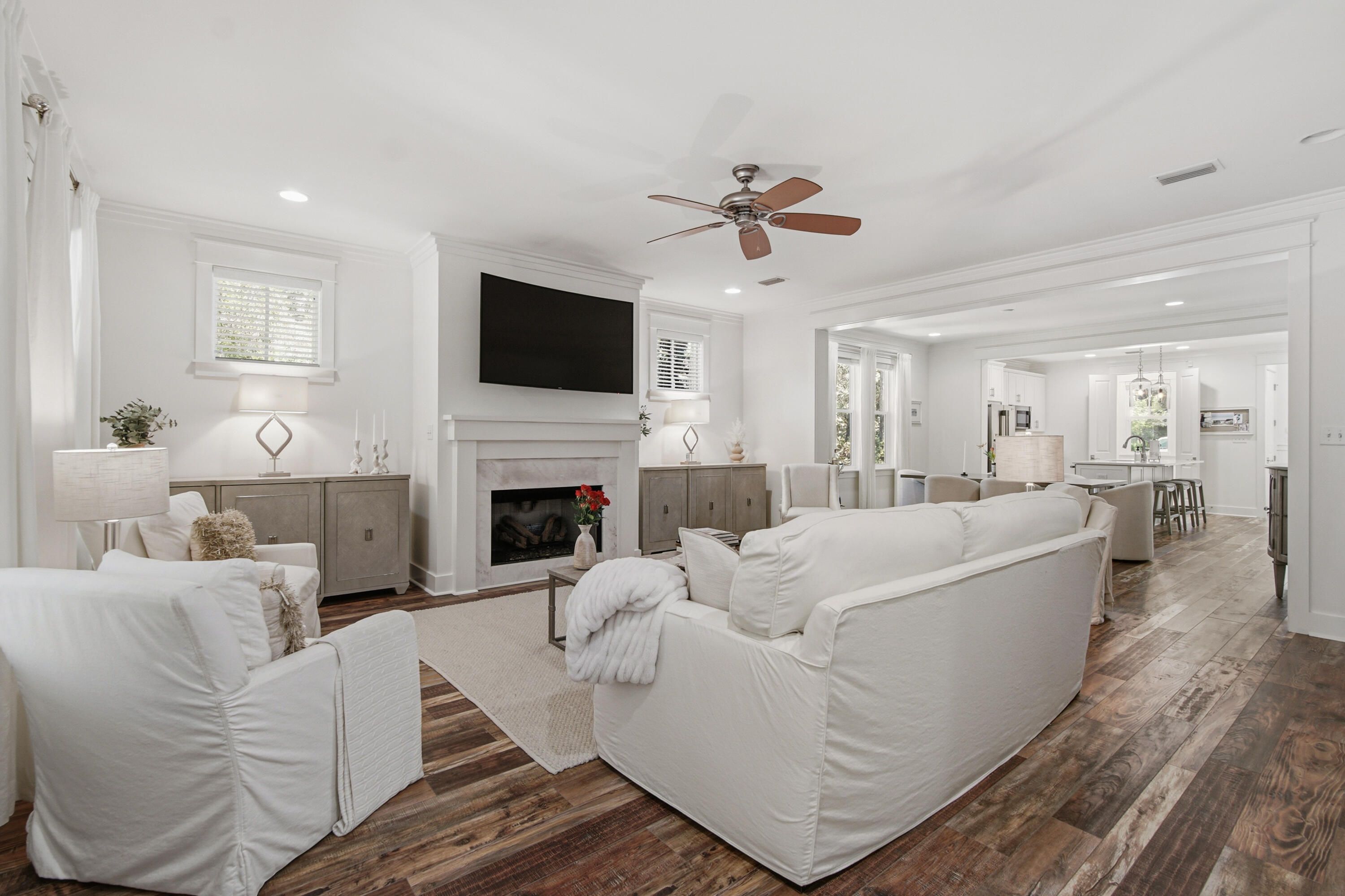 Charming Single Story Home Backing to Conservation Area - Mostly furnished & Move In ready Come see this beautifully maintained single story 3 bedroom 3 bath Bellis plan offering 2,222 sq. ft. of refined living in the sought after front section of Watersound Origins.Set on a premium lot backing to a serene, wooded conservation area, this home delivers privacy, tranquility, and the perfect backdrop for indoor outdoor living.With ample space to add a pool, the property is ideal for those seeking both comfort and future flexibility.Step inside to discover a thoughtfully designed open layout enhanced by hardwood floors throughout marble in all bathrooms, and an abundance of natural light.The living room features a striking fireplace with marble surround, creating a warm and inviting focal poin The kitchen is appointed with marble countertops, under cabinet lighting, an extended island, a large walk in pantry, and an additional multi shelved double door storage closet--perfect for the home chef or entertainer. All three bedrooms are generously sized, and each bathroom is finished with the same elegant marble surfaces found throughout the home. The laundry room includes built in cabinetry along with an LG washer and dryer for added convenience. Enjoy peaceful mornings and relaxing evenings on the screened porch and a gas firepit in the backyard adds yet another inviting space for gathering and entertaining. And there is a gas connection and cement pad ready for an outdoor grill. The 2½ car side entry garage offers exceptional functionality with an epoxy floor, utility sink, and plenty of room for storage, a workshop area or a golf cart. Additional upgrades include an entire house water filtration system, electronic dust filter, and a new air conditioner/heater, ensuring comfort and efficiency year round. This home is being offered mostly furnished with a few exceptions and truly move in ready. A rare combination of thoughtful design, premium finishes, and a coveted conservation backed lot--this property is an exceptional opportunity in Origins. The Watersound Origins lifestyle is hard to beat. Enjoy the Davis Love III designed golf course and golf is included in HOA. It's just a short walk from this home to the Watersound Origins Golf Course, resort style pool, fitness center, tennis, pickleball courts, and playground. There are miles of nature trails, and dock access to Lake Powell, the largest of Florida's rare coastal dune lakes where you can launch your canoe, kayak or paddle board. The beach is just five minutes away. The Watersound Town Center features a Publix Grocery Store and numerous shops and restaurants, along with Scenic Highway 30A, put world class dining within easy reach. Wonderful neighbors and a short-term rental restricted community create the neighborhood feel that makes this place so special.