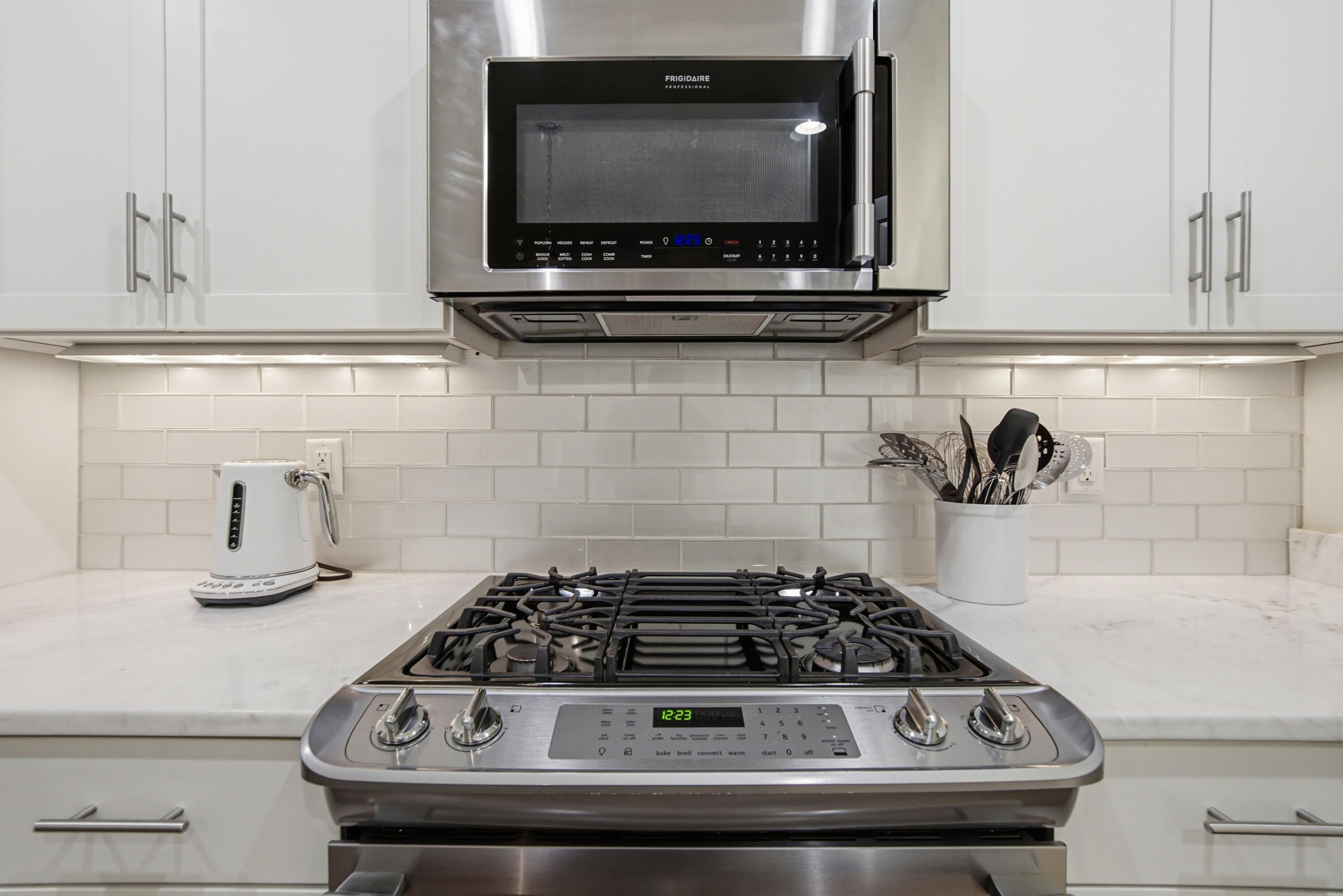 - Dishwasher, Disposal, Dryer, Microwave, Refrigerator, Washer, Tankless Water Heater, Electric Garage Door, Self Cleaning Oven, Ice Maker, Smoke Detector, Gas Oven