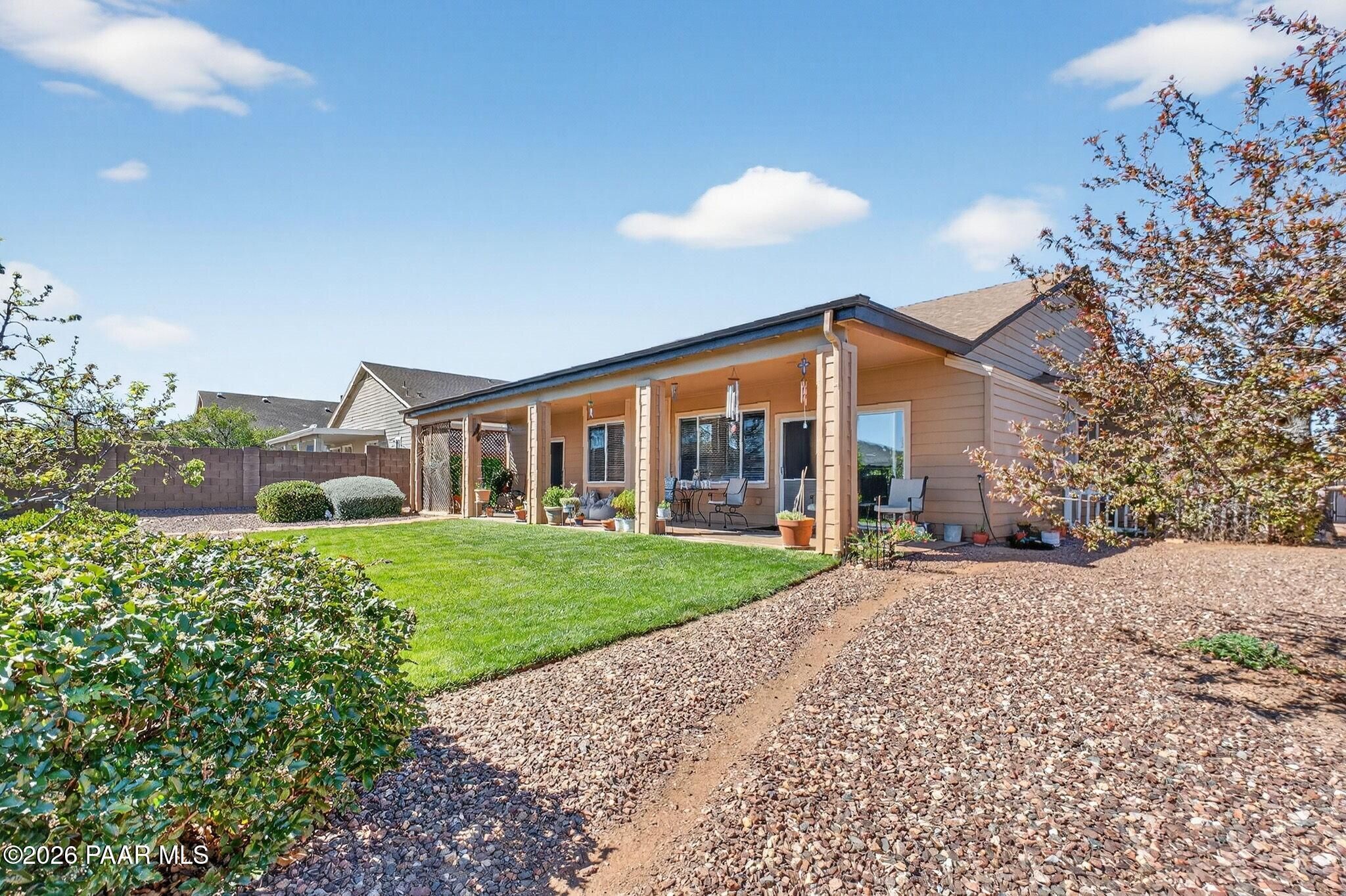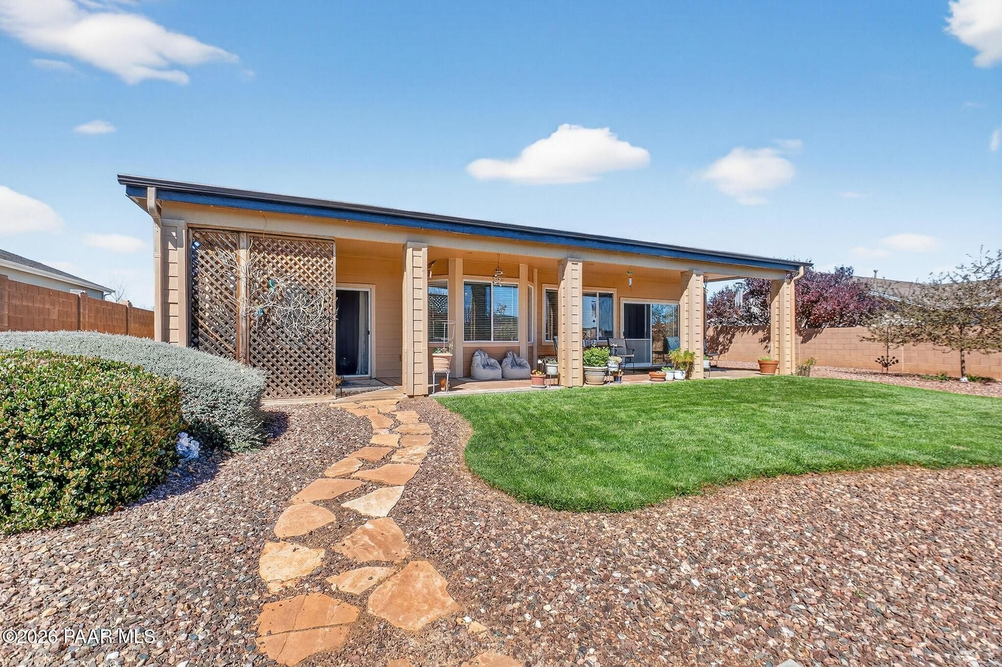 Welcome to 7551 E Clear Sky Trail in Prescott Valley, Arizona, a beautifully maintained home offering modern comfort, functional design, and scenic high-desert living in one of the area's most desirable neighborhoods. Ideally located near shopping, dining, parks, and schools, this property is perfect for buyers searching for Prescott Valley homes for sale with space, style, and convenience.From the moment you arrive, you'll appreciate the home's inviting curb appeal, spacious driveway, and well-kept landscaping. Inside, the open-concept layout features a bright and airy living room with large windows, abundant natural light, and seamless indoor-outdoor flow.The kitchen is designed for both everyday living and entertaining, featuring ample cabinetry, generous counter space, and stainless steel appliances, all complemented by high ceilings and an open feel. A dedicated dining area provides the perfect setting for gatherings and special occasions.The spacious primary suite offers comfort and privacy, while additional bedrooms provide flexibility for guests, a home office, or growing households.Step outside to your private backyard retreat, complete with a covered patio ideal for year-round outdoor living, entertaining, or simply enjoying Arizona's beautiful weather. The landscaped yard offers both usability and low maintenance, making it perfect for relaxing evenings or weekend gatherings.Key Features include Prime Prescott Valley location near amenities and parks, Newer Roof in last 5 years, Open-concept floor plan with abundant natural light, Spacious kitchen with stainless steel appliances, Dedicated dining area for entertaining, Private primary suite with generous space, Covered patio for outdoor living and entertaining, Low-maintenance landscaped yard, Ideal for full-time living, second home, or investment.This home is a standout opportunity for buyers seeking a move-in ready home in Prescott Valley AZ, combining comfort, functionality, and the relaxed lifestyle Northern Arizona is known for.