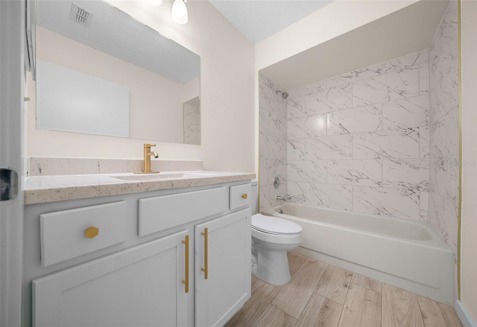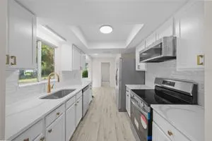 Welcome to this charming, newly renovated home in Palm Cay! Nestled at the back of the neighborhood, this 2 bedroom 2 full bath home provides comfort and style with its cool color scheme! Create culinary masterpieces in the stylish kitchen with quartz countertops and subway tile backsplash, and brand new stainless steel appliances! Take your meals in the cozy nook in the kitchen looking out the bay windows or the open plan dining room! Relax in the enclosed sunroom with a peaceful view. Primary bedroom has large walk in closet and attached en suite with new walk in shower! True split plan with guest bedroom and bath on other side of house separated by large living room with lots of natural light! Roof replaced Dec 2024, HVAC Jan 2025, new flooring Jan 2025, new counters, cabinets and appliances, fresh paint Jan 2025. This is such a pretty home, don't hesitate to schedule your showing!
