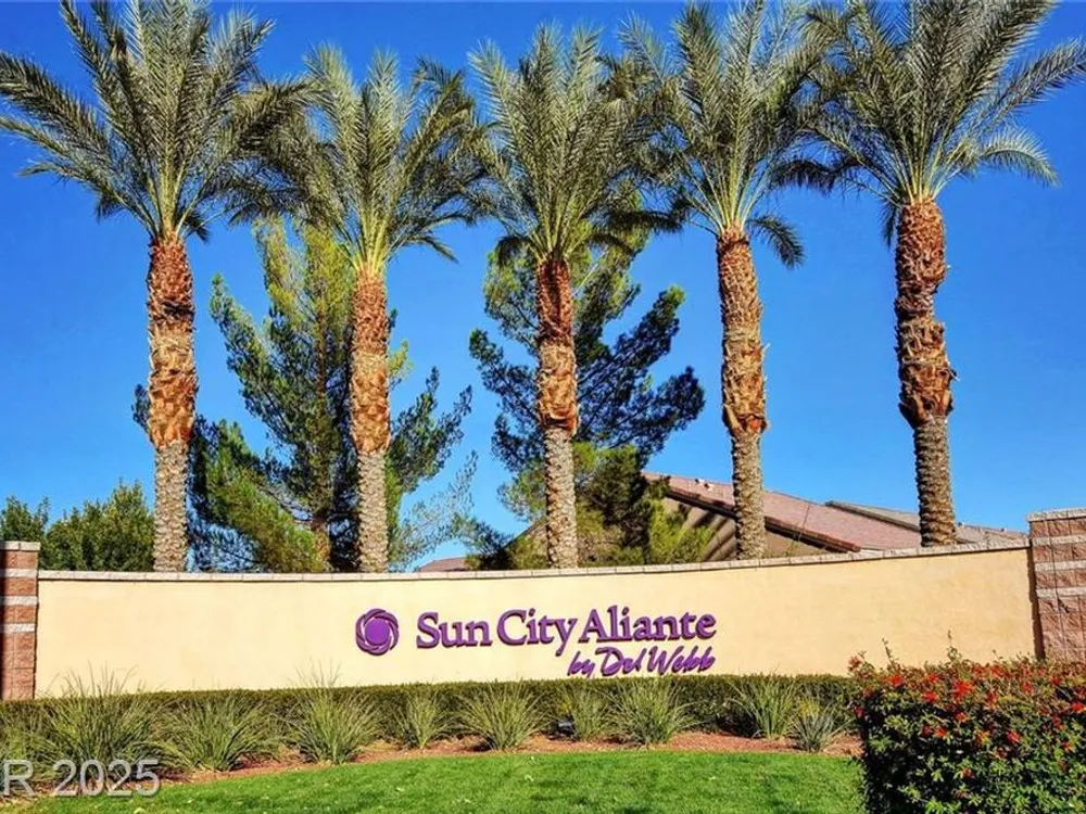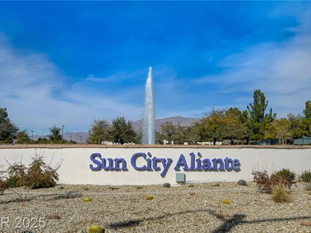 Situated w/in the esteemed 55+ community of Sun City Aliante, this well maintained 3-bedroom residence presents an exceptional opportunity for individuals seeking both an active & tranquil lifestyle. Positioned on a premium corner lot, the property provides enhanced privacy with a block wall & benefits from abundant natural light through four solar tubes brightening the interior spaces. The open concept layout efficiently integrates the living, dining, & kitchen areas, offering an optimal setting for entertaining guests or relaxing in comfort. Each bedroom is suitably sized to accommodate visitors or personal interests, while the primary suite features a private bath & a spacious closet. Community residents have access to extensive amenities including a golf course, recreation center, pool, spa, & diverse social clubs, all contributing to a vibrant & fulfilling retirement environment. This home delivers a compelling option for those pursuing a refined & rewarding retirement experience.