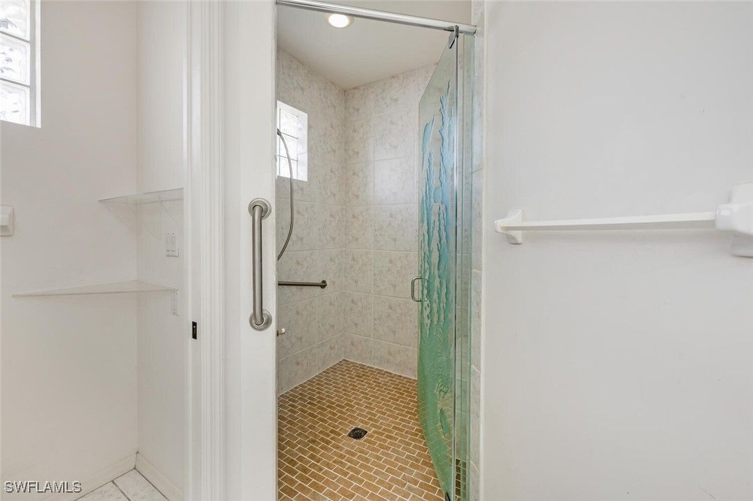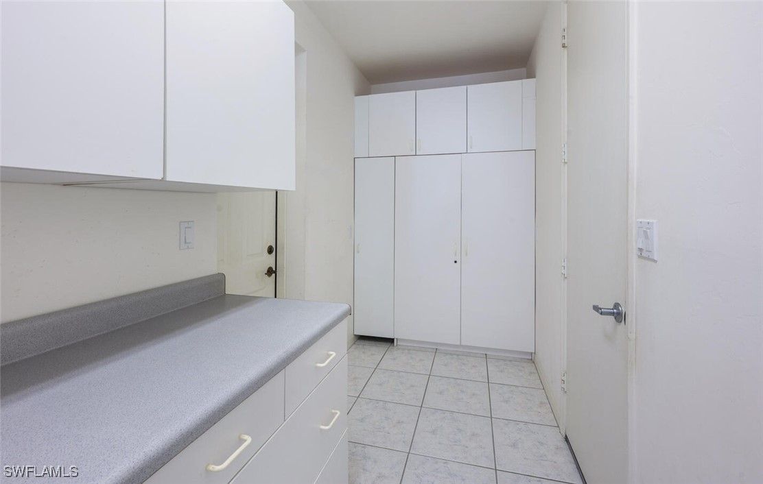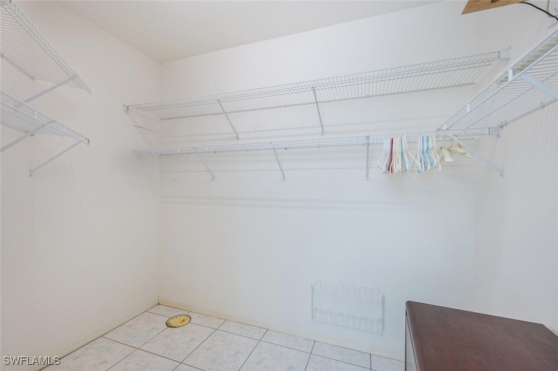 In addition to the 1,630 s/f under air, this attractive 2BR/2BA home has a 296 s/f Florida room and a 216 s/f hobby room. With ten-foot-high tray ceilings, tall doorways, and an open floor plan, the home feels extremely spacious inside. Light from the lanai spills through the oversized sliding glass doors and keeps the main living area well-lit throughout the day. There is tile flooring throughout with pastel inflections. The Master BA features dual sinks, a long vanity, and a walk-in shower with ornate glass work. The walk-in closet in the Master BR is designed to accommodate a sizable wardrobe. The back windows have electric shutters and the front windows are impact resistant. The appliances in the kitchen are stainless steel. The large back patio is perfect for grilling and the stylish front patio features custom tile work. Along with the two-car garage, the home has a horseshoe-shaped driveway with parking space for multiple vehicles. There's a well for lawn watering and a fenced exterior space for additional storage (kayaks, gardening tools, etc.). Riviera Golf Estates is a 55+ community conveniently located a short drive from downtown Naples. The community has one of the lowest HOA fees in Naples: only $144/mo. (includes internet). There are excellent community amenities, including a large heated saltwater pool with lap lanes, tennis/pickleball courts, bocce/shuffleboard courts, exercise room, billiards room, and a large clubhouse with an active social calendar. The same family that built the home in 1997 has resided there until now. This is a special property!