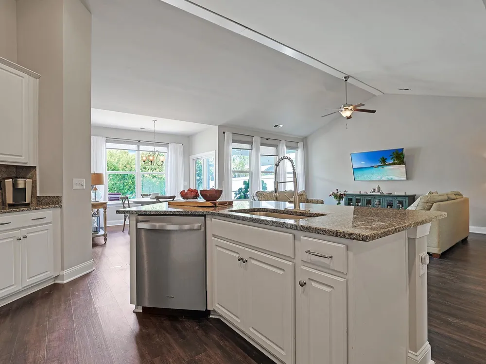 Introducing this graceful 4 bedroom 3 bath home situated in the very popular Park Place at the Market Commons community. This exquisite home has wood looking LVP & tile flooring, a fresh coat of paint, smooth flat ceilings, an inviting foyer with boxed wainscoting, an open & spacious living room with a vaulted ceiling along with an abundance of natural lighting, and a formal dining area that showcases a sliding glass door that opens up to the relaxing screened-in back porch. The family friendly kitchen is equipped with a stainless steel appliance package, cabinets topped with crown moulding, granite counter tops, a breakfast bar, tile back splash, recessed lighting, and a practical kitchen pantry. The primary bedroom features a single step tray ceiling with internal crown moulding, a ceiling fan, private access to the primary bath that offers a vanity with dual sinks, water closet, a large walk-in closet, and a deluxe walk-in shower. This stylish home includes two additional first floor bedroom rooms, full guest bath, laundry room with washer & dryer, an upstairs versatile fourth bedroom with a full bath, a fenced in back yard, a delightful uncovered back patio with a memorable fire pit, and a two car attached garage. This home affords you easy access to the beach and golfing along with all of the other activities and happenings in Myrtle Beach including fun eateries, award winning off-Broadway shows, public fishing piers, and intriguing shopping adventures along the Grand Strand. Conveniently located to your everyday needs, including grocery stores, banks, post offices, medical centers, doctors’ offices, and pharmacies. Check out our state of the art 3-D Virtual Tour.