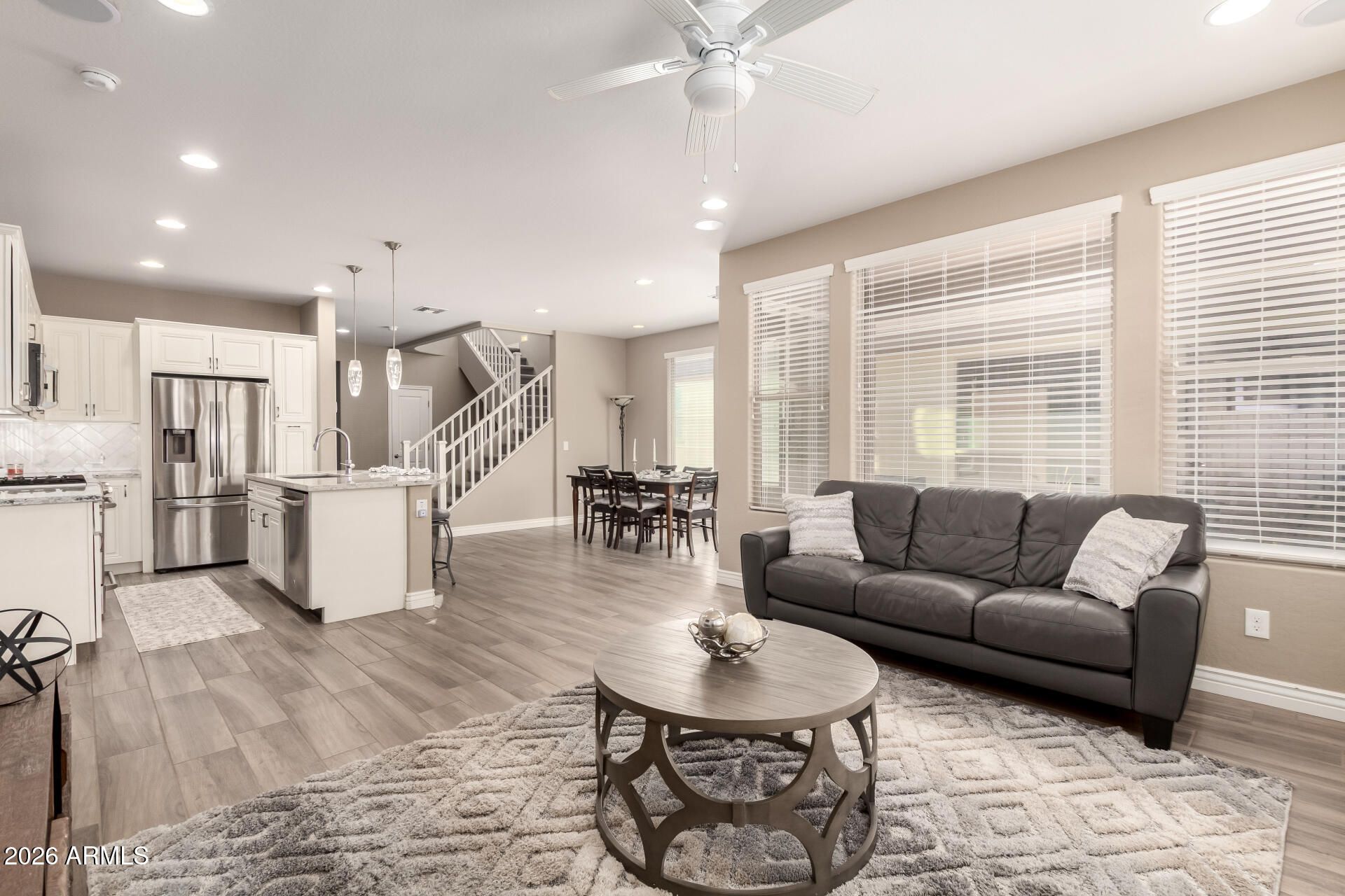 The moment you enter the prestigious Encanterra community, you'll feel right at home. This stunning residence features 3 BD 3 full BA, Den and a spacious loft, with the primary suite located on the main level. The kitchen is a true chef's dream, high-end granite countertops, upgraded backsplash, stainless steel appliances, gas cooktop, and a large center island perfect for everyday living and entertaining. The open-concept design flows seamlessly into the great room, creating an ideal space for gatherings. Step outside to a charming patio with a cozy fire pit, The exterior painted in Fall 2025, BE impressed this home perfectly blends comfort, style, and the exceptional lifestyle Encanterra is known for, all while being conveniently located next to a scenic walking path.