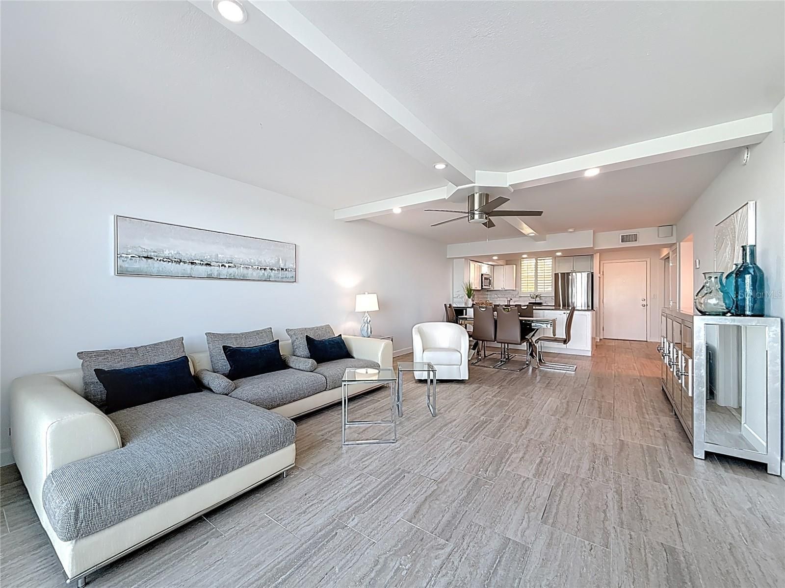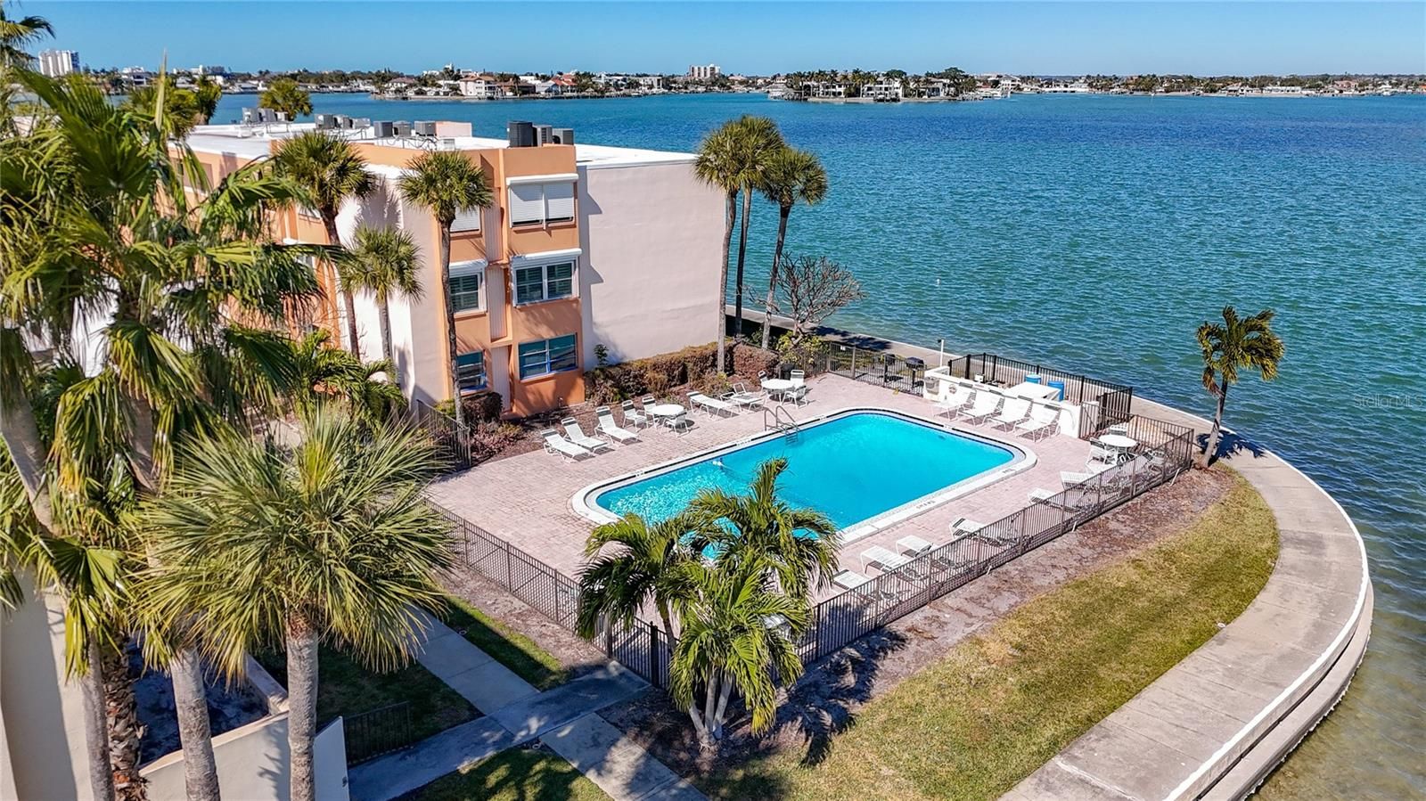 Welcome to coastal living at its finest in one of South Pasadena’s most sought after 55+ waterfront communities. This beautifully remodeled first floor condo offers an exceptional combination of thoughtful design, quality upgrades, and breathtaking full water views that can be enjoyed from both the main living areas and your private patio. Completely renovated less than four years ago, the residence was reimagined to enhance both functionality and lifestyle. The living area was expanded and opened to the kitchen, creating a seamless, light filled space designed to capture the stunning waterfront backdrop. A custom decorative ceiling feature with integrated lighting adds architectural interest and a warm, inviting ambiance that sets this home apart. The kitchen showcases timeless soft close white cabinetry paired with one of a kind granite countertop that bring both elegance and individuality to the space. Brand new stainless steel appliances complement the design while providing modern convenience for everyday living and entertaining. Plank porcelain tile flooring runs throughout the residence, offering durability, easy maintenance, and a distinctive design element that ties the home together beautifully. Both bathrooms have been thoughtfully updated, including a highly desirable walk in bathtub in the guest bath that adds comfort, accessibility, and convenience for residents and visitors alike. Spacious bedrooms, generous storage, and a well-designed layout provide a comfortable and functional living environment suited for both seasonal and year round enjoyment. During the 2024 hurricane season, this residence experienced only minimal water intrusion, in part due to the installation of hurricane-rated pocket patio doors. Out of an abundance of caution and with a proactive approach to building integrity, the community management and their insurance carrier completed comprehensive remediation due to neighboring units that had flooding. Interior walls, lower cabinetry, and select components were removed to ensure there was no hidden intrusion within shared walls or structural areas. As a result, the home now benefits from a new HVAC system, new water heater, and refreshed interior elements, providing peace of mind and long-term value for the next owner. The first-floor location offers effortless access with your covered parking space only steps from your front door, new patio doors open directly to tranquil water views, allowing you to step outside and enjoy peaceful mornings, coastal breezes, and spectacular sunsets from your private patio. Residents of this vibrant waterfront community enjoy lush tropical landscaping and an amenity-rich lifestyle with multiple pools, tennis and pickleball courts, fitness facilities, a clubhouse, and a full calendar of social activities. Ideally positioned near beaches, dining, shopping, and all that the Gulf Coast lifestyle has to offer, this exceptional waterfront residence delivers comfort, quality, and scenic beauty in one of the area’s most welcoming and well-maintained communities.