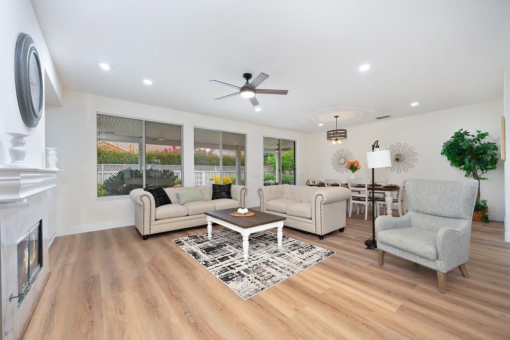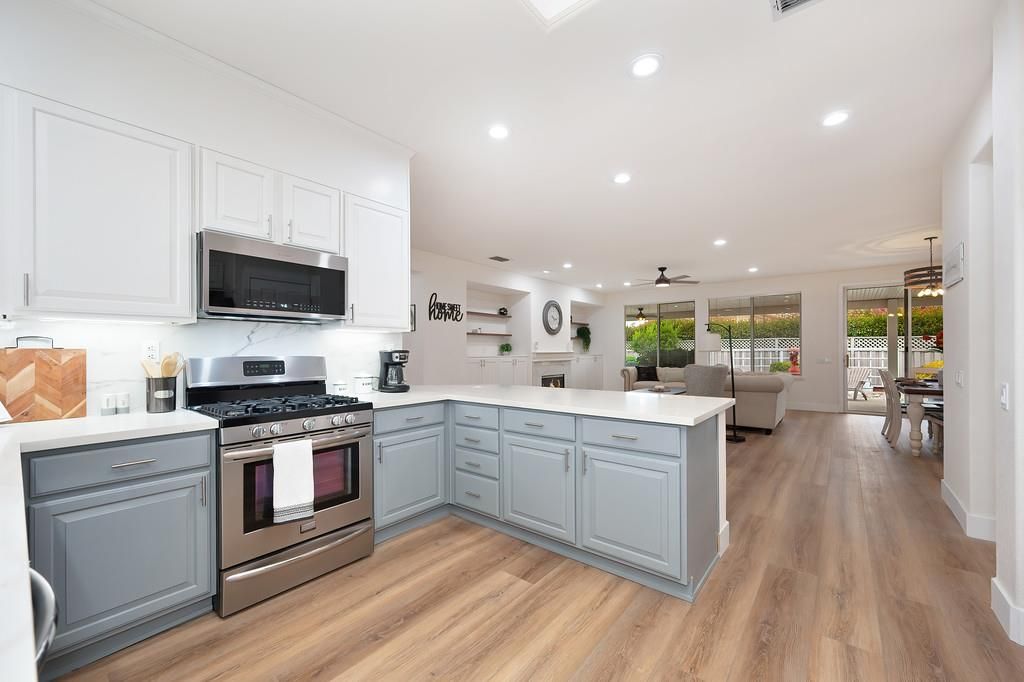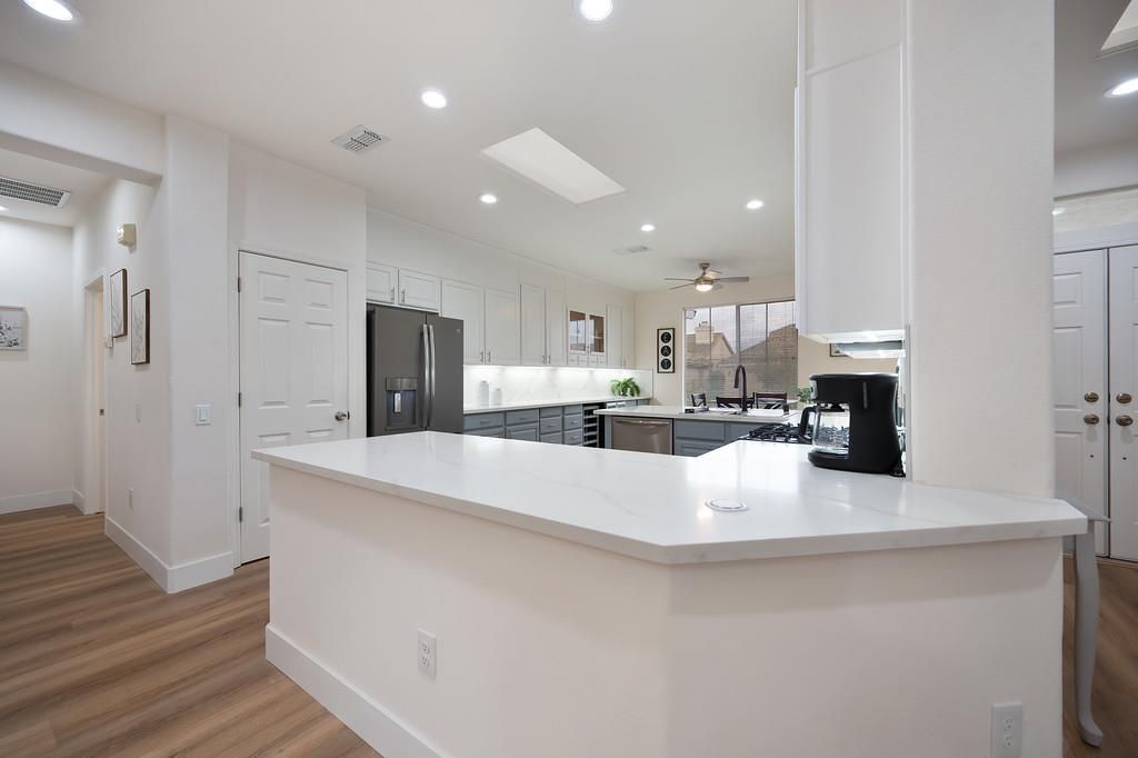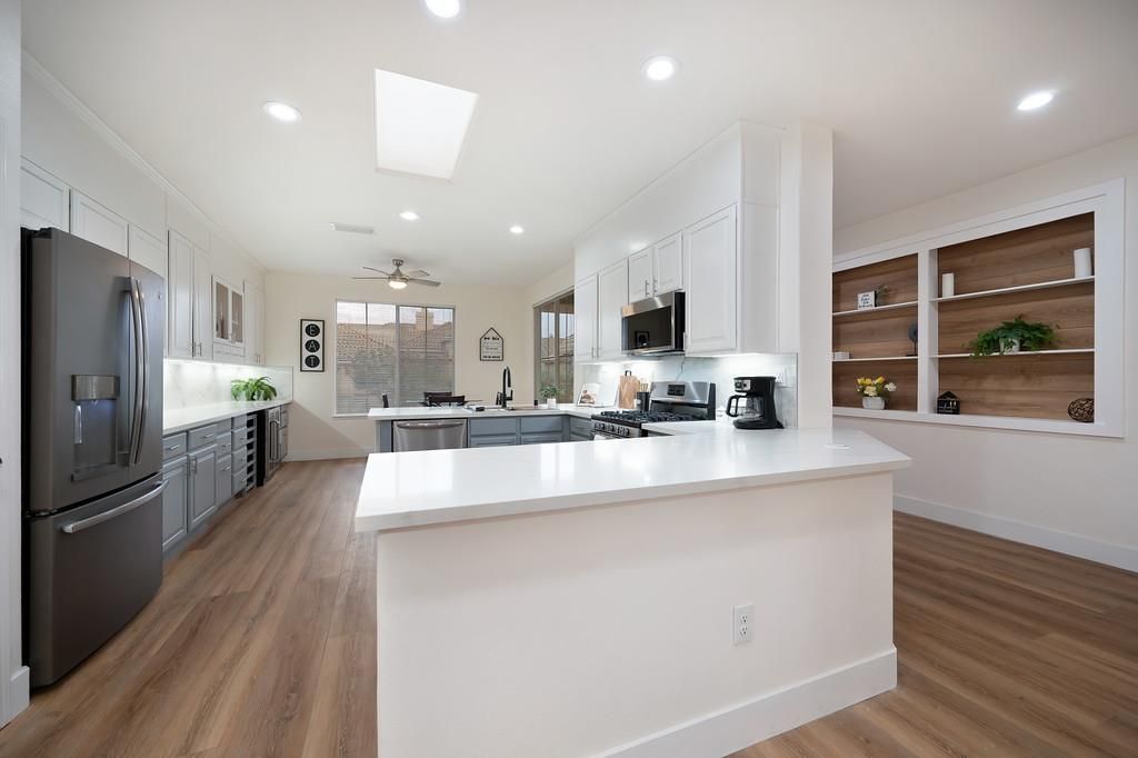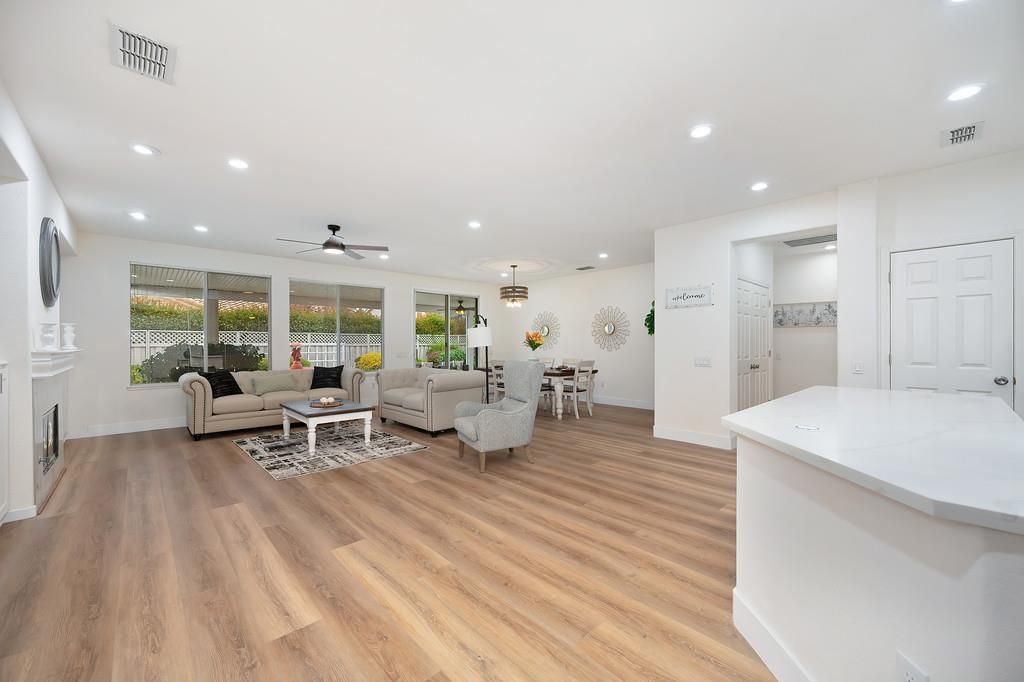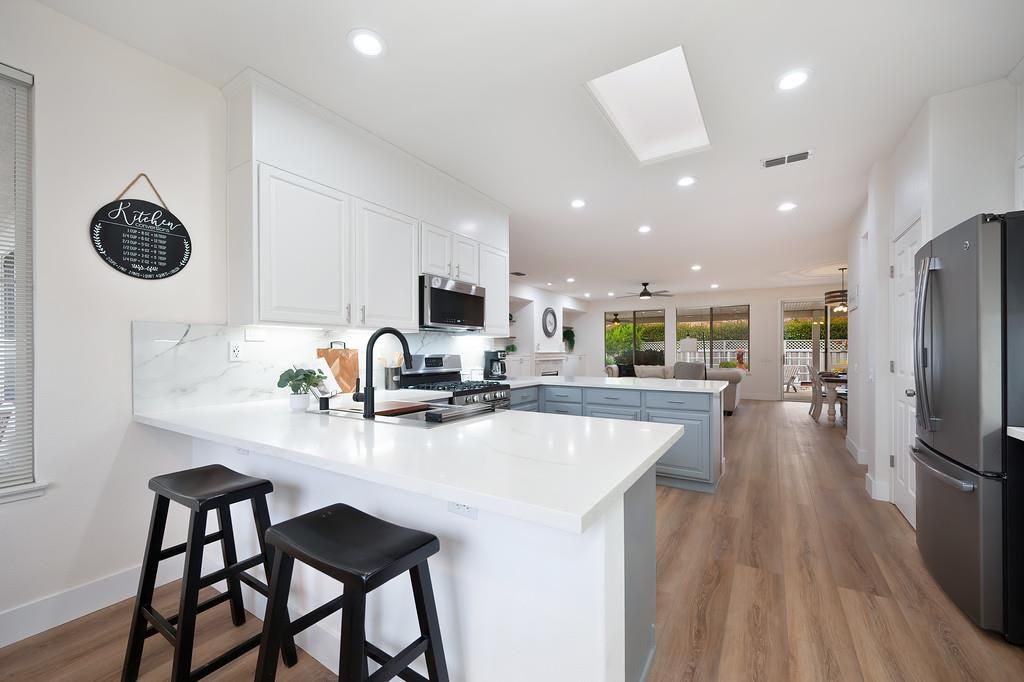 This Summit Model has been meticulously updated to provide 1994 SF of luxurious living space, complete with 3 bedrooms, 2 full bathrooms, and a turn-key, move-in ready design. The open concept layout boasts a flexible office/bedroom, perfect for working from home or accommodating guests. The kitchen has been stunningly updated with quartz countertops, a quartz island, custom cabinets, under-counter lighting, a wine fridge, and new, high-end appliances. The primary bathroom features a double vanity and custom shower, while the updated LVP flooring, LED lighting and custom cabinetry throughout the house add a touch of sophistication. The backyard is perfect for extended living, featuring a covered patio with a water fountain, surrounded by fruit trees. Plus a clean home and pest Inspection! Sun City Roseville offers residents easy access to the city while maintaining a serene suburban atmosphere. The community is designed around a resort-style lifestyle, featuring an array of amenities, including a 27-hole golf course, fitness center, restaurant, clubhouse, pickleball courts, and numerous social clubs, making it an attractive option for active adults seeking a vibrant lifestyle in Northern California. Turn-key move in ready!