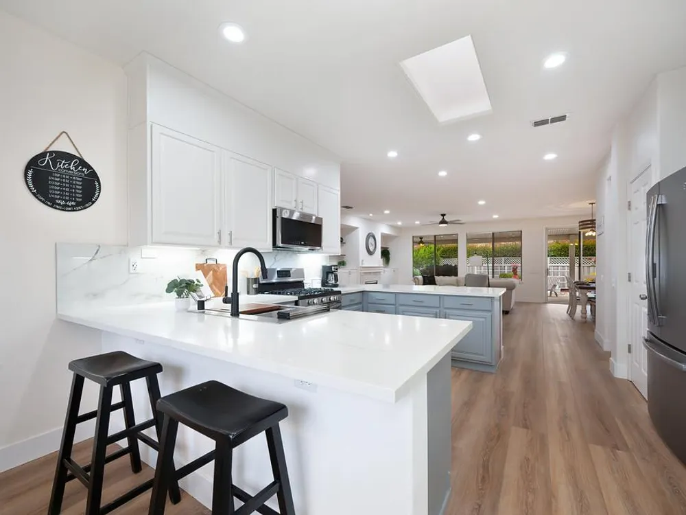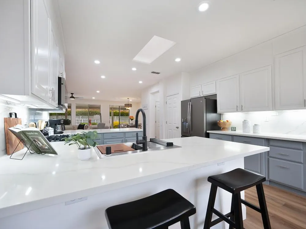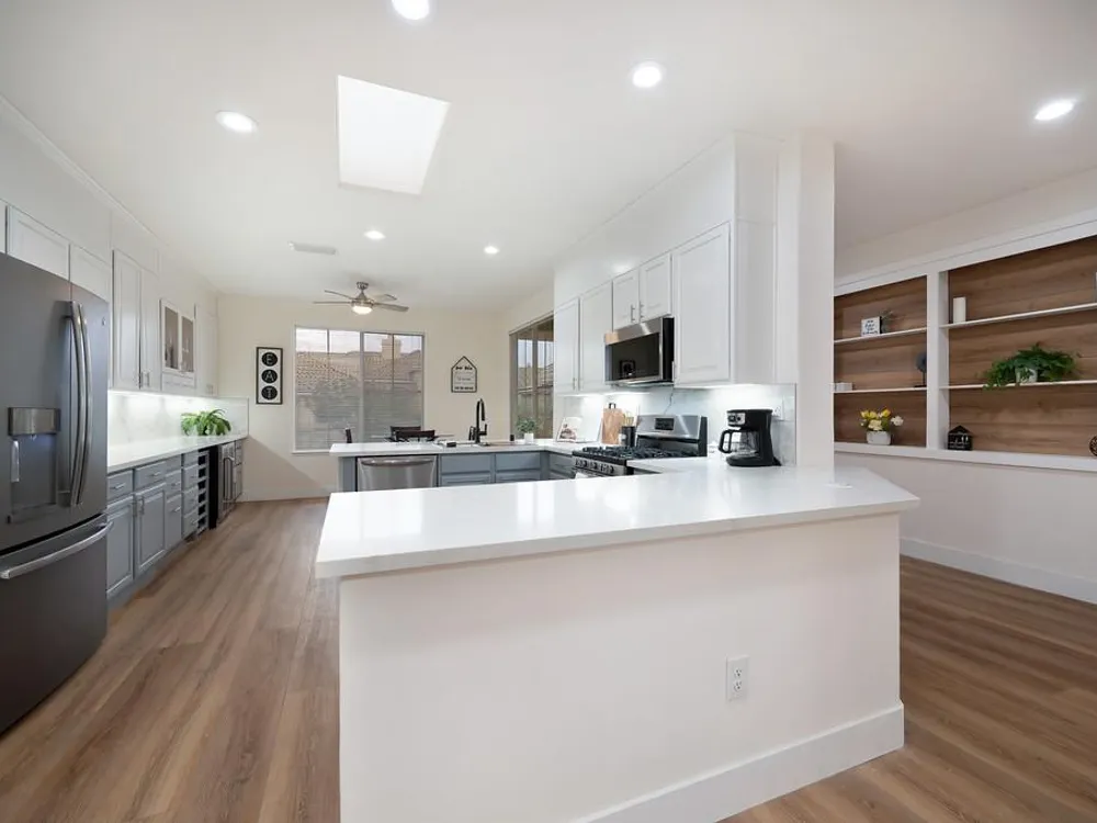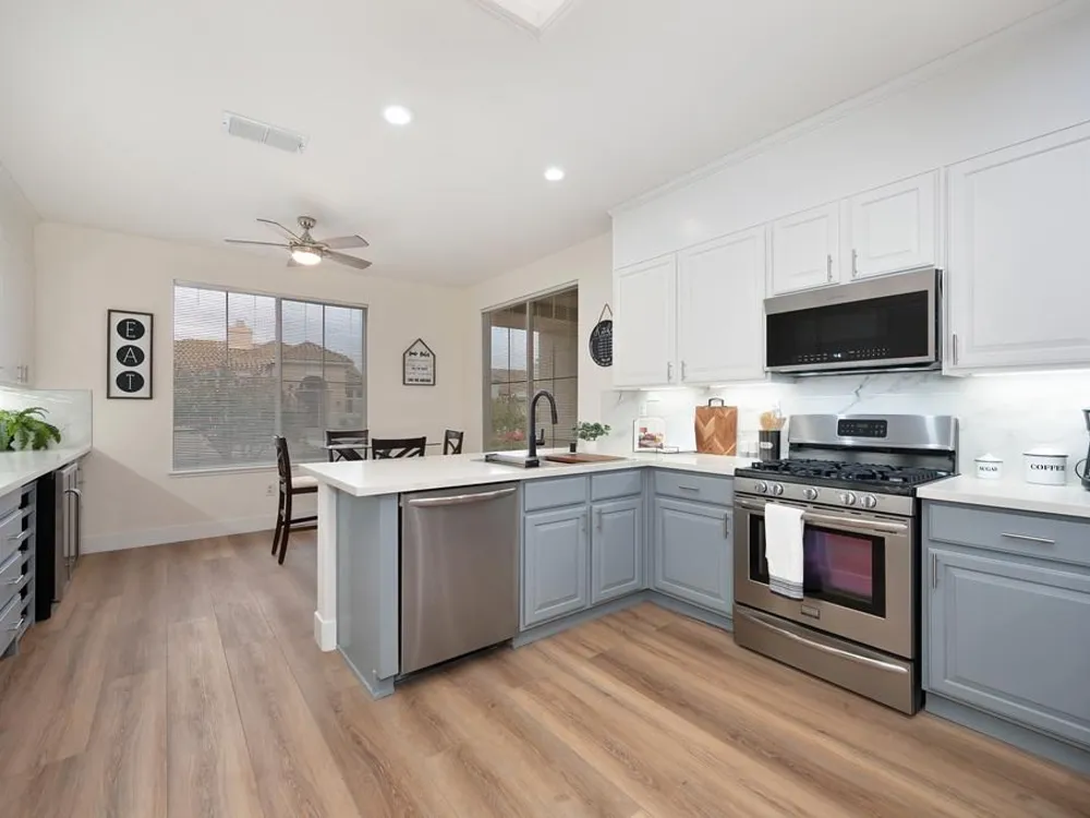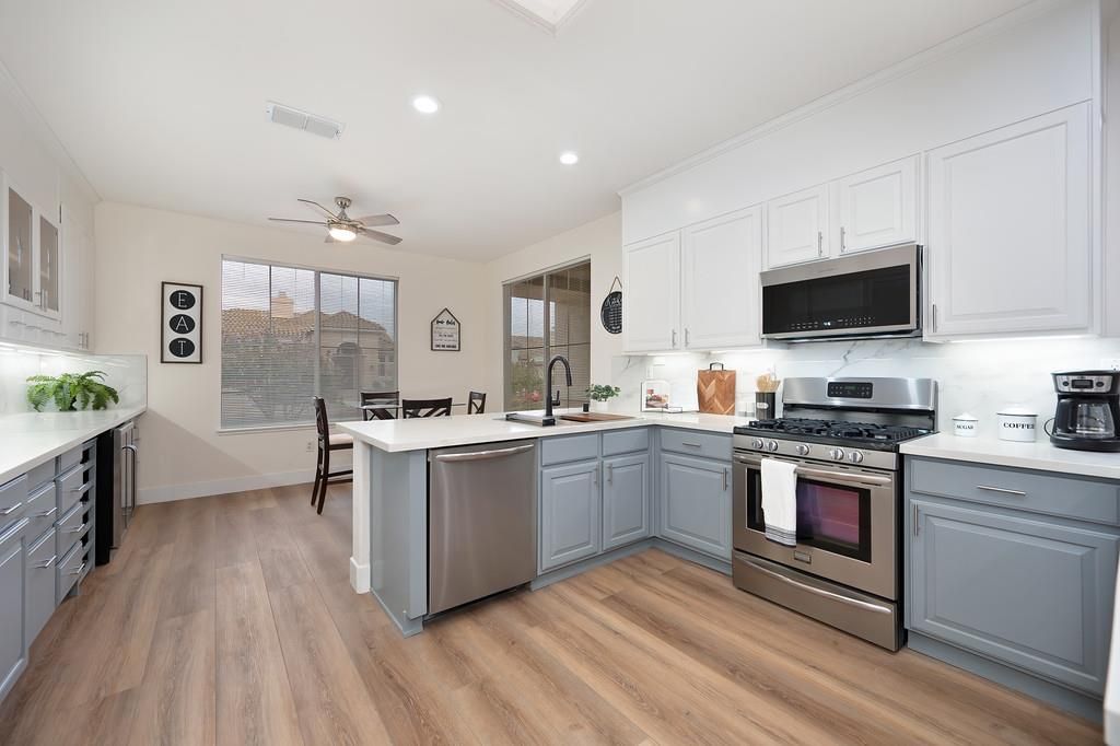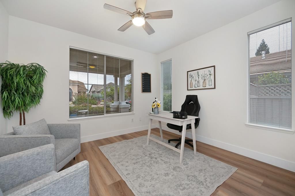 This Summit Model has been meticulously updated to provide 1994 SF of luxurious living space, complete with 3 bedrooms, 2 full bathrooms, and a turn-key, move-in ready design. The open concept layout boasts a flexible office/bedroom, perfect for working from home or accommodating guests. The kitchen has been stunningly updated with quartz countertops, a quartz island, custom cabinets, under-counter lighting, a wine fridge, and new, high-end appliances. The primary bathroom features a double vanity and custom shower, while the updated LVP flooring, LED lighting and custom cabinetry throughout the house add a touch of sophistication. The backyard is perfect for extended living, featuring a covered patio with a water fountain, surrounded by fruit trees. Plus a clean home and pest Inspection! Sun City Roseville offers residents easy access to the city while maintaining a serene suburban atmosphere. The community is designed around a resort-style lifestyle, featuring an array of amenities, including a 27-hole golf course, fitness center, restaurant, clubhouse, pickleball courts, and numerous social clubs, making it an attractive option for active adults seeking a vibrant lifestyle in Northern California. Turn-key move in ready!