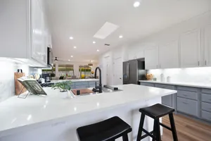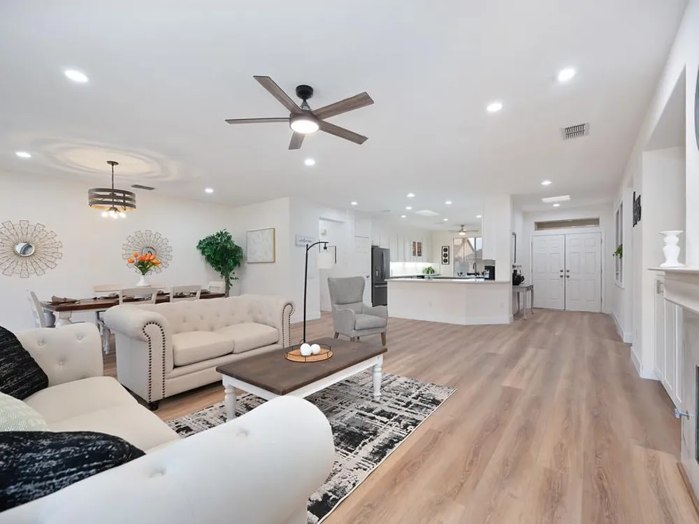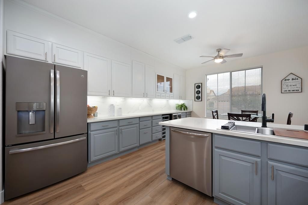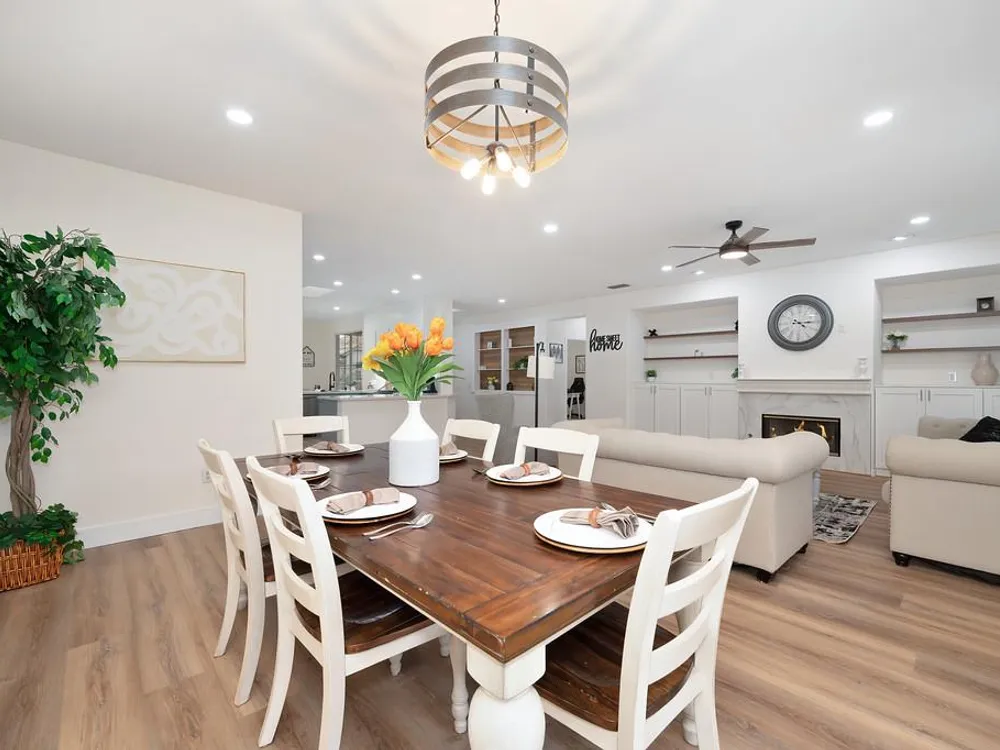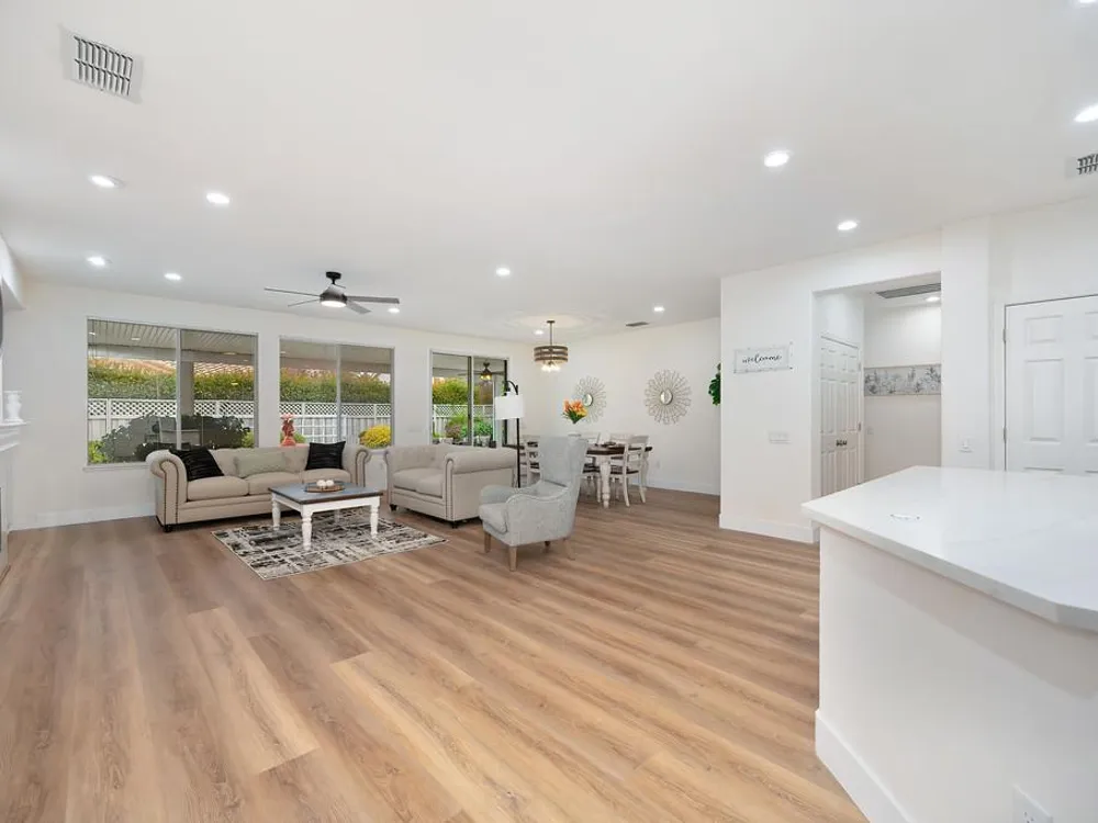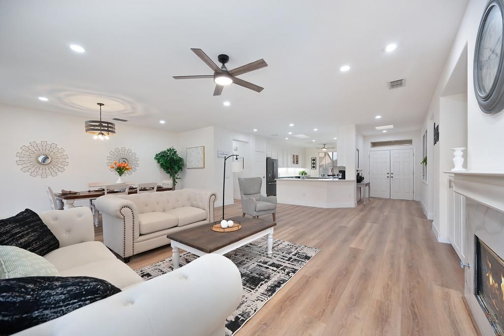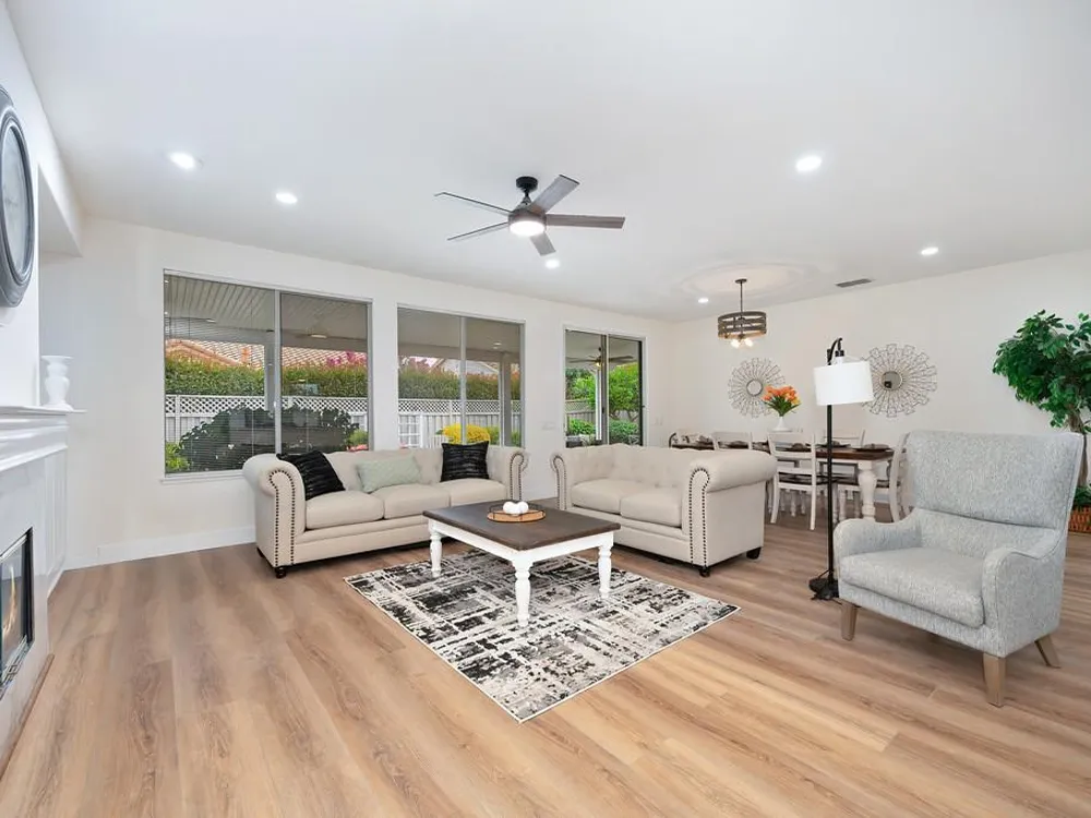 This Summit Model has been meticulously updated to provide 1994 SF of luxurious living space, complete with 3 bedrooms, 2 full bathrooms, and a turn-key, move-in ready design. The open concept layout boasts a flexible office/bedroom, perfect for working from home or accommodating guests. The kitchen has been stunningly updated with quartz countertops, a quartz island, custom cabinets, under-counter lighting, a wine fridge, and new, high-end appliances. The primary bathroom features a double vanity and custom shower, while the updated LVP flooring, LED lighting and custom cabinetry throughout the house add a touch of sophistication. The backyard is perfect for extended living, featuring a covered patio with a water fountain, surrounded by fruit trees. Plus a clean home and pest Inspection! Sun City Roseville offers residents easy access to the city while maintaining a serene suburban atmosphere. The community is designed around a resort-style lifestyle, featuring an array of amenities, including a 27-hole golf course, fitness center, restaurant, clubhouse, pickleball courts, and numerous social clubs, making it an attractive option for active adults seeking a vibrant lifestyle in Northern California. Turn-key move in ready!