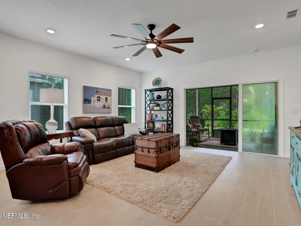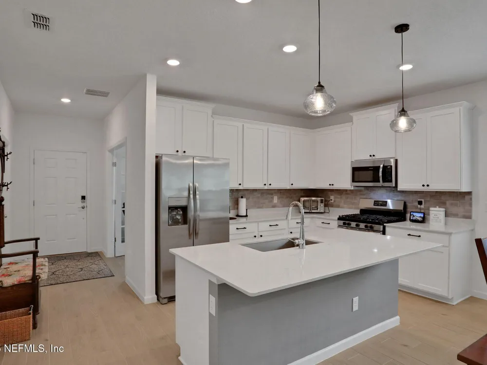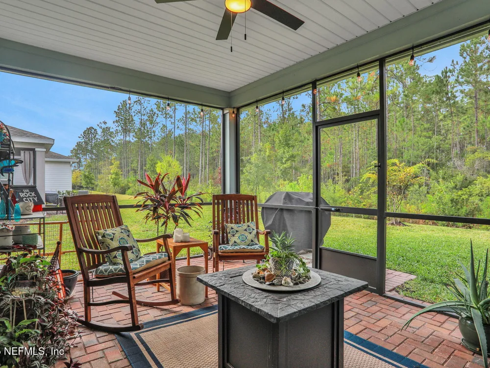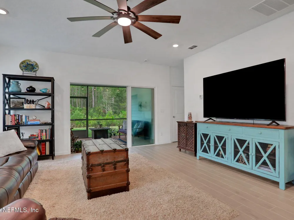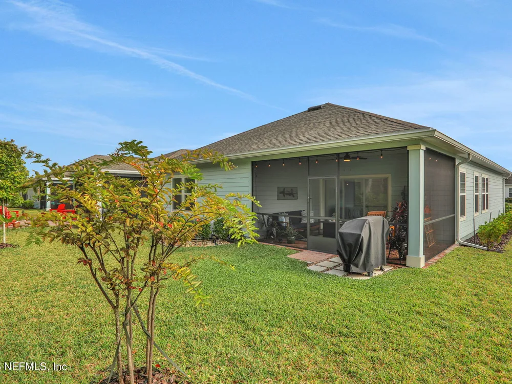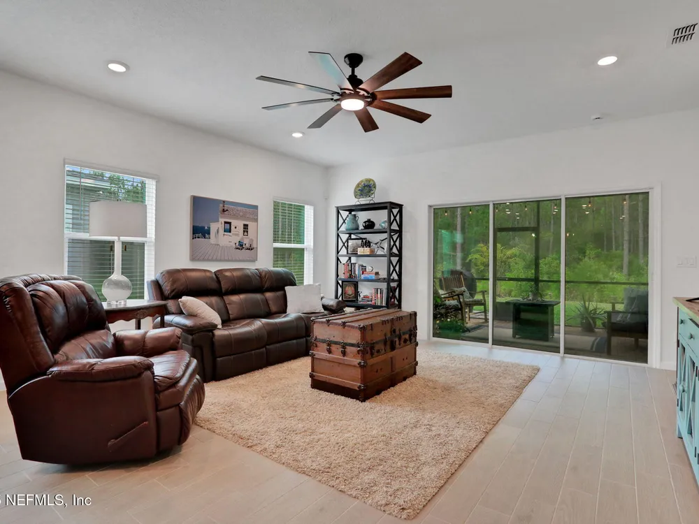 Lakeview at Tributary - 55+ Gated Community | Low-Maintenance Living Welcome to effortless living in this beautifully maintained single-story home featuring a bright, open floor plan filled with natural light. The chef's kitchen stands out with a gas cooktop, tile backsplash, stainless steel appliances, a large island, and crisp white shaker-style cabinetry. The spacious owner's suite is privately tucked away at the back of the home and includes a walk-in closet and a luxurious bath with a dual showerhead system, spa-style rain shower, and private water closet. At the front, you'll find two additional bedrooms, a French door-enclosed den, and a two-car garage. Low-maintenance tile flooring runs through the main living areas, while the bedrooms feature plush wall-to-wall carpeting for comfort. Step outside to the covered, screened lanai overlooking a peaceful wetland view—no rear neighbors, just nature and privacy. Additional highlights include a water softener, gutters, tankless water heater, smart home features (Ring doorbell and thermostat), and a full sprinkler system. Residents of Lakeview at Tributary enjoy exceptional amenities including multiple clubhouses, fitness centers, a heated pool, pickleball and bocce ball courts, and a friendly, social neighborhood with frequent community events. Enjoy peaceful living in Nassau County's growing area, close to new shopping, dining, and conveniences, with easy access to major highways and just a short, stress-free drive to Jacksonville International Airport perfect for travel or visits from family and friends.