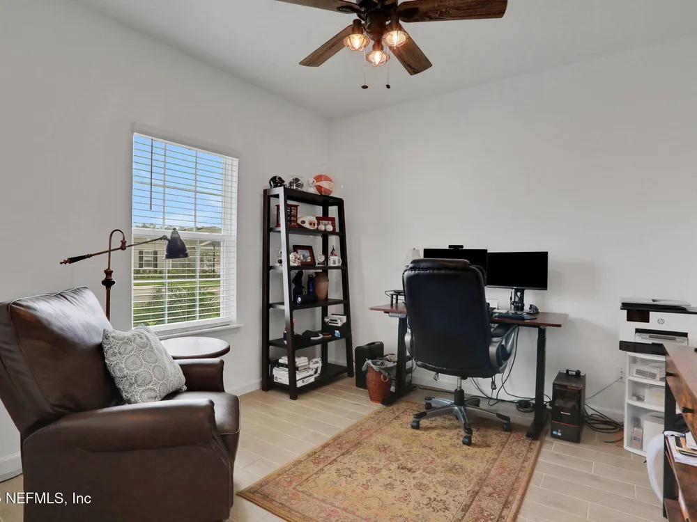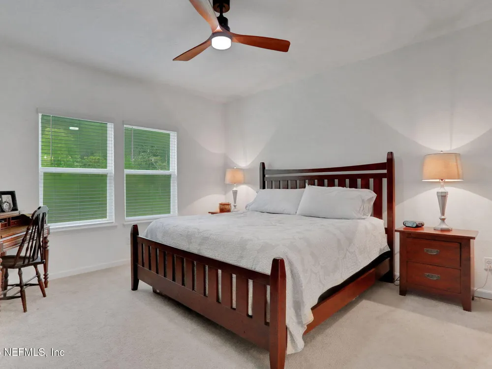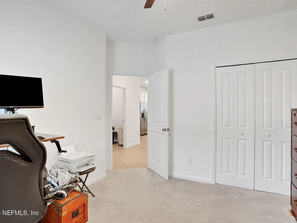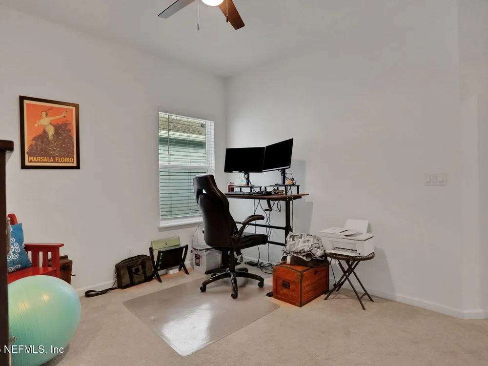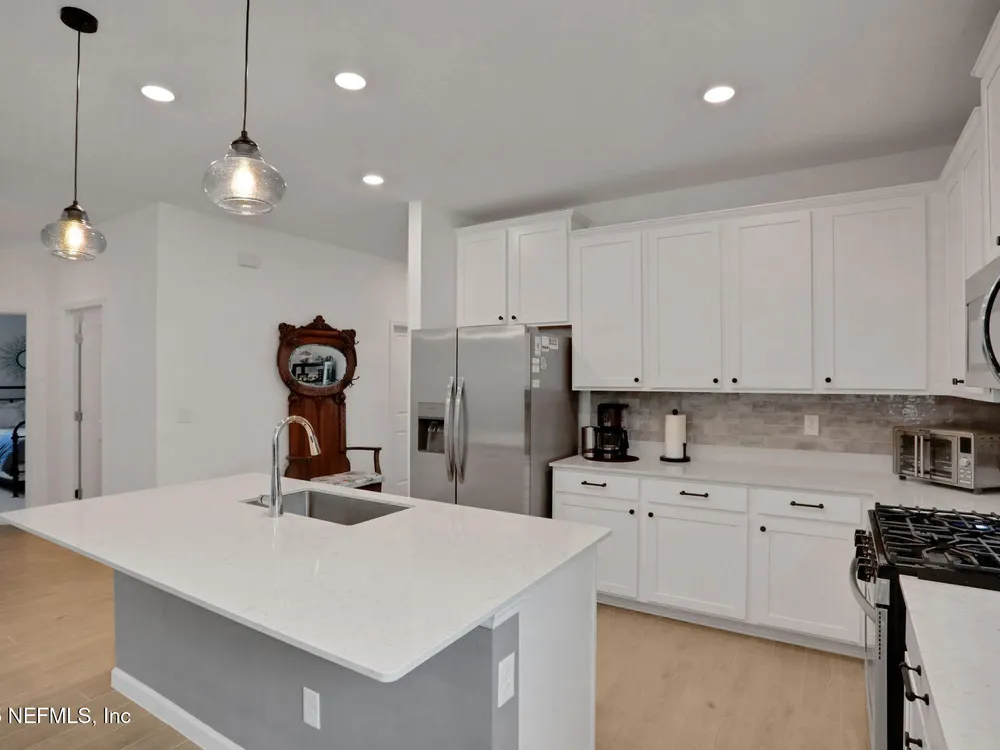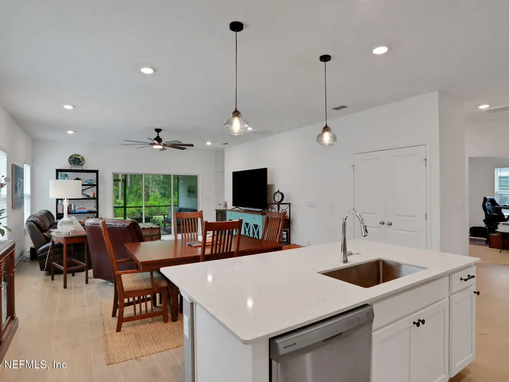 Lakeview at Tributary - 55+ Gated Community | Low-Maintenance Living Welcome to effortless living in this beautifully maintained single-story home featuring a bright, open floor plan filled with natural light. The chef's kitchen stands out with a gas cooktop, tile backsplash, stainless steel appliances, a large island, and crisp white shaker-style cabinetry. The spacious owner's suite is privately tucked away at the back of the home and includes a walk-in closet and a luxurious bath with a dual showerhead system, spa-style rain shower, and private water closet. At the front, you'll find two additional bedrooms, a French door-enclosed den, and a two-car garage. Low-maintenance tile flooring runs through the main living areas, while the bedrooms feature plush wall-to-wall carpeting for comfort. Step outside to the covered, screened lanai overlooking a peaceful wetland view—no rear neighbors, just nature and privacy. Additional highlights include a water softener, gutters, tankless water heater, smart home features (Ring doorbell and thermostat), and a full sprinkler system. Residents of Lakeview at Tributary enjoy exceptional amenities including multiple clubhouses, fitness centers, a heated pool, pickleball and bocce ball courts, and a friendly, social neighborhood with frequent community events. Enjoy peaceful living in Nassau County's growing area, close to new shopping, dining, and conveniences, with easy access to major highways and just a short, stress-free drive to Jacksonville International Airport perfect for travel or visits from family and friends.