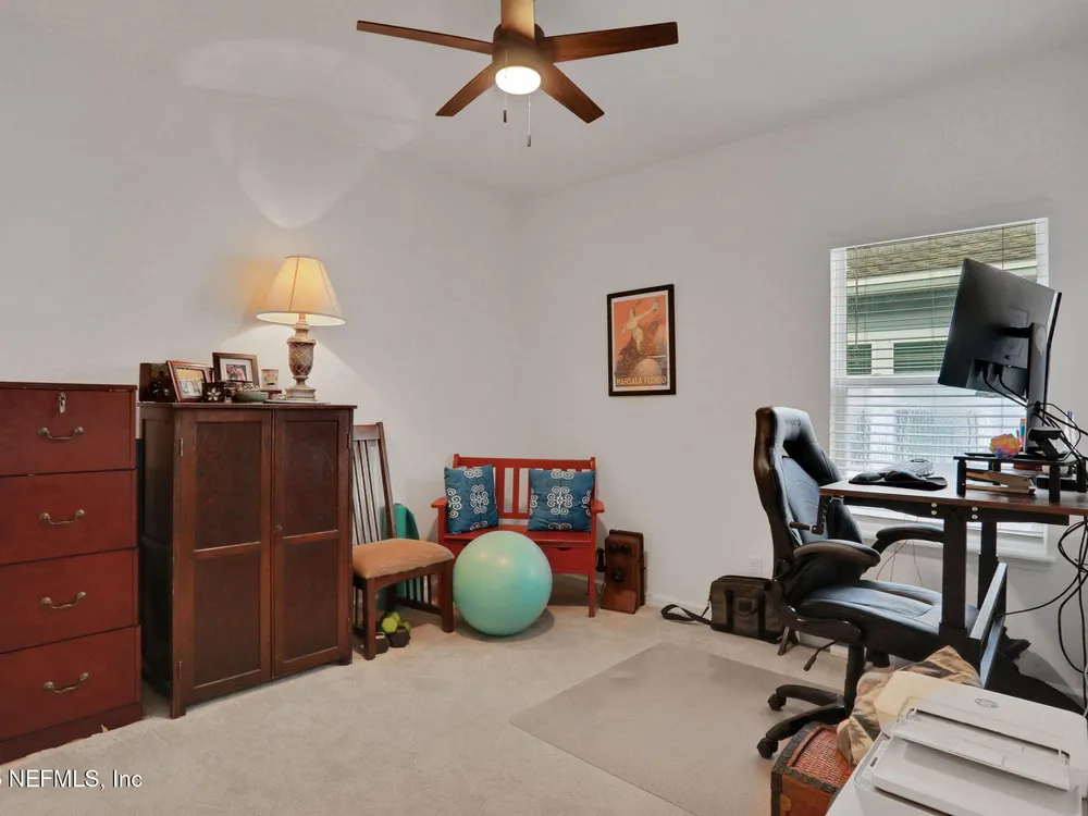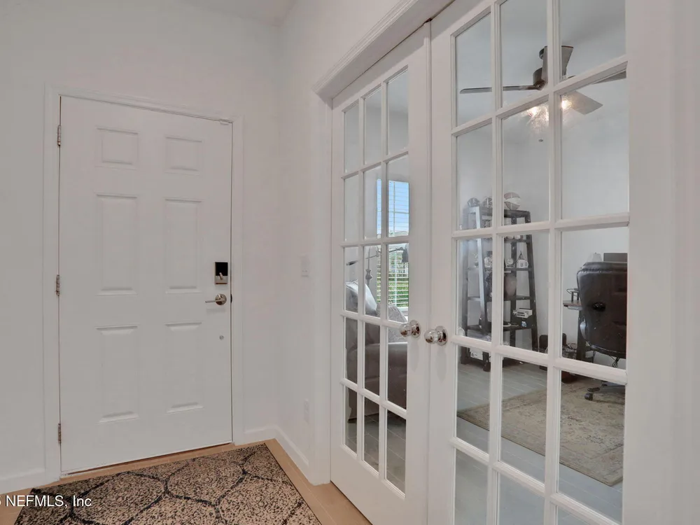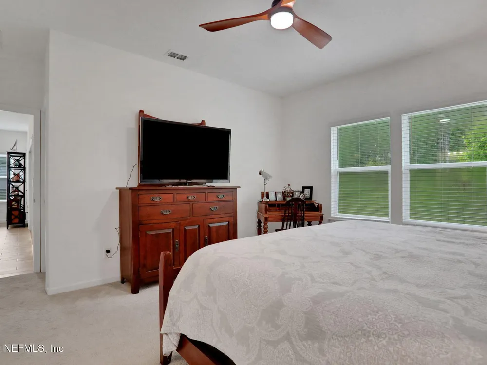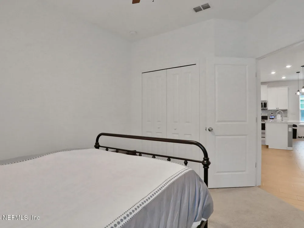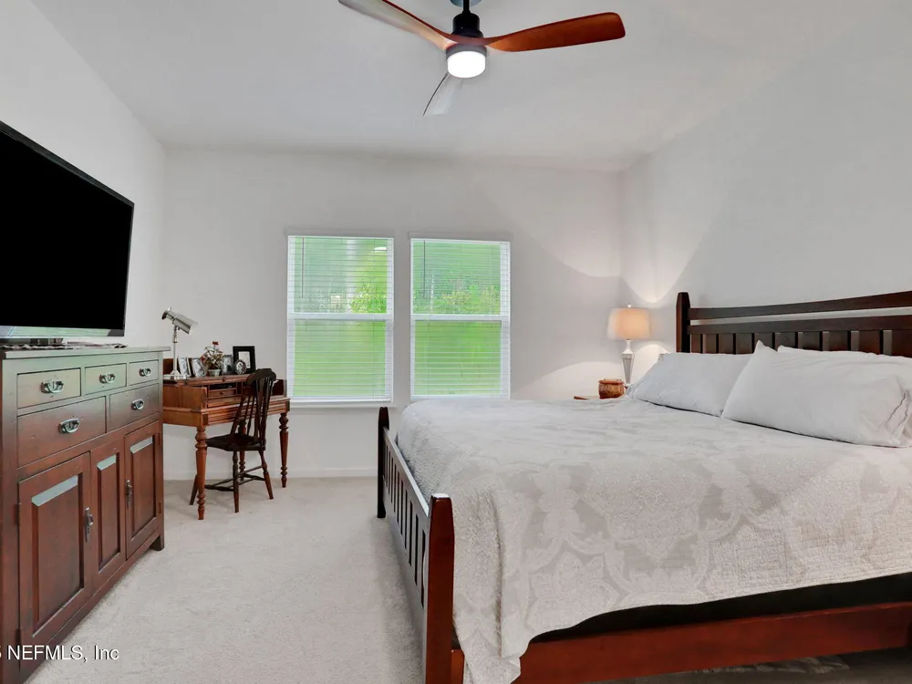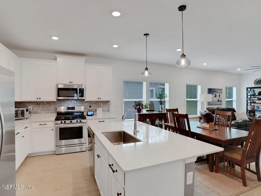 Lakeview at Tributary - 55+ Gated Community | Low-Maintenance Living Welcome to effortless living in this beautifully maintained single-story home featuring a bright, open floor plan filled with natural light. The chef's kitchen stands out with a gas cooktop, tile backsplash, stainless steel appliances, a large island, and crisp white shaker-style cabinetry. The spacious owner's suite is privately tucked away at the back of the home and includes a walk-in closet and a luxurious bath with a dual showerhead system, spa-style rain shower, and private water closet. At the front, you'll find two additional bedrooms, a French door-enclosed den, and a two-car garage. Low-maintenance tile flooring runs through the main living areas, while the bedrooms feature plush wall-to-wall carpeting for comfort. Step outside to the covered, screened lanai overlooking a peaceful wetland view—no rear neighbors, just nature and privacy. Additional highlights include a water softener, gutters, tankless water heater, smart home features (Ring doorbell and thermostat), and a full sprinkler system. Residents of Lakeview at Tributary enjoy exceptional amenities including multiple clubhouses, fitness centers, a heated pool, pickleball and bocce ball courts, and a friendly, social neighborhood with frequent community events. Enjoy peaceful living in Nassau County's growing area, close to new shopping, dining, and conveniences, with easy access to major highways and just a short, stress-free drive to Jacksonville International Airport perfect for travel or visits from family and friends.