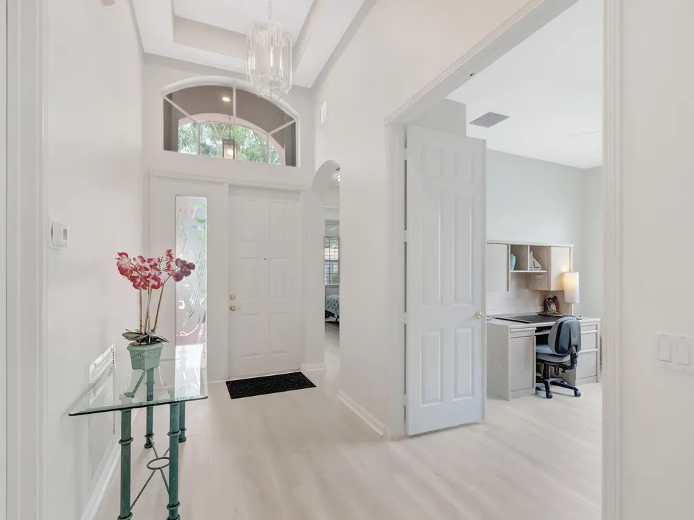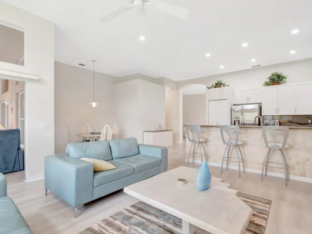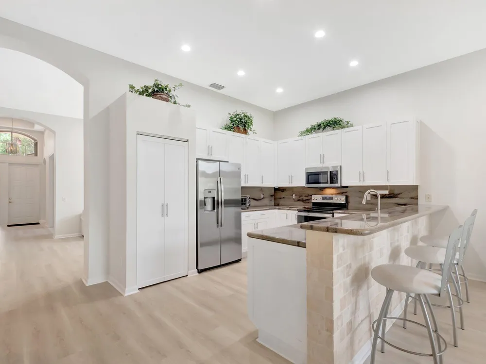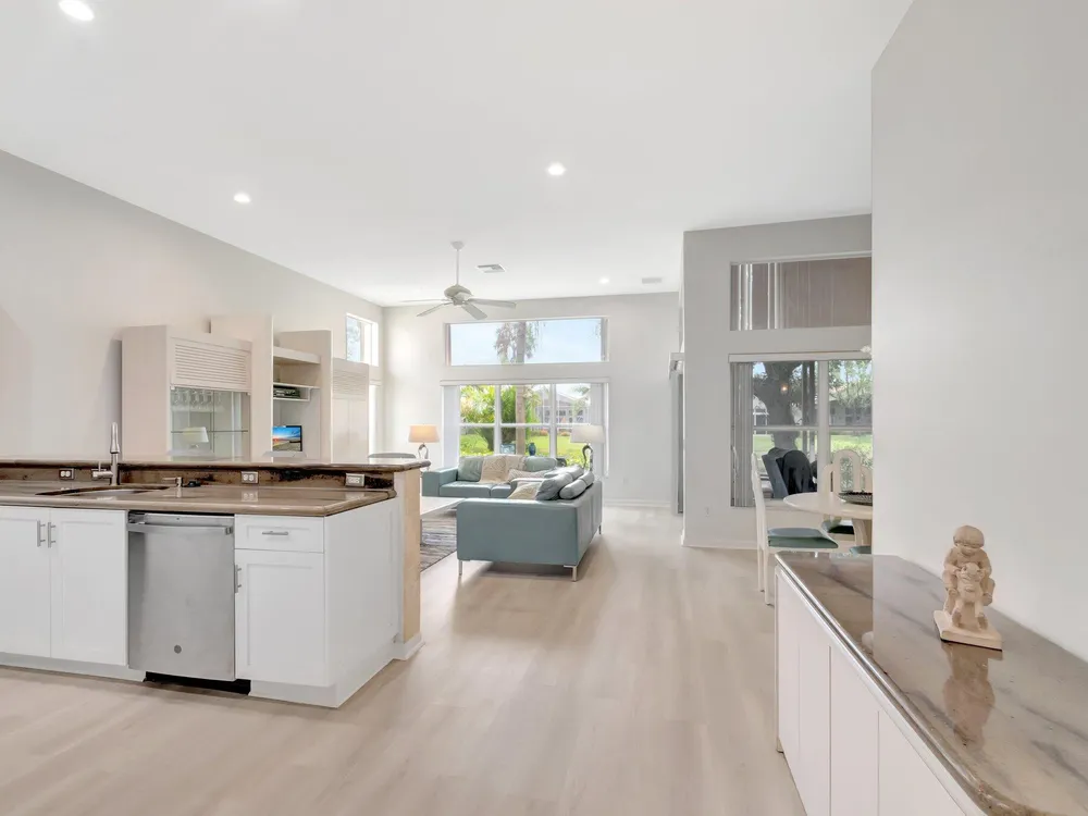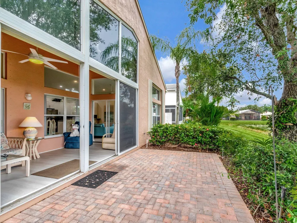 Bring your toothbrush to this recently renovated, 3 bedroom/ 2.5 bath waterfront home, loaded with upgrades. This home features a NEW ROOF and gutters! New luxury vinyl flooring, New paint, New updated cabinetry in kitchen and baths. This home also features a fully enclosed 200 sq ft air conditioned, Florida room, Top of the line granite counters & backsplash in the kitchen,. Stainless steel appliances, an extended paver patio, Hurricane shutters, and so much more. Valencia Shores is a premier active community with 2 club houses, 3 pools, tennis, pickle ball, bocce, indoor racquet ball, a fully equipped athletic center, with sauna, whirlpool, resistance pool, and cafe. FURNITURE INCLUDED!