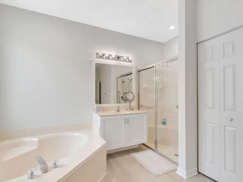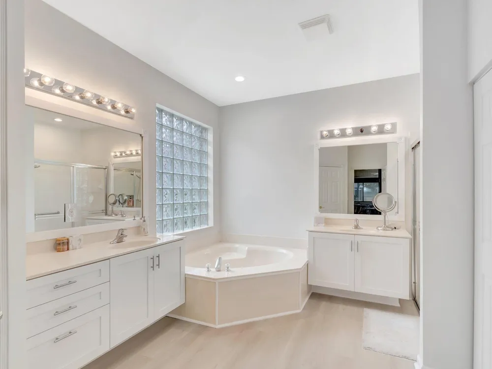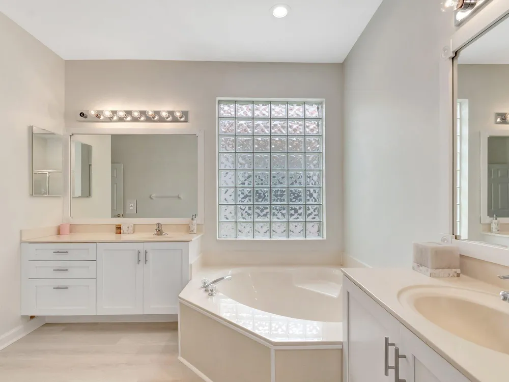 - Entry Level Living Area, Entrance Foyer, Pantry, Garden Tub/Roman Tub, Split Bedrooms, High Ceilings, Walk-In Closet(s), Dual Sinks, Primary Downstairs, Washer/Dryer Hookup