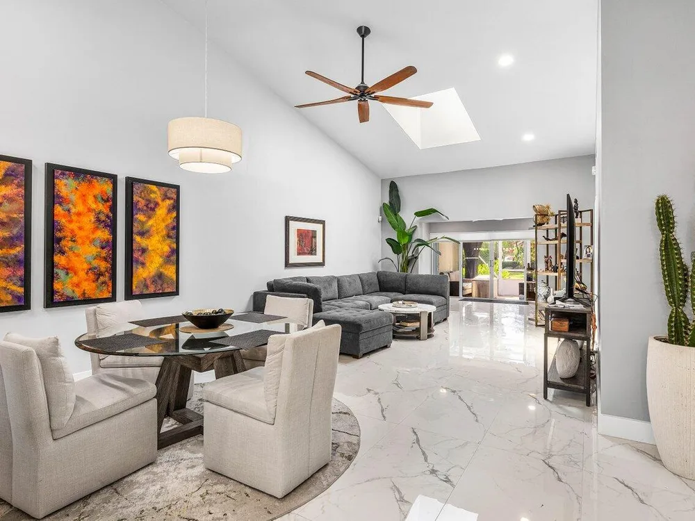 - Skylights, Split Bedrooms, High Ceilings, Home Office, Family Room, Living/Dining Room, Dual Sinks, Separate Shower, Bathtub