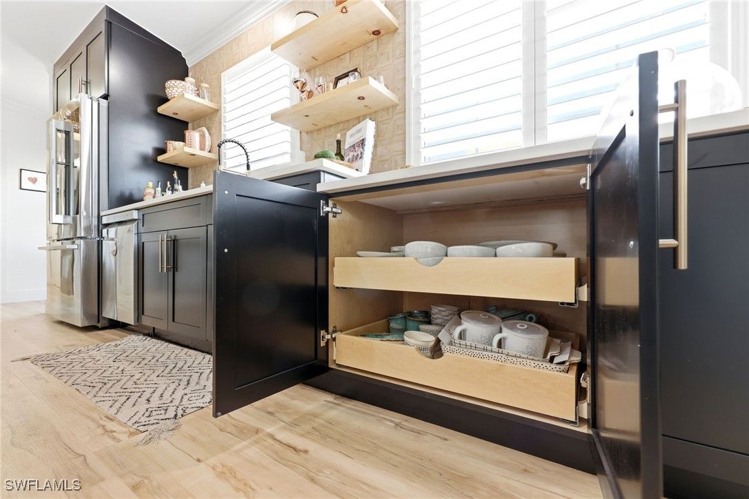 - Attic Access, Breakfast Bar, Built-in Features, Bedroom on Main Level, Closet Cabinetry, Cathedral Ceiling(s), Dual Sinks, Entrance Foyer, Eat-in Kitchen, Family/Dining Room, Kitchen Island, Living/Dining Room, Custom Mirrors, Pull Down Attic Stairs, Separate Shower, Cable TV, Walk-In Closet(s), Window Treatments, Central Vacuum, High Speed Internet