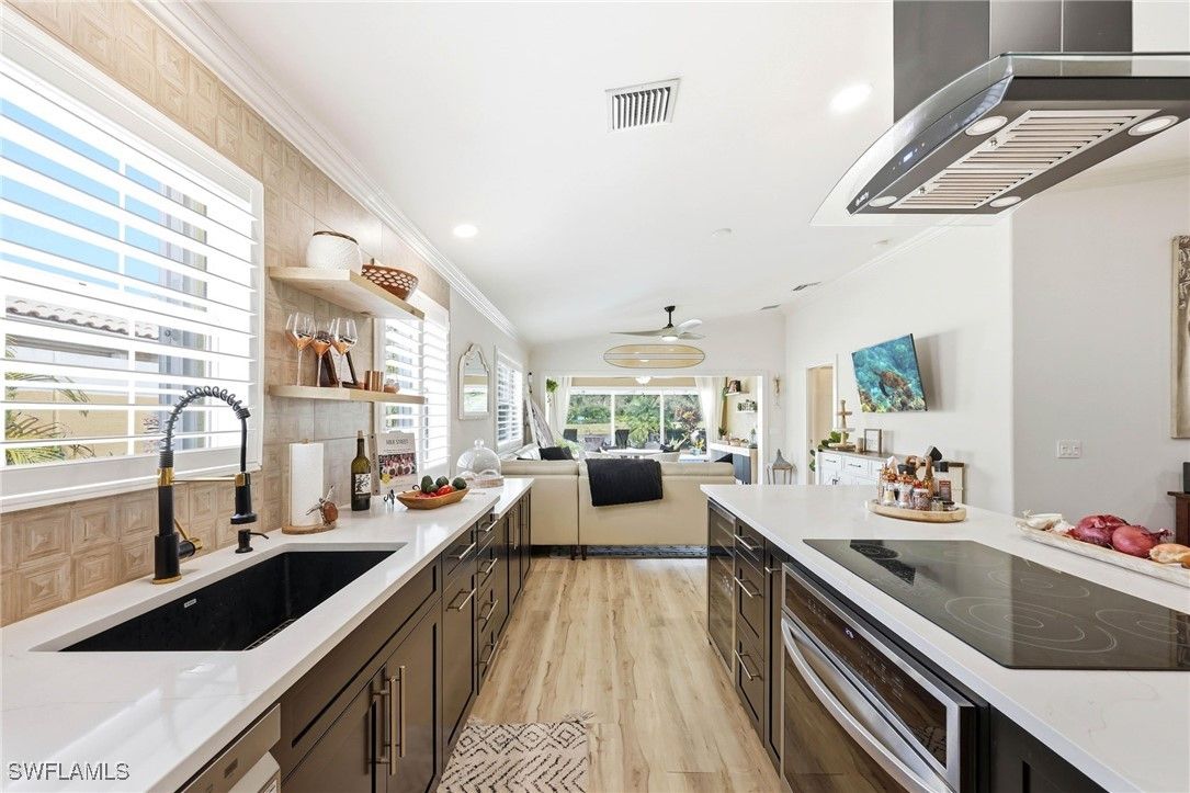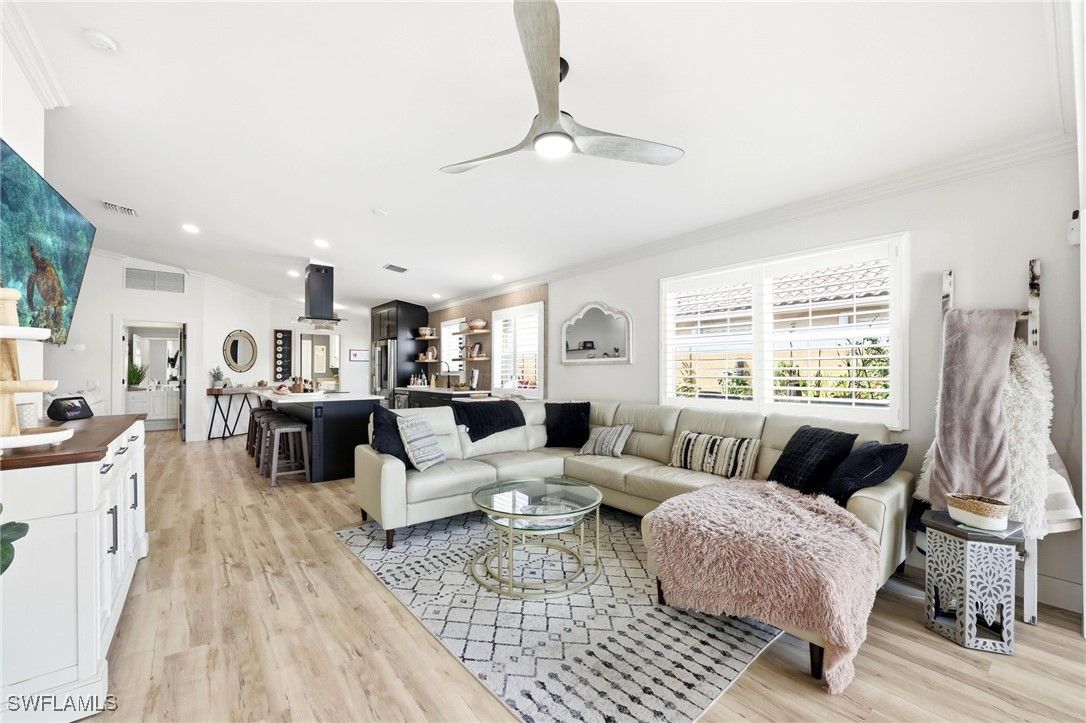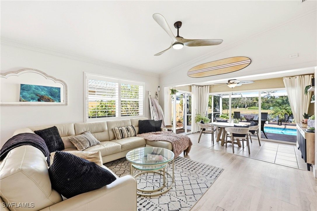 CUSTOM " BUILT SOLID " CAPRI WITH A PERFECT VIEW and location ! THIS TROPICAL OASIS HAS IT ALL . Remodeled extended open floorplan; Boast's a custom open kitchen and wall unit , ROOF 5 YEARS OLD, New AC -6 months old. Entire home has floating Vinyl flooring , upgraded appliances in kitchen, Extended driveway pavers and around the entire home plus an extended Sun Deck , Pool has a Picture frame view, All windows have accordion shutters , electric roll downs shutters on back of home, surround speakers, new front entry door. Plus plenty of other extra's ( Too much to list ) DONT'T FORGET THE STANDARD FEATURES THAT CAME WITH A REAL DIVOSTA HOME; Poured concrete walls, Smooth coat walls inside through-out the home, finished closets systems, 6 ft privacy wall Between your neighbor, central vac, insulated garage door. Verona Walk offers 24 hr. guarded gated entry, lighted tennis, bocce ball, basketball and pickle ball courts, resort-size community Lagoon pool, lap pool, tot lot, over 20 miles trails, 24/7 gym, post office, café/restaurant, ice cream Shoppe, hair salon, car wash, gas station, library, computer center, ballroom, card rooms, and a full-time activities director. Convenient to both Naples and Marco Island beaches, shops and fine dining, regional hospital and Edison college nearby. The low HOA dues also include lawn care & irrigation, basic cable TV