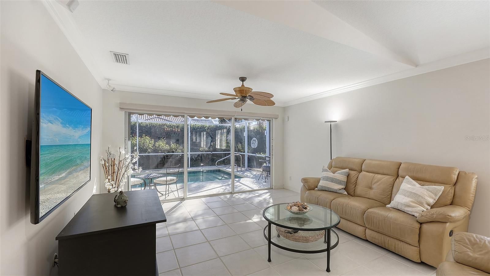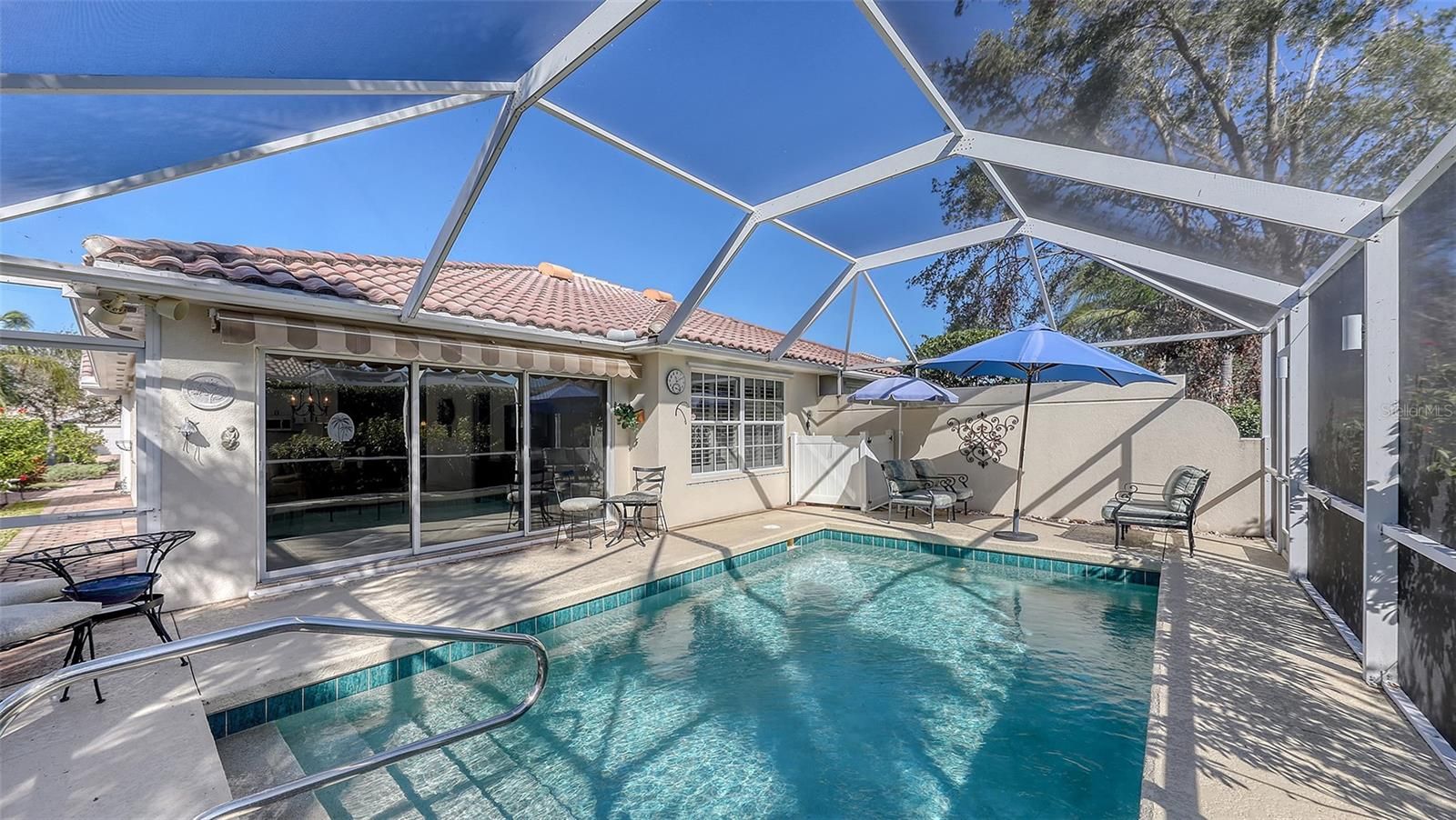 PRICED TO SELL AND AVAILABLE AS A LEASE OR LEASE PURCHASE! BEAUTIFULLY UPDATED, WITH A PRIVATE POOL, AND FULLY FURNISHED!!! Envision your life in a paradise where your own private pool awaits you every day. This Capri III villa in Villagewalk is fully furnished, including brand new primary bedroom furniture, all set for you to start your Florida adventure. Right from the entrance, the great room stands out with its crown molding and a unique hardwood floor, while the rest of the home offers the practicality and cleanliness of tile throughout—no carpet to worry about. But, it's the allure of your private pool that truly defines this villa, complete with a rescreened lanai, retractable awning, and custom lighting for those perfect evenings. The kitchen is where you'll refine your culinary skills, featuring Corian countertops, a subway tile backsplash, and modern touches like pull-out drawers, glass-front cabinets, and a wine fridge. Your primary suite is a haven of tranquility with crown molding, plantation shutters, and a spacious custom walk-in closet. The perfectly updated bathroom features granite counters and updated shower doors to elevate your daily routine. Your guests will enjoy their own updated and well-appointed bedroom with their very own custom walk-in-closet, as well as their own tastefully updated bathroom. For storm protection, the home includes clear hurricane shutters for the main living area as well as the glass front door. Villagewalk isn't just about your home; it's about embracing a lifestyle where every amenity is at your fingertips. Dive into the community with • A large clubhouse, complete with a fitness center, meeting rooms, and event space for social gatherings. • Two geothermal-heated pools - one for laps and a resort-style lagoon for relaxation. • Six Har-Tru tennis courts, pickleball, and bocce ball courts for the sports enthusiasts. • An on-site restaurant and bar for convenient dining. • A vibrant Town Center that includes a hair salon, boutique shopping, and even a gas station for everyday needs. • A brand-new Tiki Bar for poolside enjoyment. • Miles of walking and biking trails to explore the natural beauty of the area. • A staffed gate, providing 24-hour security for peace of mind. • An HOA management office on-site to handle community affairs effortlessly. • The community benefits from underground power lines, significantly reducing power outage risks, with the Sarasota Fire Department nearby for swift emergency response. Villagewalk is minutes from Publix, Costco, the Legacy Bike Trail, and the world-famous white sands of Siesta Key Beach, with downtown Sarasota's cultural attractions just 20 minutes away. Despite its coastal allure, this villa provides a sanctuary of safety and resilience, making it an ideal retreat for those seeking both peace of mind and the joys of Florida living. This villa offers you not just a home but a gateway to a life filled with convenience, activity, and relaxation. Contact us to see how this can be your new beginning in Sarasota, where every day feels like a vacation.