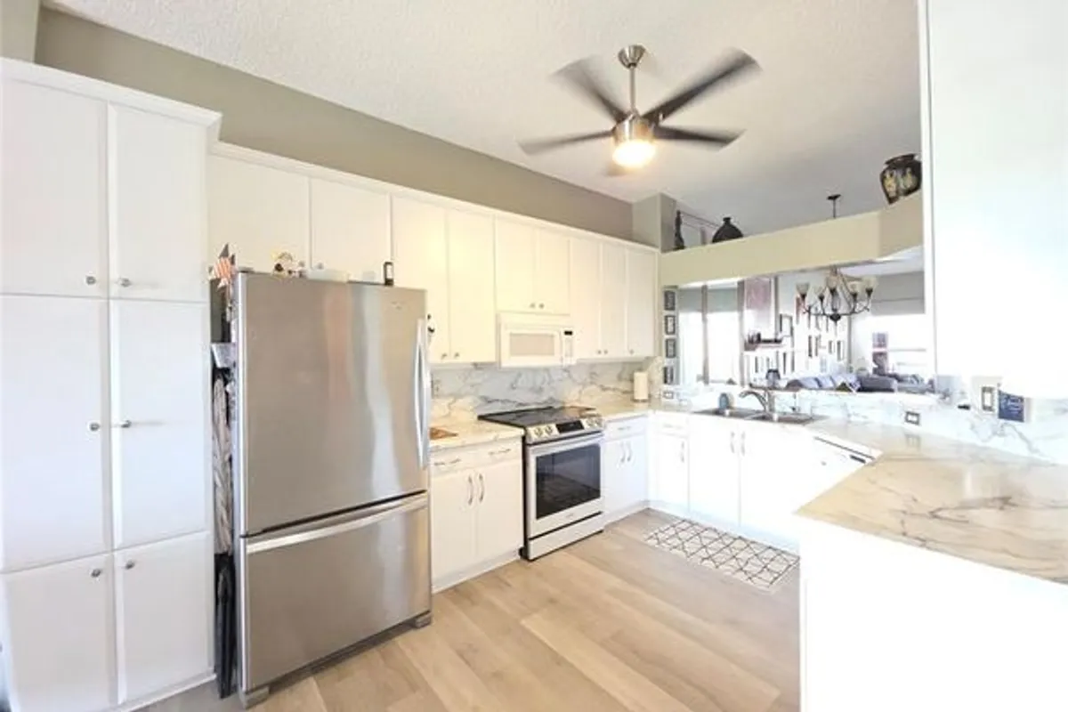 Absolutely gorgeous 2 bed, 2 bath plus large den! Penthouse w/10' high ceilings make it feel like a home. Expansive water views! Open floor plan & split bedroom design. High end luxury vinyl flooring throughout living area. Beautifully remodeled kitchen w/ eat in area, pantry, desk area. Separate laundry w/full size washer/dryer. Rarely available covered parking space. Granville is a double guard gated exclusive area in fabulous Kings Point! Amazing lifestyle w/ freestanding theatre, live shows, weekly movies, indoor & outdoor pools, state of the art gym. 50+ clubs! Walk across street to Granville's own lakefront clubhouse offering olympic size pool, sauna, showers, card room, tennis court & serene park area. Seller is painting...if you hurry you could pick your paint color! Bring offers!