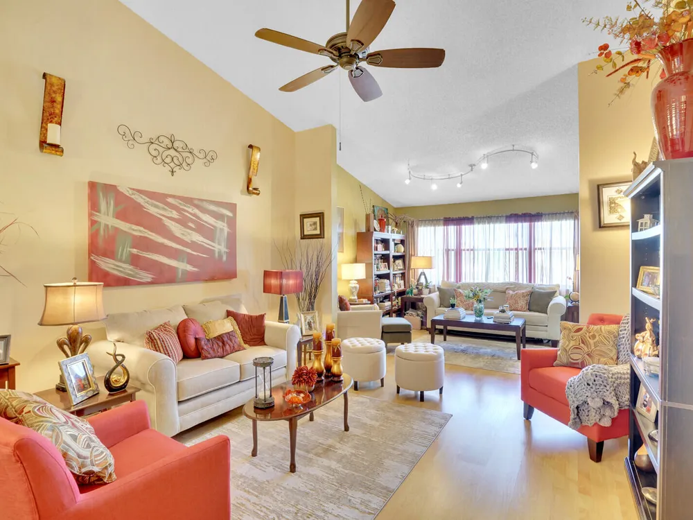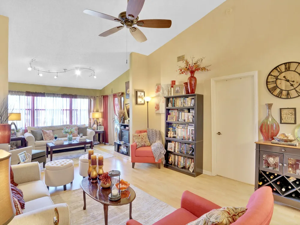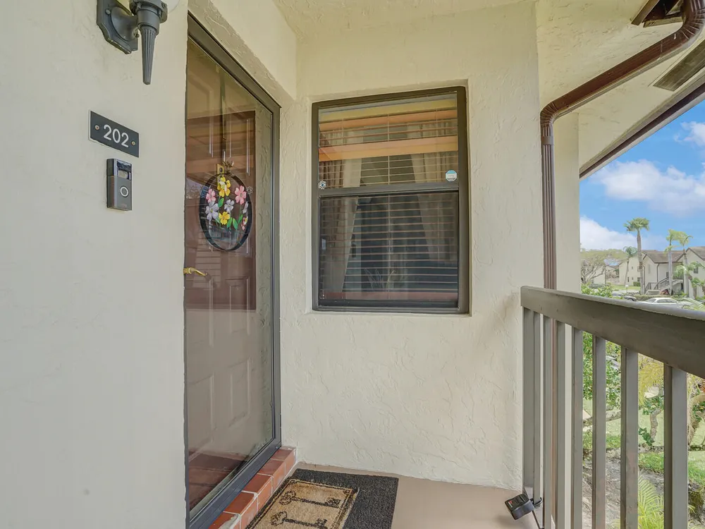 Nestled in the serene 55+ community of Lucerne Pointe this condo offers a perfect blend of modern amenities and natural beauty, making it an ideal retreat for those seeking comfort and elegance. This unit boasts two spacious bedrooms and two well-appointed bathrooms, providing ample space for relaxation and privacy. Recent upgrades add to the allure of this property, with a high-efficiency AC system installed in 2022 . The living areas are highlighted by high ceilings, enhancing the sense of space and openness, while vinyl flooring throughout adds a touch of sophistication and ease of maintenance. A new front door welcomes residents and guests alike, offering